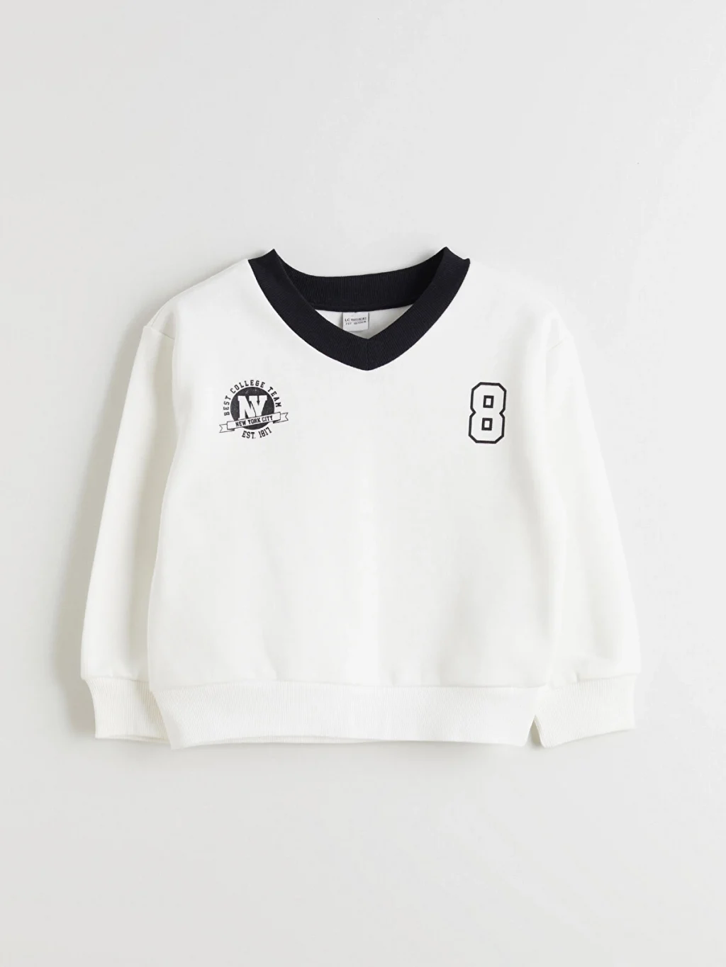 Kalın 3 iplik şardonlu kumaştan üretilen V yakalı kız çocuk sweatshirt, uzun kolludur. Göğüs kısmında baskı ve aplike detayları bulunur.