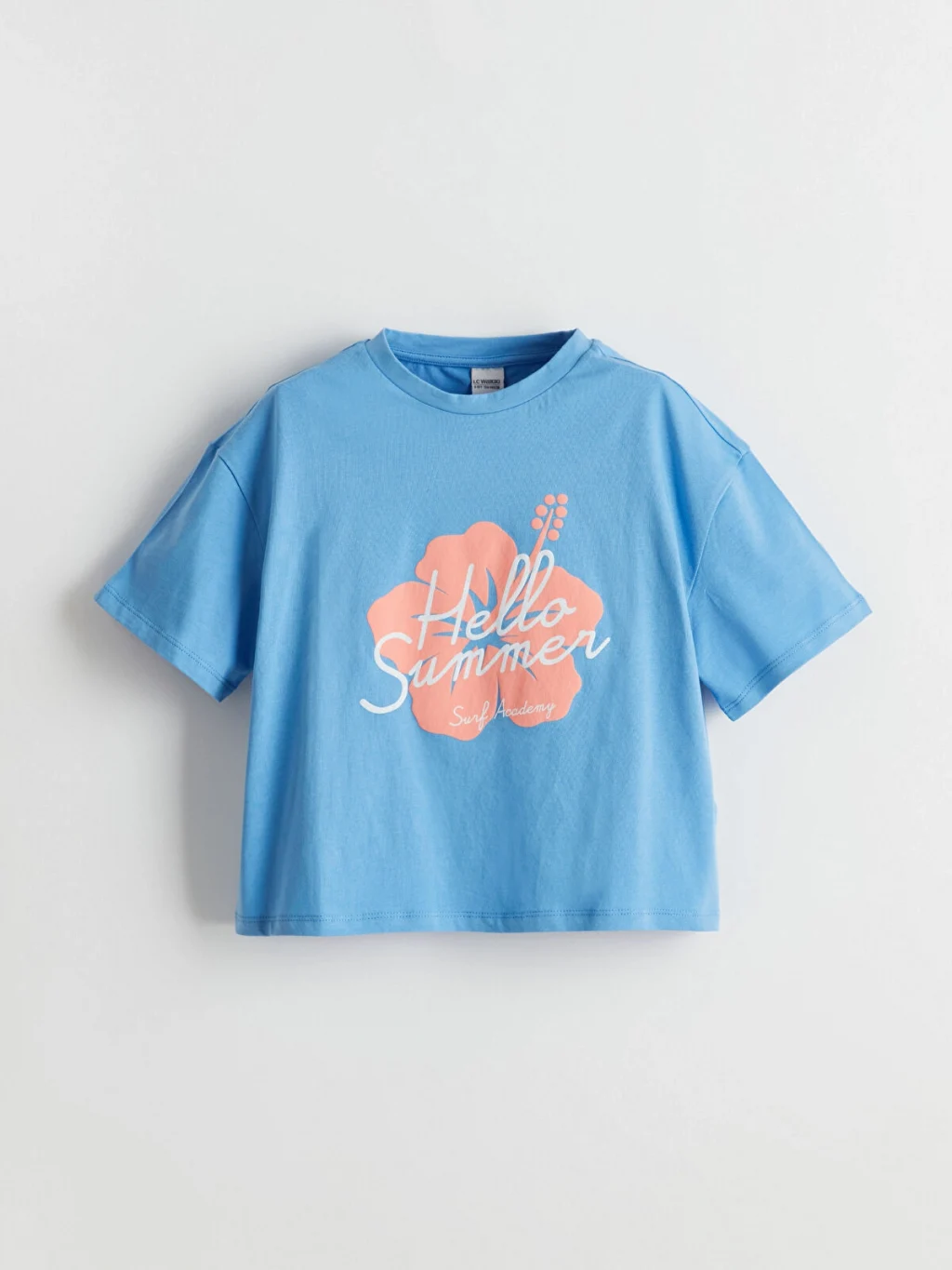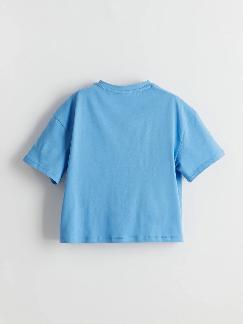 %100 pamuklu penye kumaştan üretilen bol kalıplı kız çocuk tişört, bisiklet yakalı, kısa kollu ve önü baskılıdır.