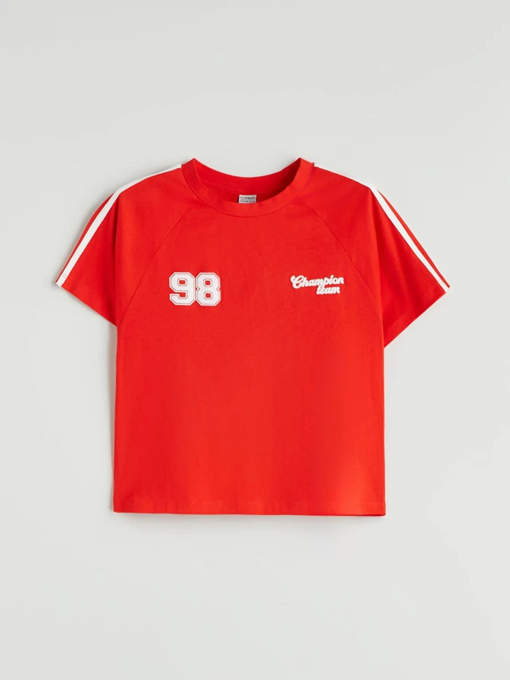 Bisiklet yaka baskılı tişört, pamuklu kumaştan üretilmiştir.