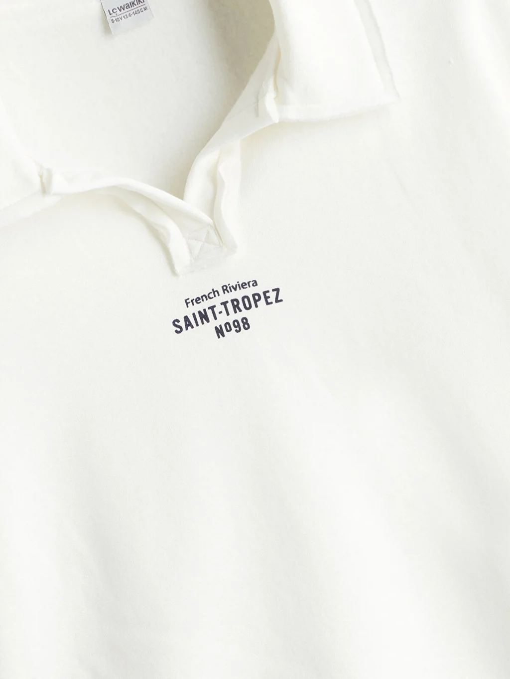 LCWAIKIKI Maternity Beyaz Polo Yaka Baskılı Uzun Kollu Oversize Hamile Sweatshirt