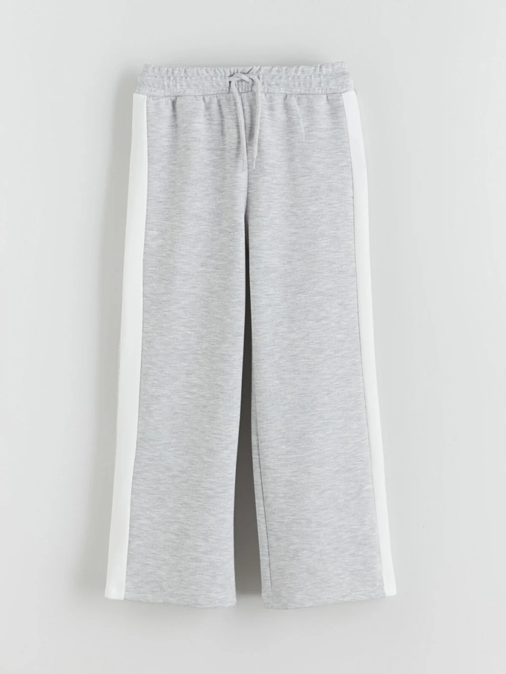 Beli lastikli ve ayarlanabilir bağcıklı, yanları şerit detaylı, geniş paçalı kız çocuk eşofman altı, orta kalınlıkta kumaşa sahiptir.
