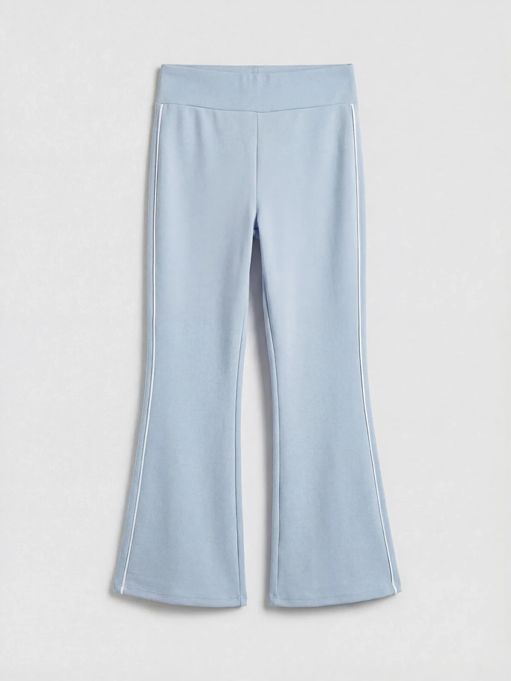 Beli lastikli ve yüksek belli kız çocuk tayt, ispanyol paça kesime sahiptir ve yanları şerit detaylıdır.