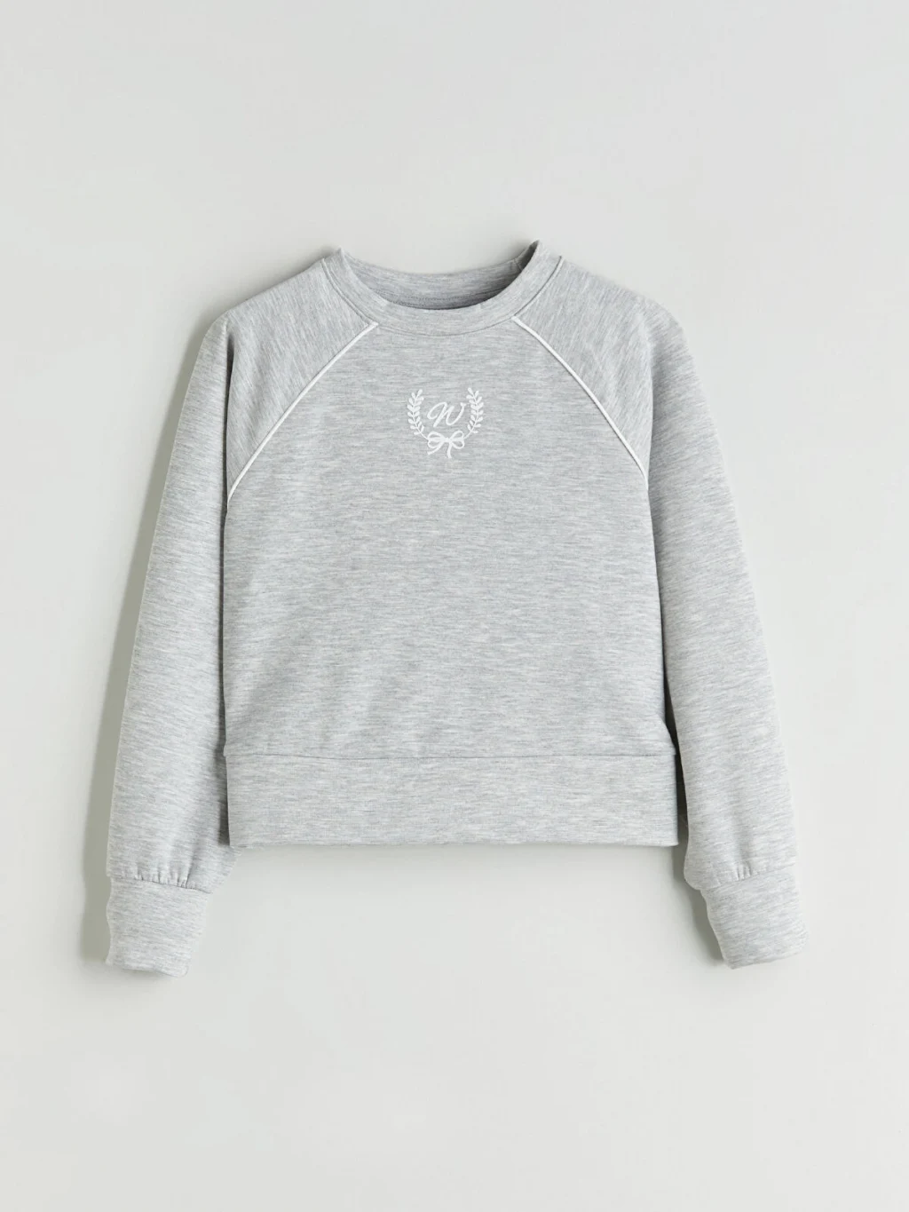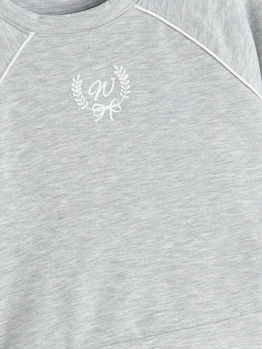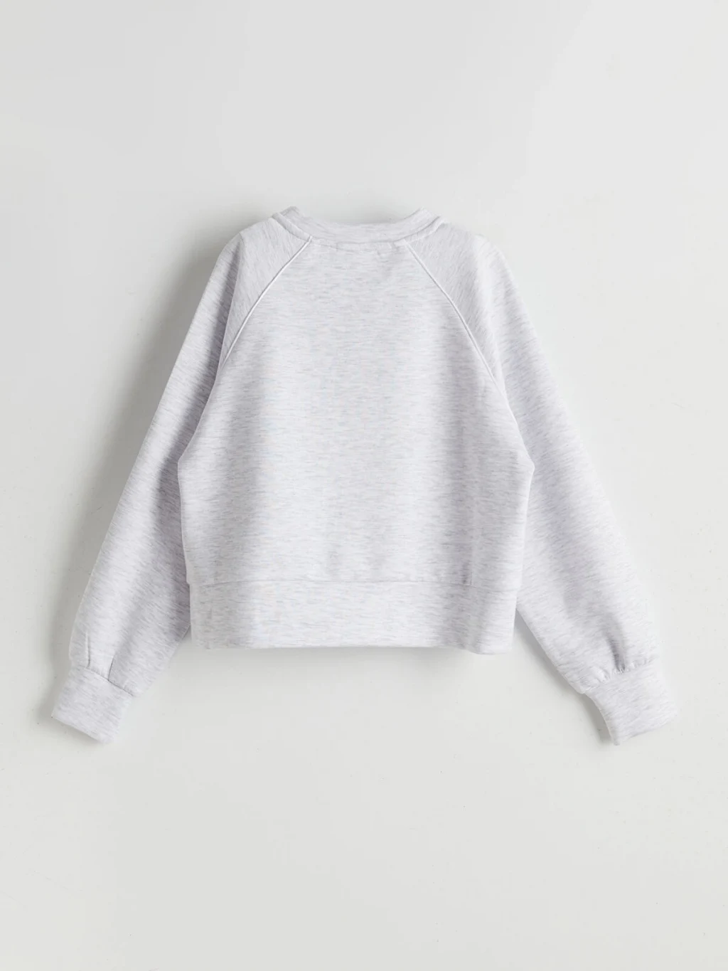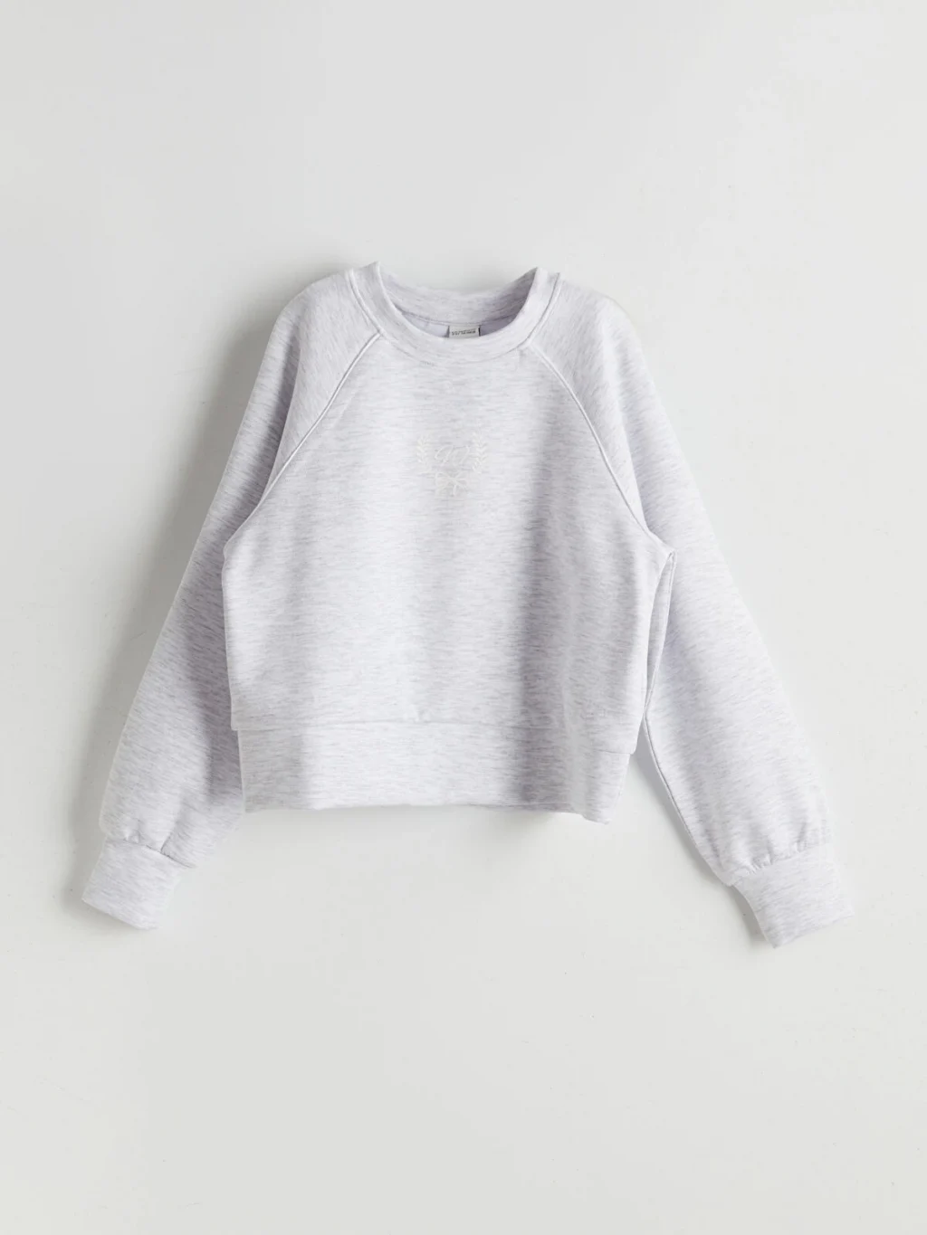 Uzun kollu sweatshirt bisiklet yaka tasarımlı.