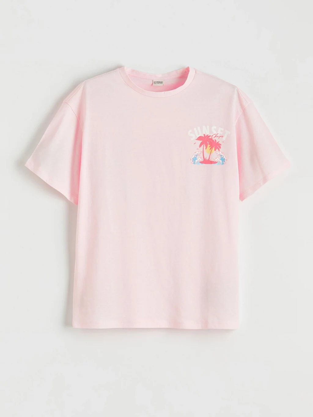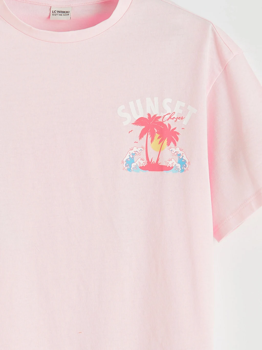 Kız çocuk bisiklet yaka, kısa kollu tişört, pamuklu penye kumaştan üretilmiştir ve önü baskı detaylıdır.