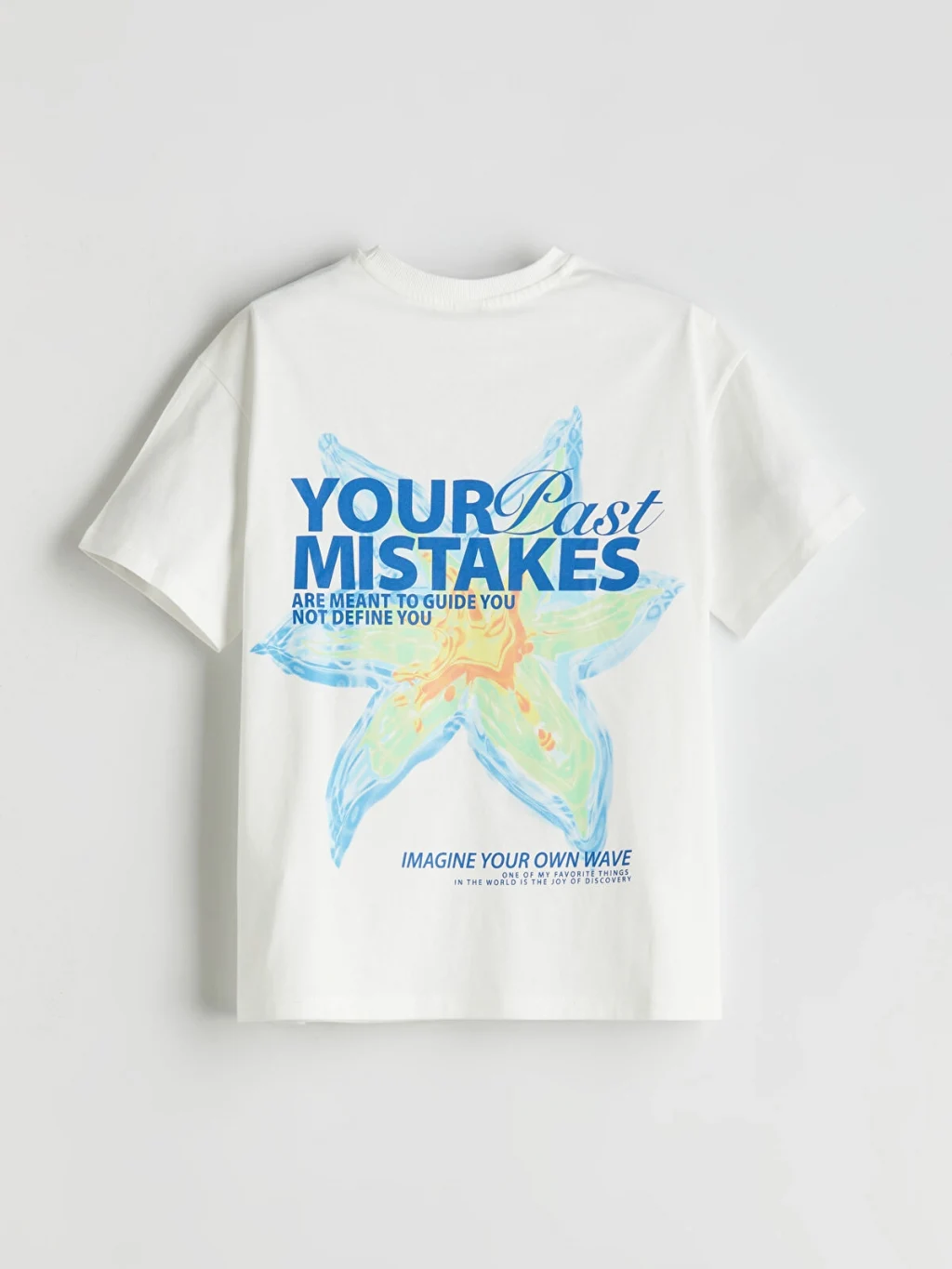 Bisiklet yaka, kısa kollu kız çocuk tişört, %100 pamuklu penye kumaştan üretilmiştir. Bol kalıplı ürünün sırtı yazı ve grafik baskılıdır.