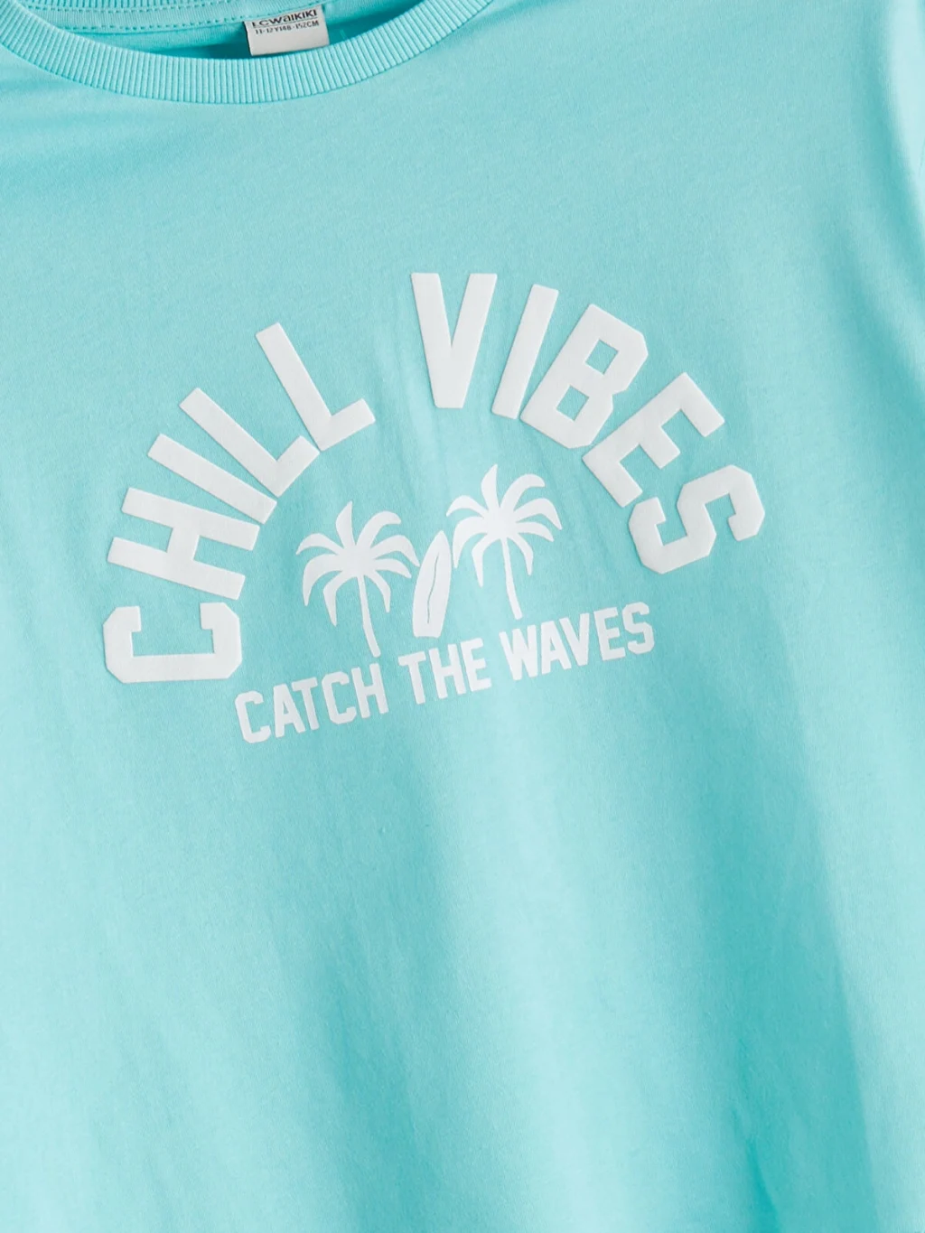 Bisiklet yaka ve kısa kollu kız çocuk tişört, %100 pamuklu penye kumaştan üretilmiştir. Bol kalıplı ve önü baskılıdır.