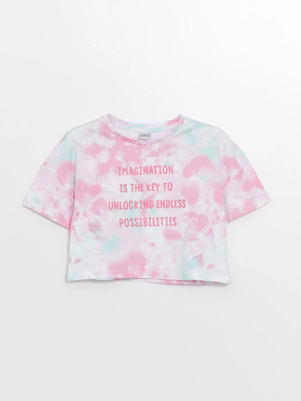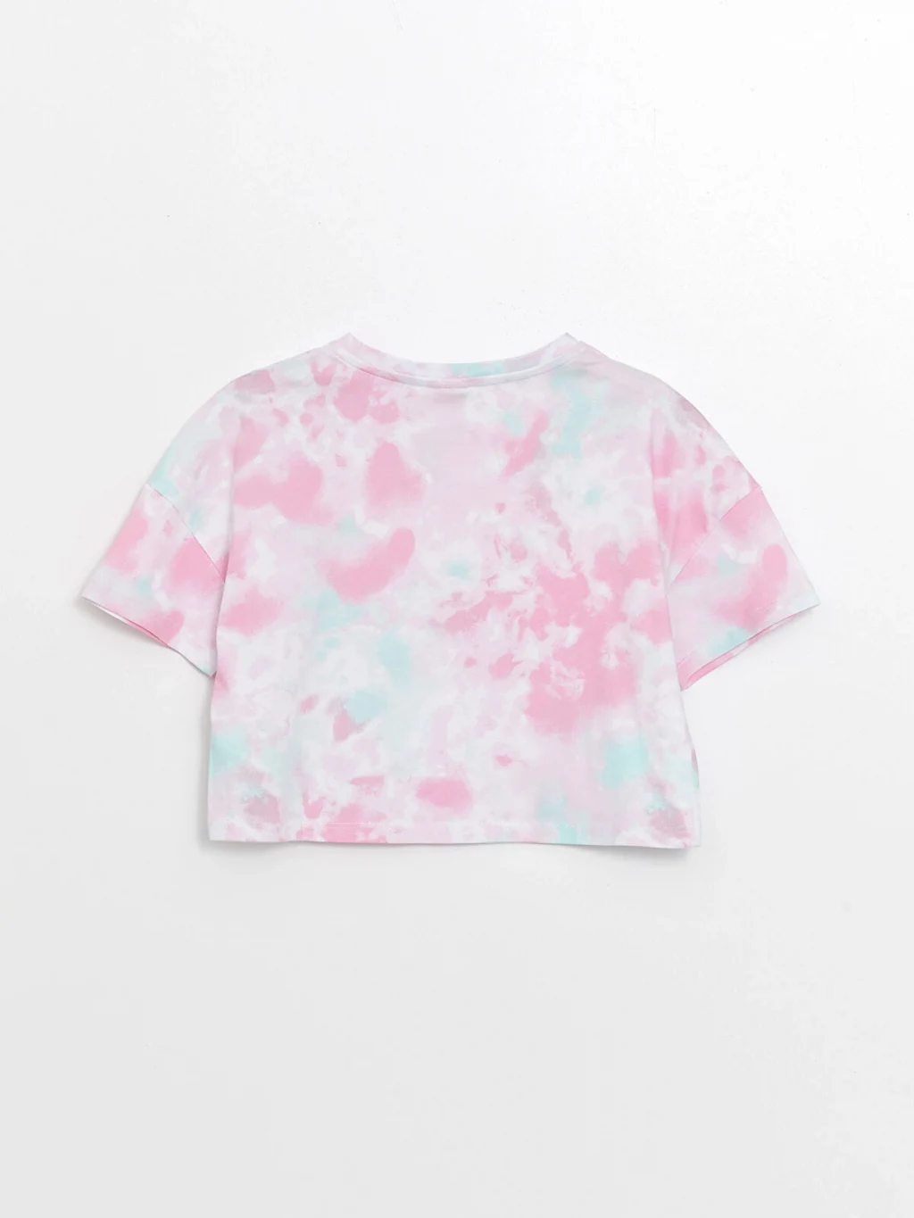 Bisiklet yaka baskılı tişört, kısa kollu tasarıma sahiptir.
