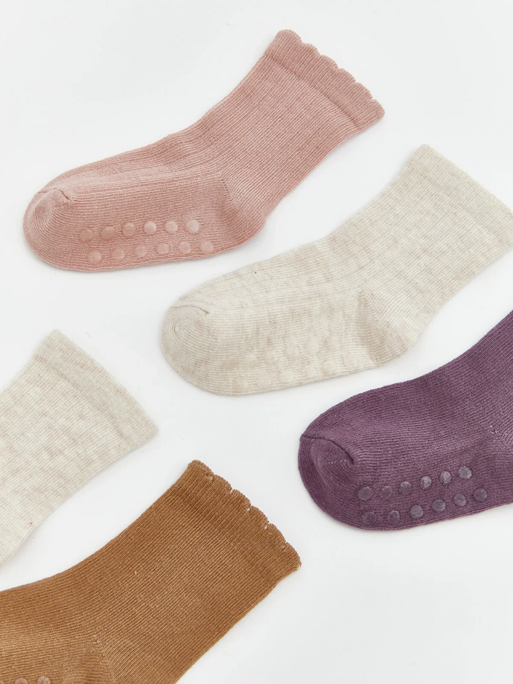 Kız bebek 5'li soket çorap, pamuk karışımlı esnek kumaştan üretilmiştir.