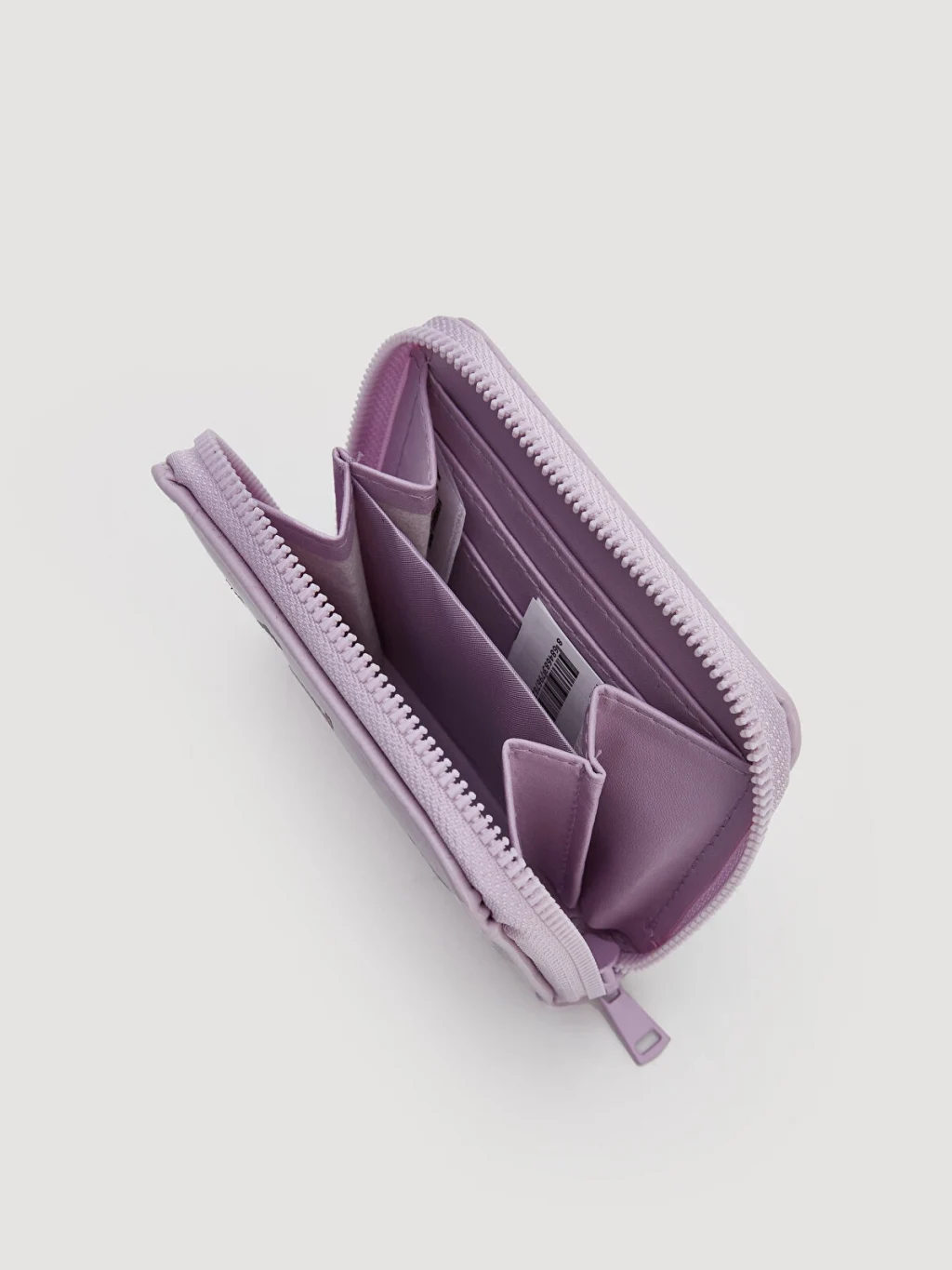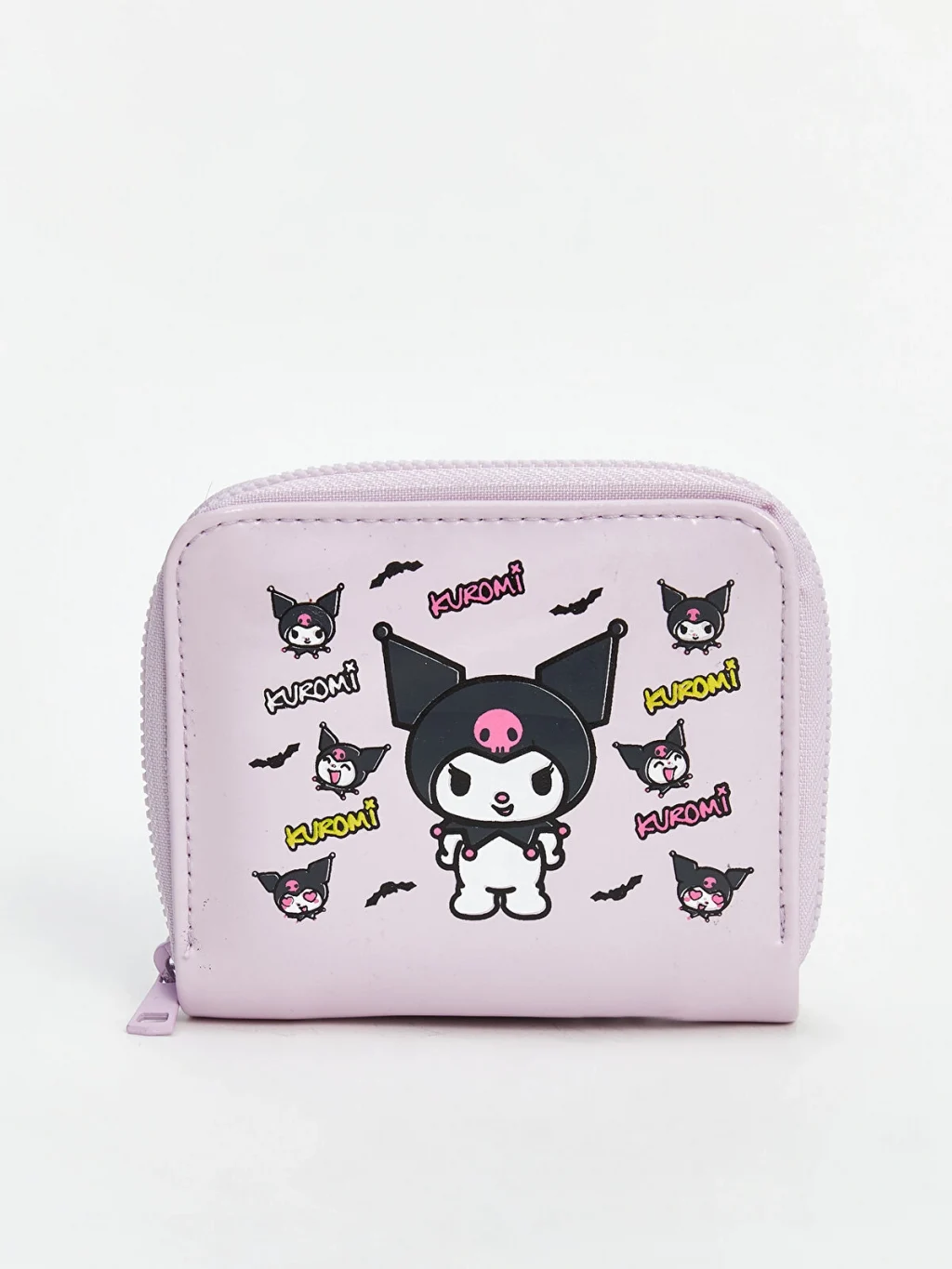 Kuromi lisanslı kız çocuk cüzdanı, karakter ve yazı baskılı bir tasarıma sahiptir ve fermuar ile kapanmaktadır.