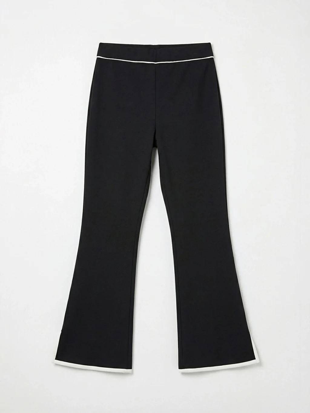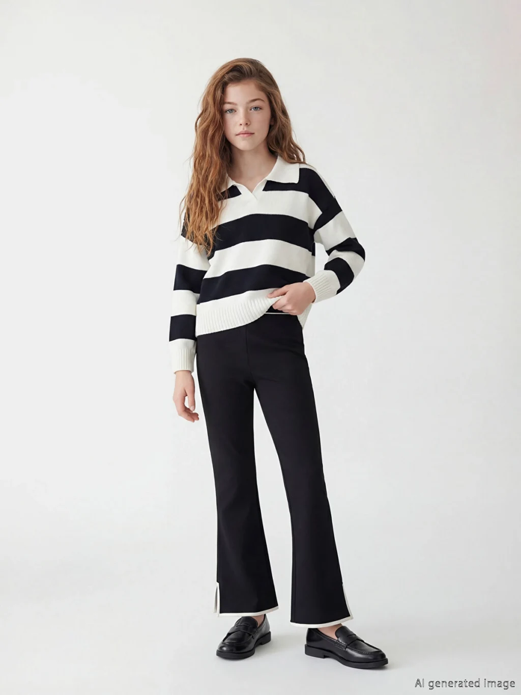 Kız çocuk tayt, interlok kumaştan üretilmiştir. Beli ve paçası biyeli, ispanyol paça kesimli ve paçası yırtmaç detaylıdır.