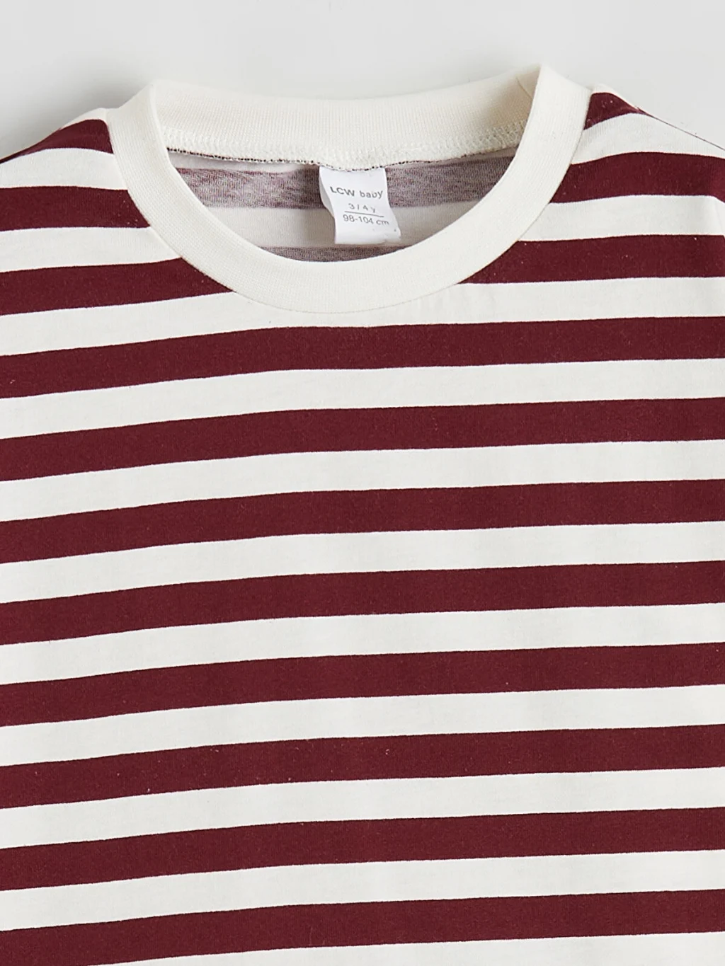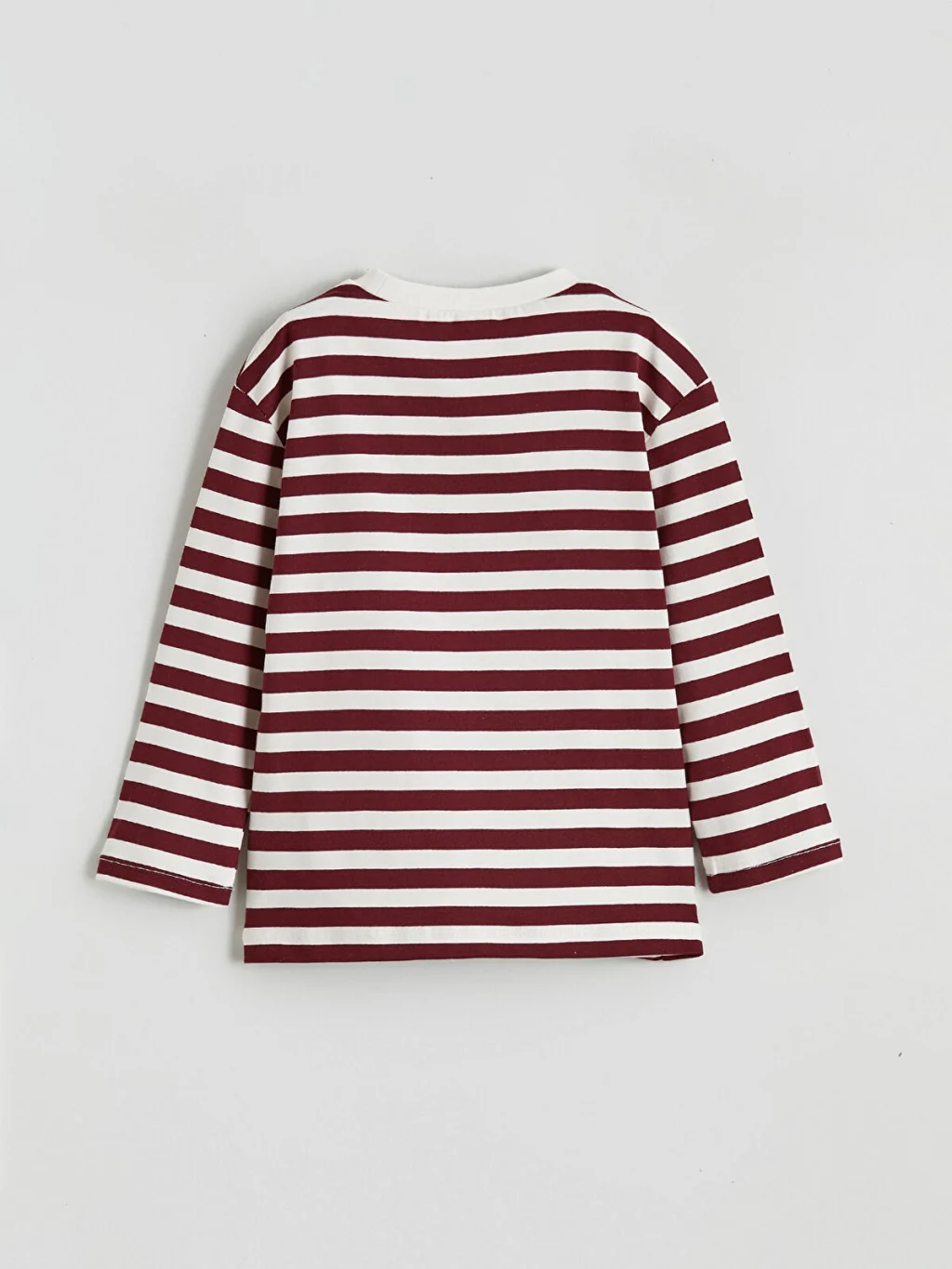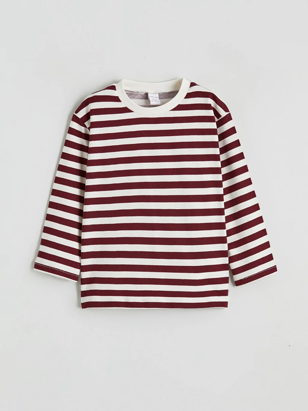 Erkek bebek için tasarlanan tişört, ribana detaylı bisiklet yakalı ve uzun kolludur. Ürün, enine çizgili desene sahiptir.