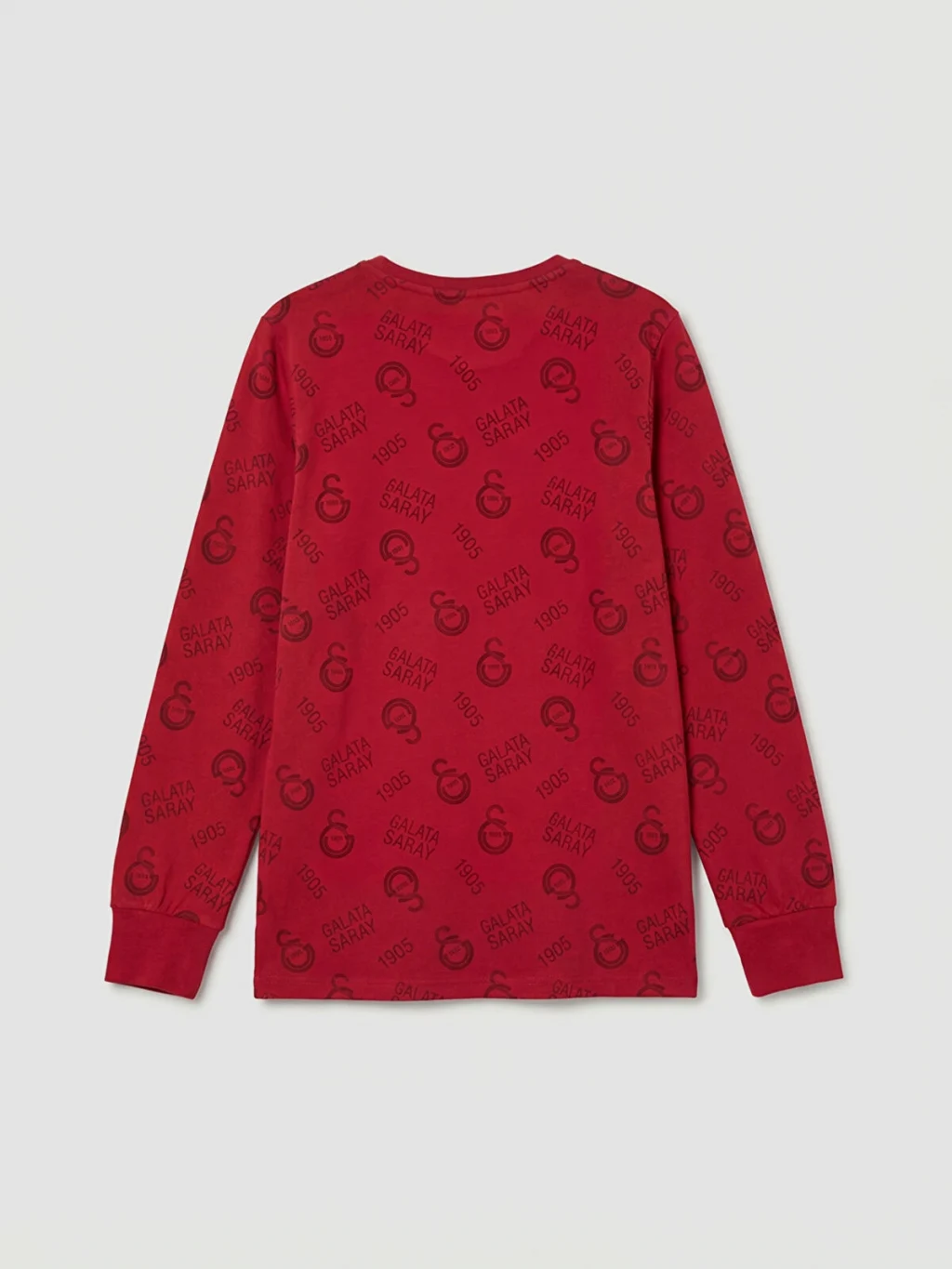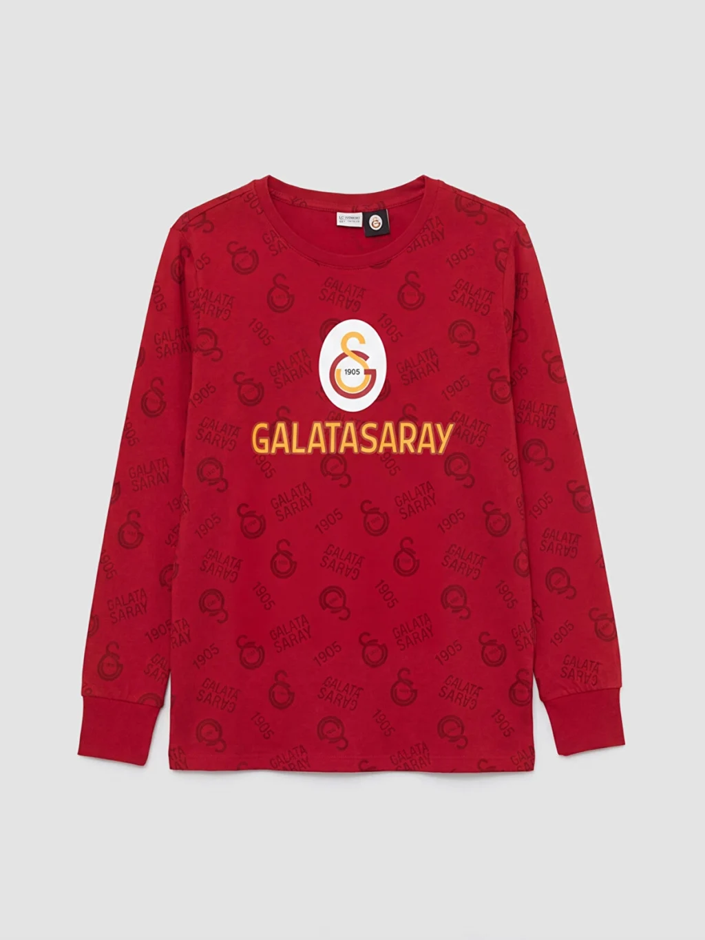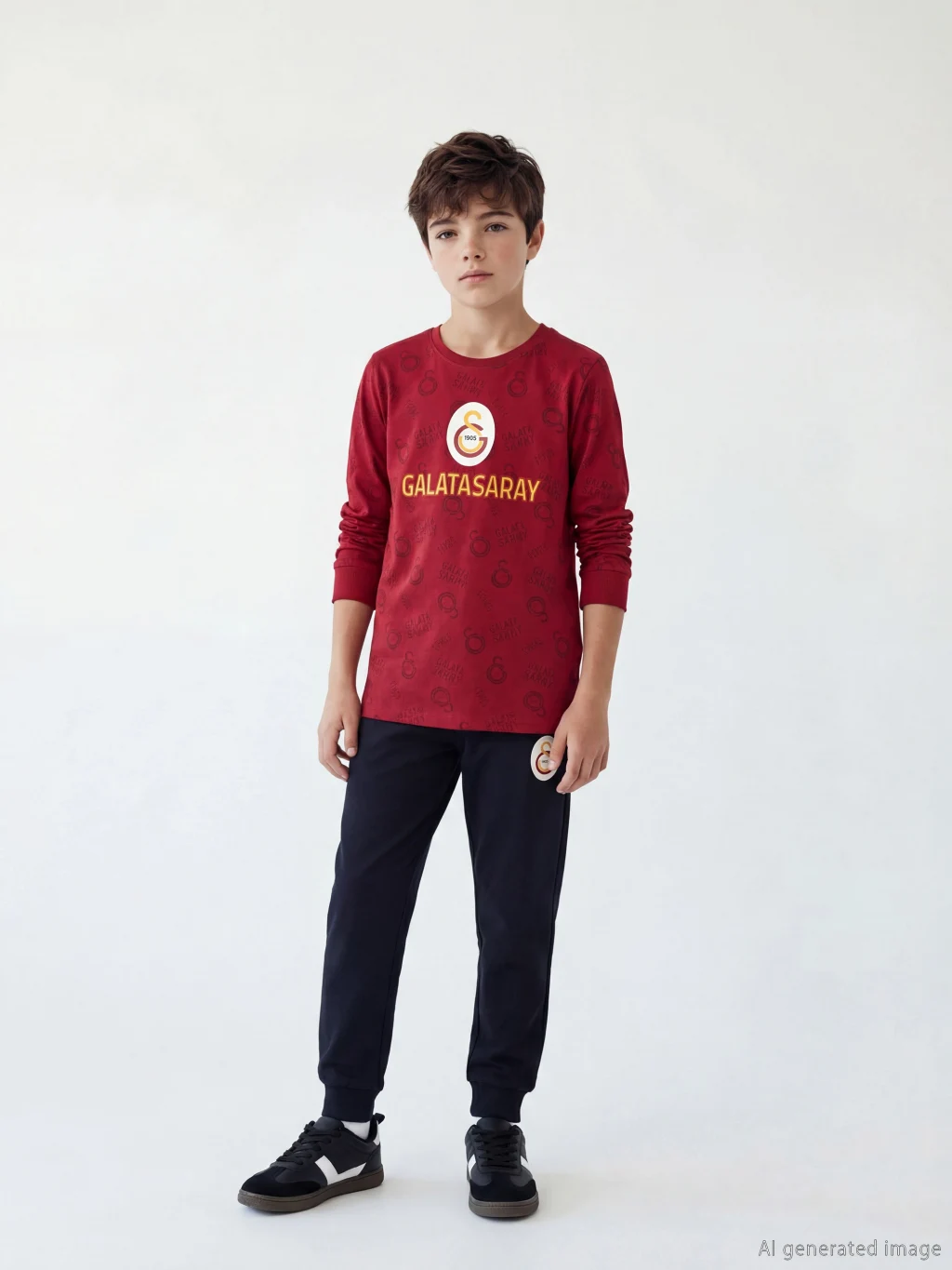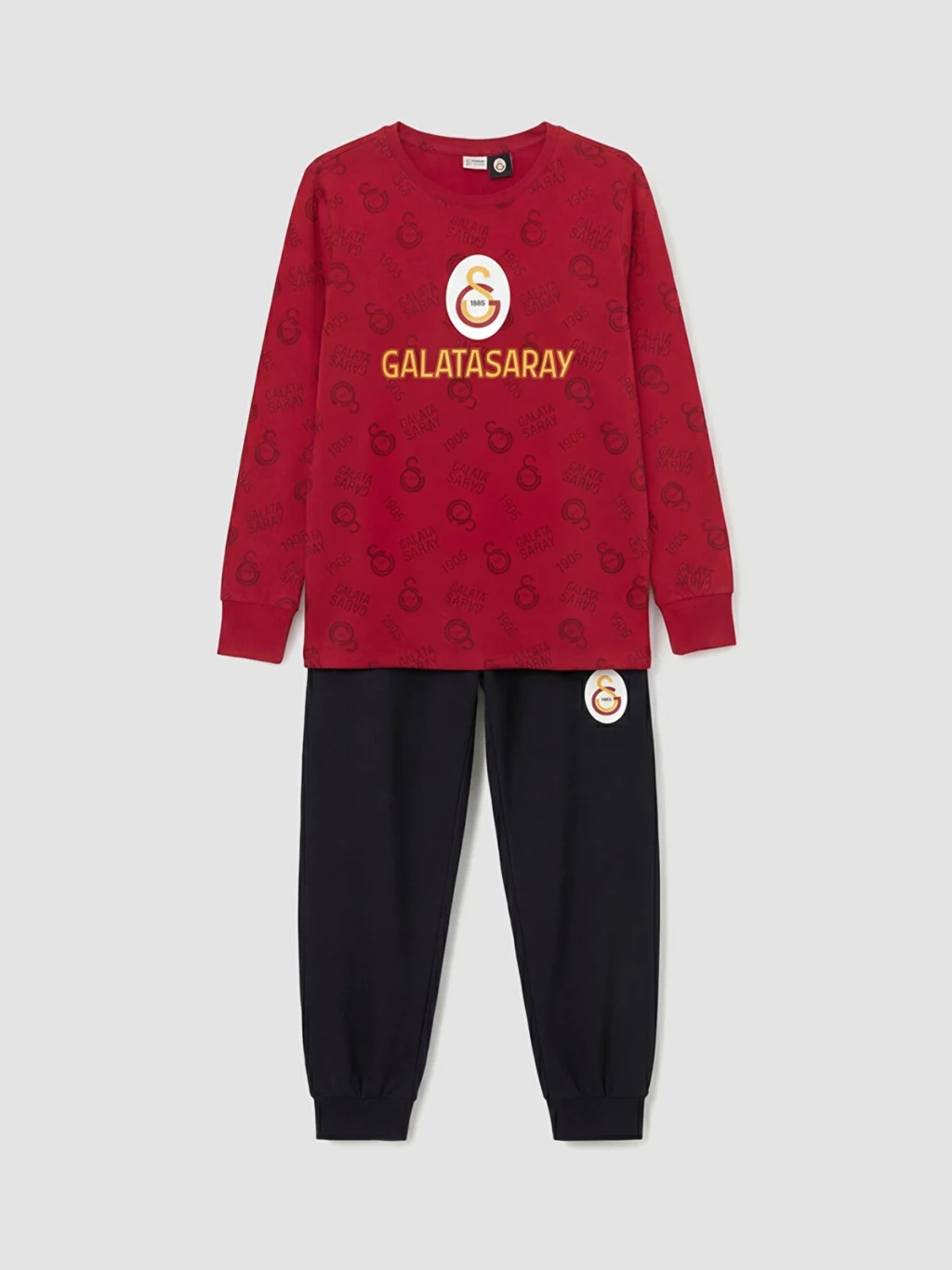 Galatasaray lisanslı erkek çocuk pijama takımı, bisiklet yaka, uzun kollu, desenli üst ve paçaları ribanalı alt parçadan oluşur.