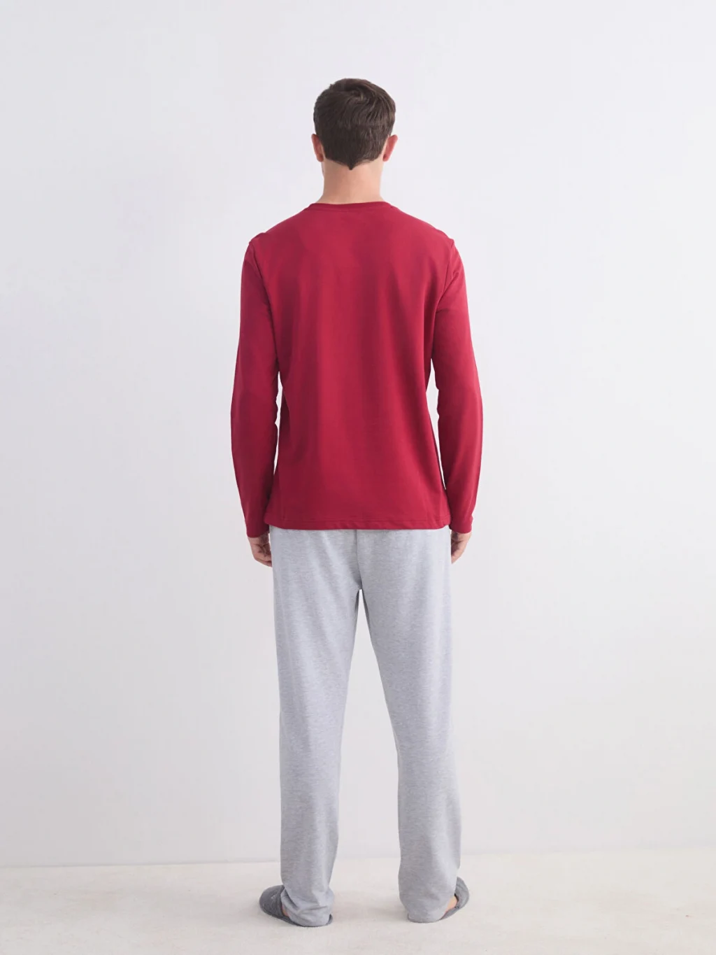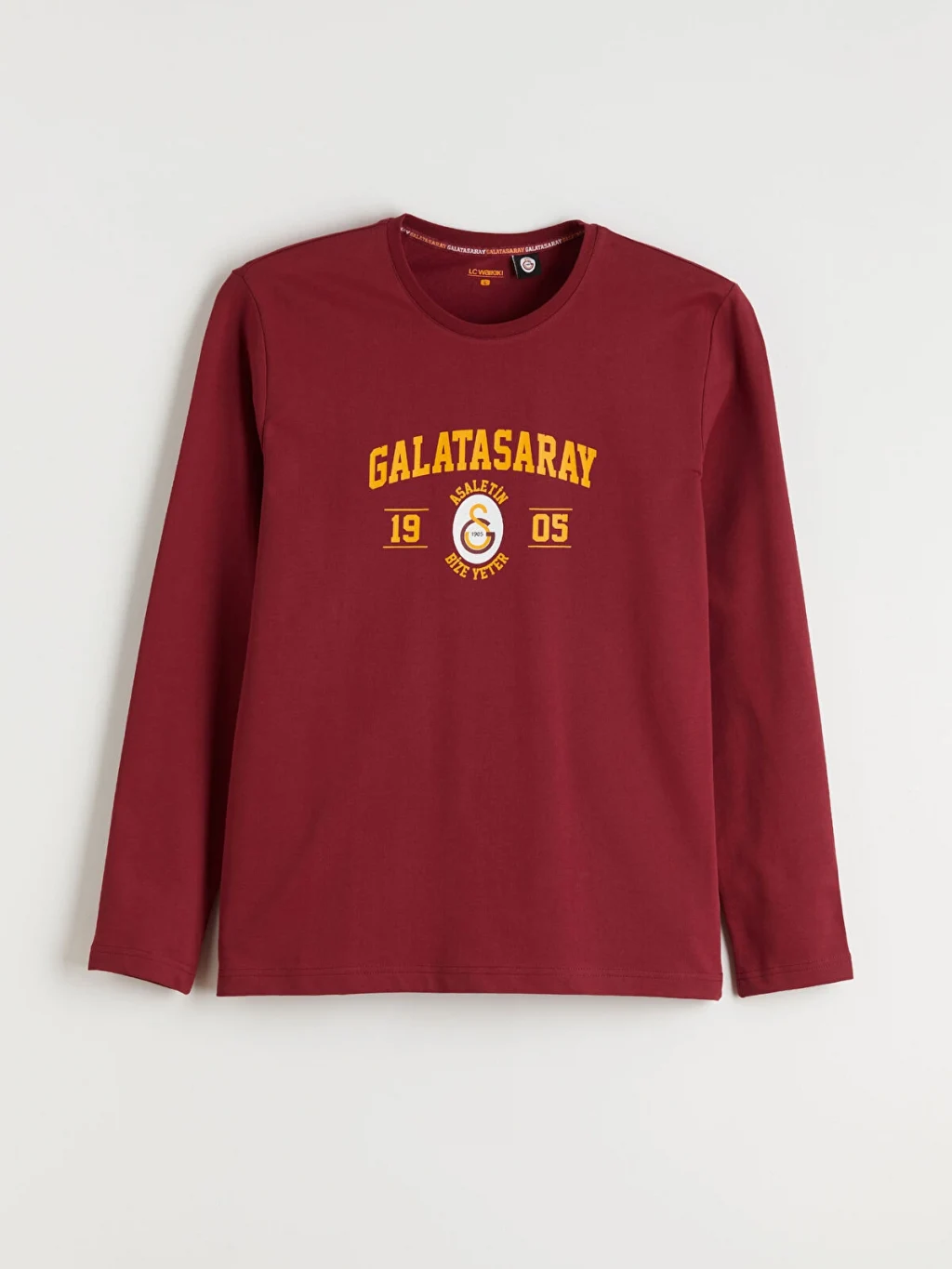 Galatasaray lisanslı erkek pijama takımı, bisiklet yaka ve uzun kollu üst ile uzun alt parçadan oluşur. %100 pamuklu 2 iplik kumaştan üretilmiştir.