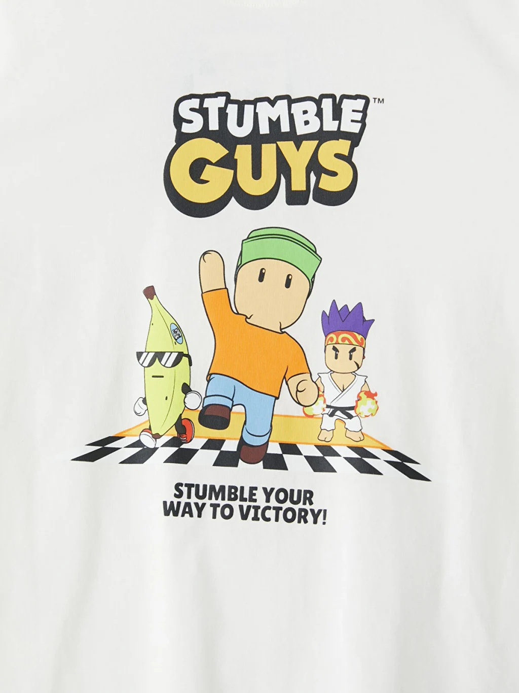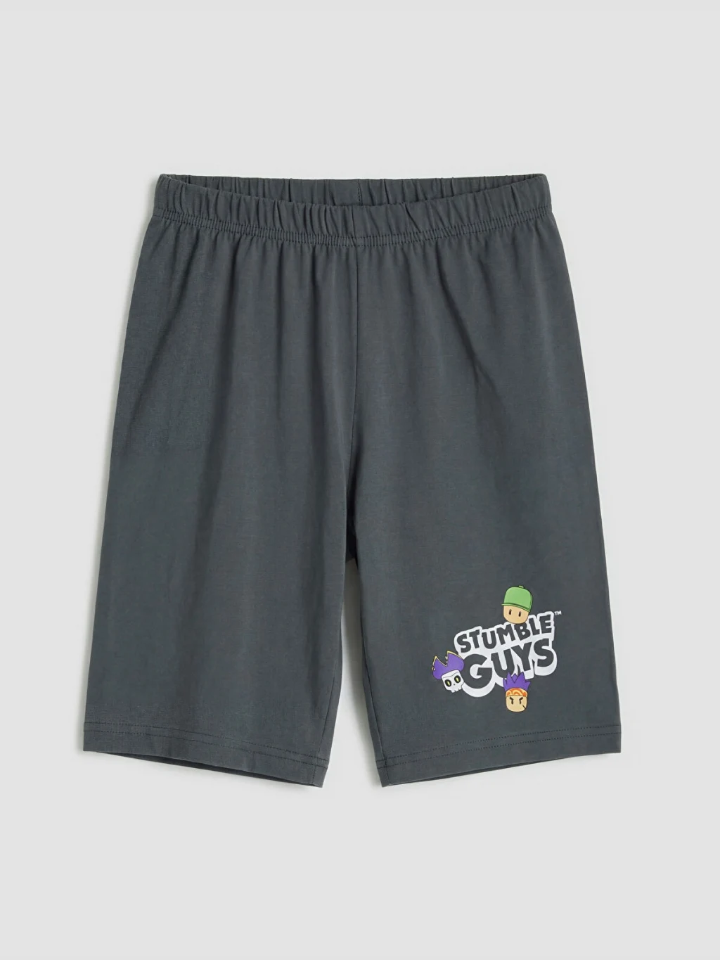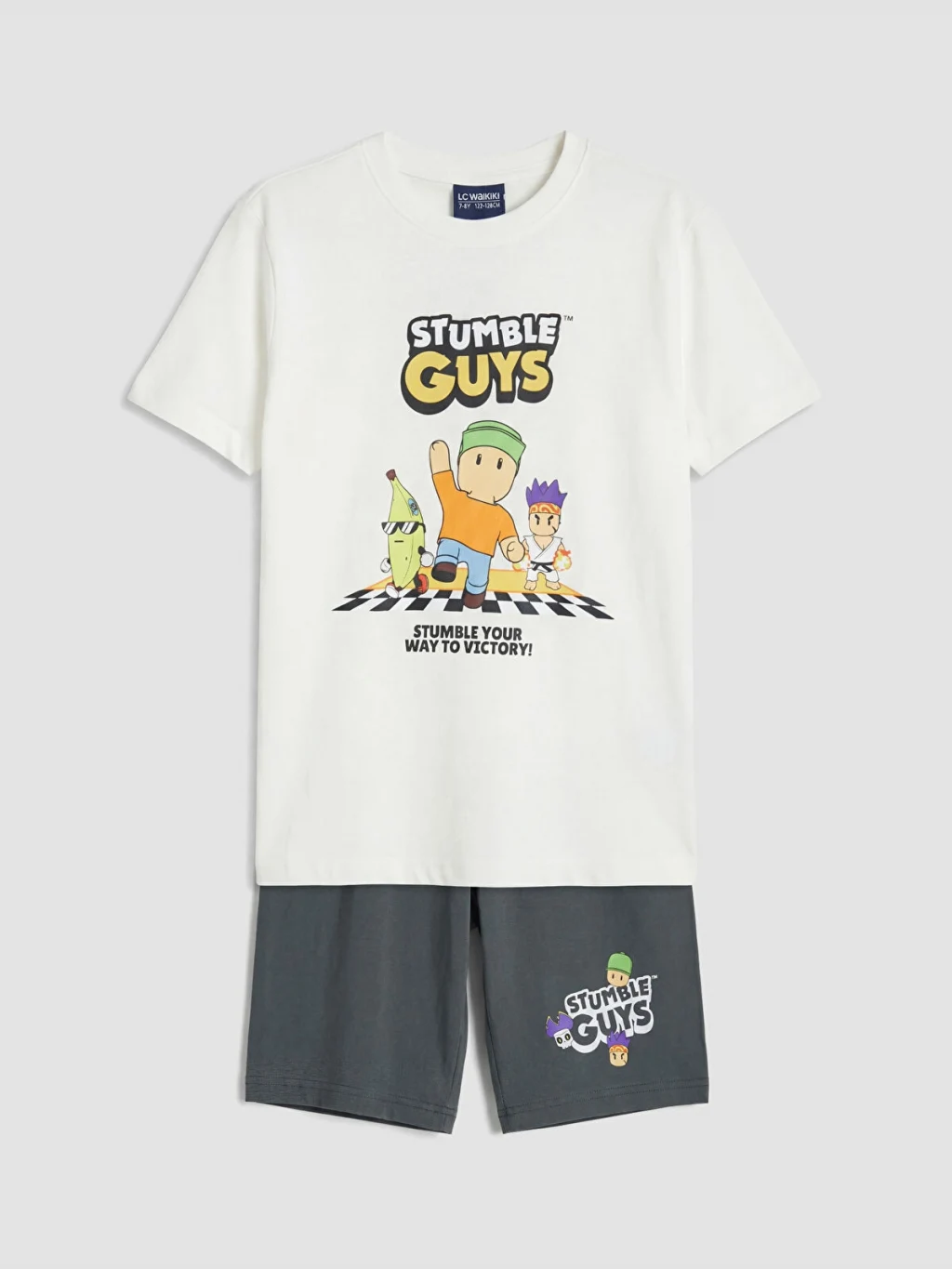 Stumble Guys lisanslı erkek çocuk pijama takımı, bisiklet yaka ve kısa kollu tişört ile baskılı şorttan oluşur. %100 pamuk kumaştan üretilmiştir.
