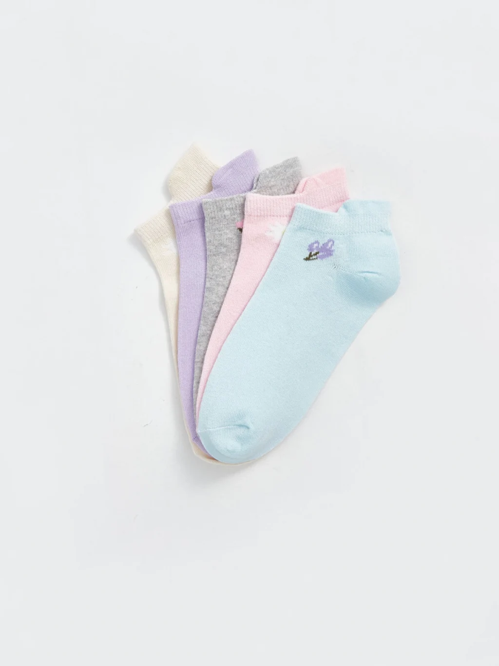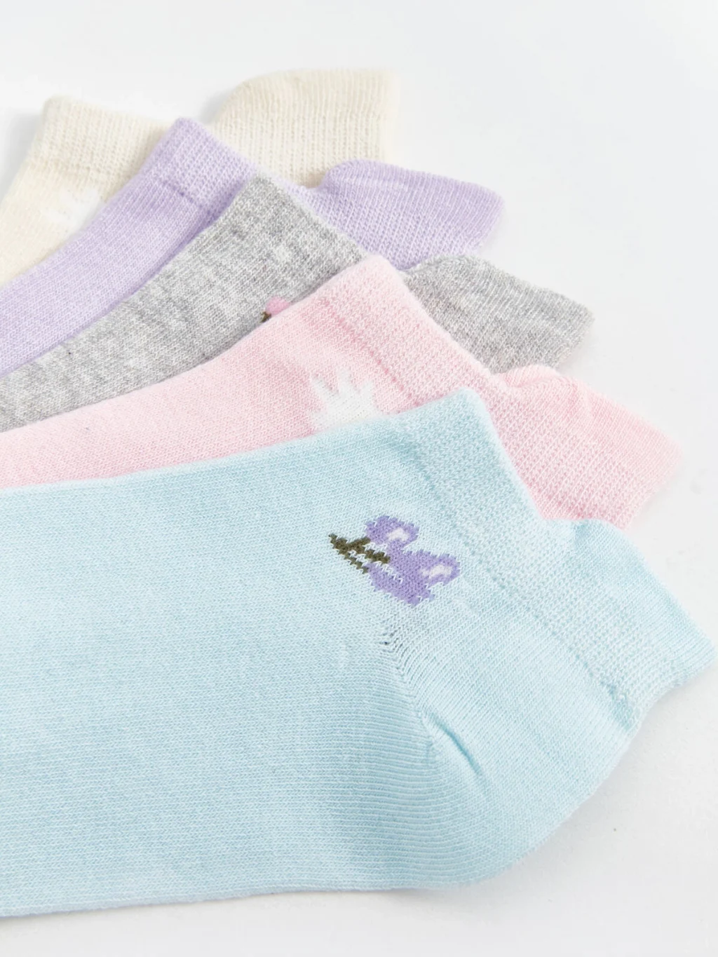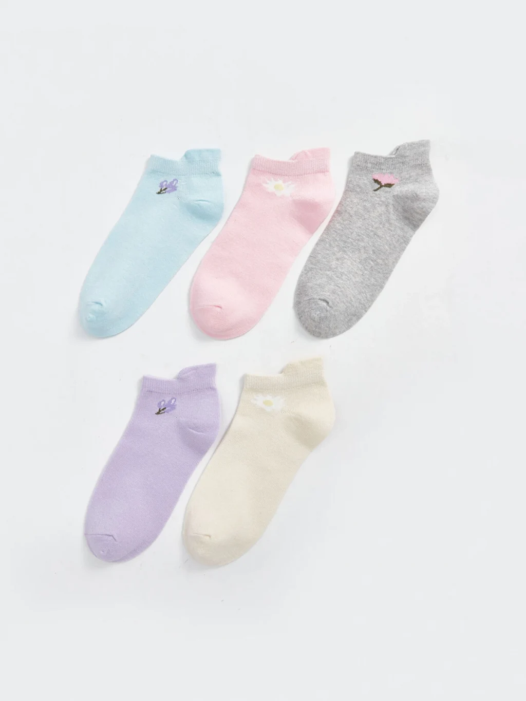 Pamuk karışımlı elyaftan üretilen patik çoraplar, yumuşak ve konforlu bir dokuya sahiptir. Çiçek baskılı tasarımıyla eğlenceli bir görünüm sunar ve 5 çift patik çoraptan oluşmaktadır.