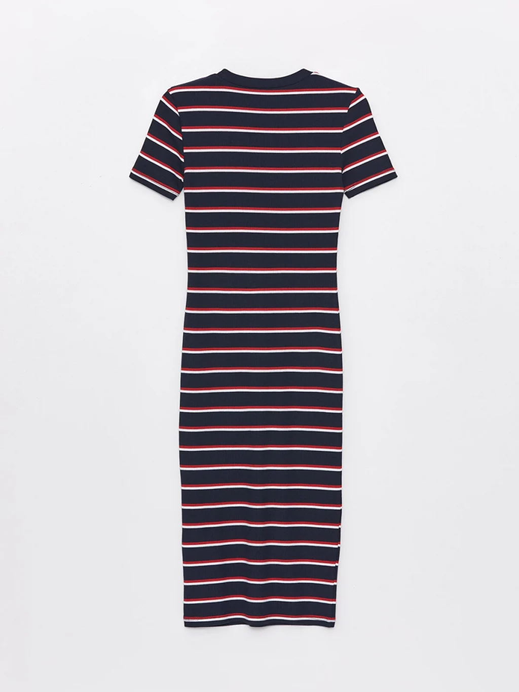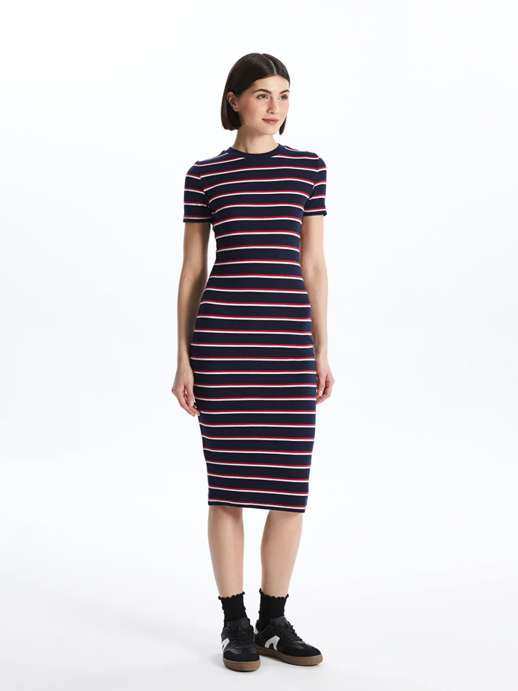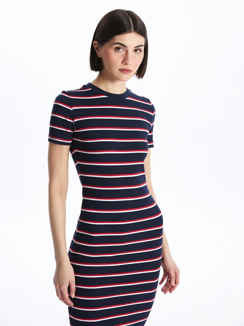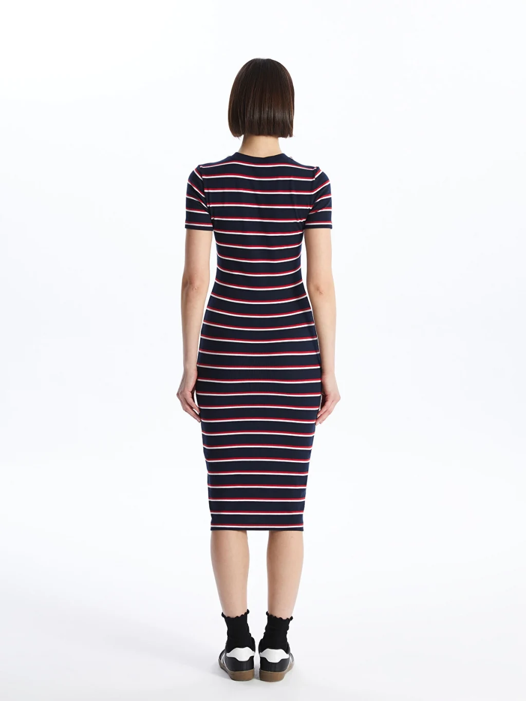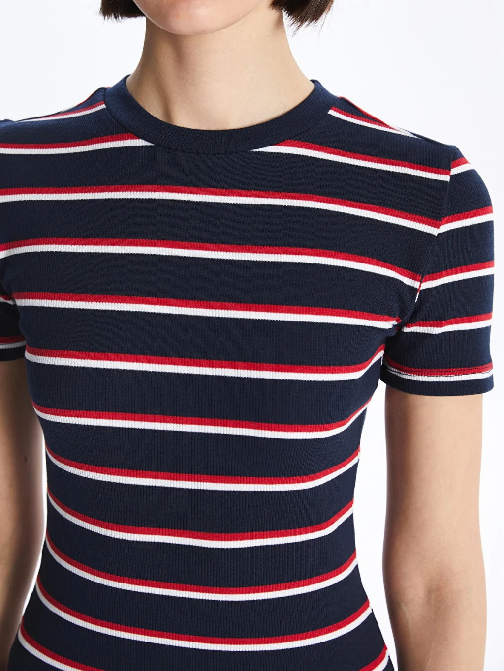 Çizgili kısa kollu kadın elbise, modern ve tarz bir görünüm sunar. Ekstra dar fit kesimi, vücudunuzu zarifçe sararak şık bir siluet oluşturur. Klasik çizgili deseni, hem günlük kullanımda hem de özel etkinliklerde dikkat çekici bir stil sunar.