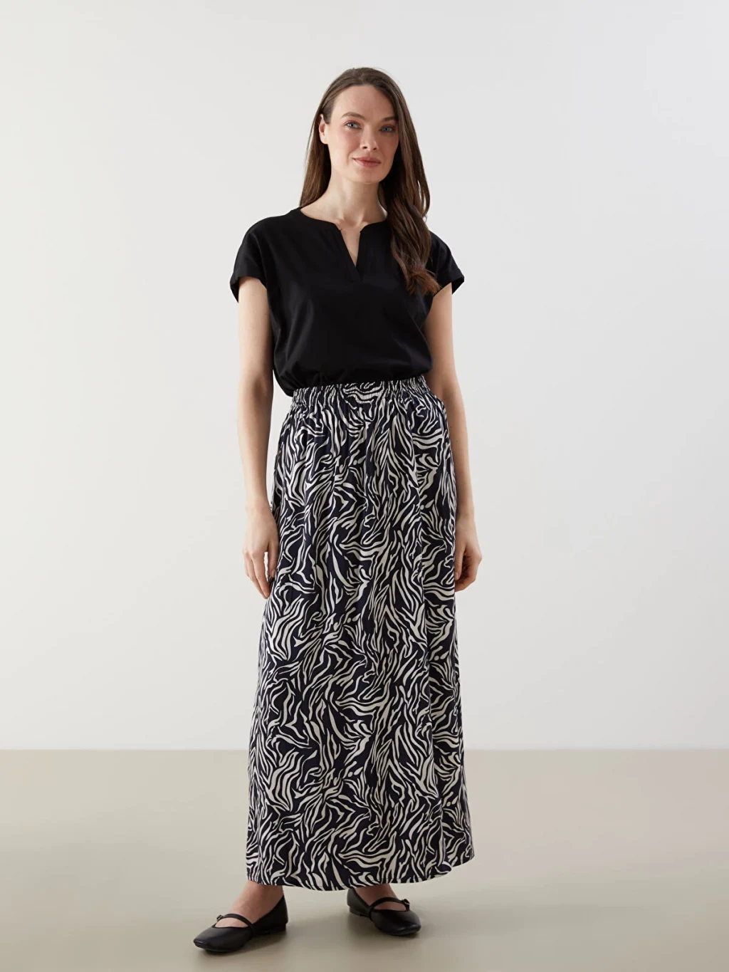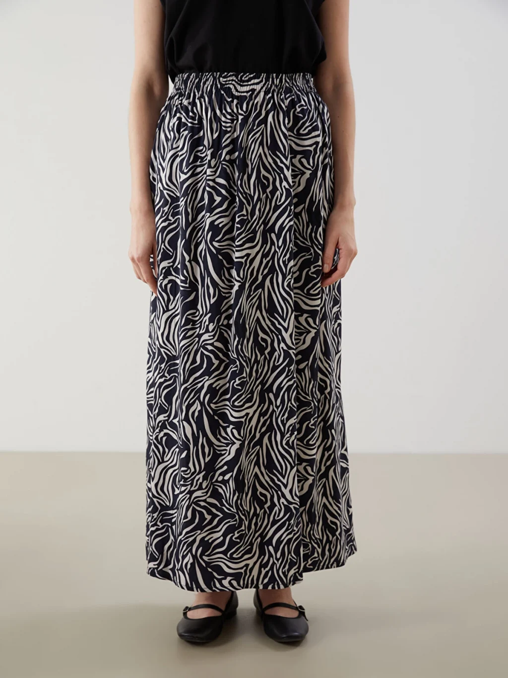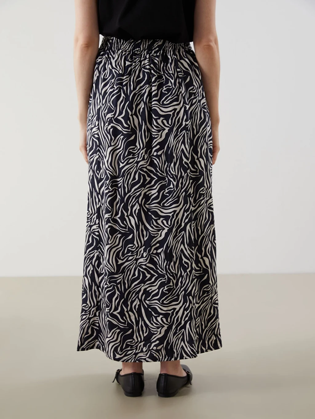 Beli lastikli ve desenli olan kadın etek, uzun boyuyla dikkat çeker. Rahat ve şık bir görünüm sunarken, stilinizi tamamlamak için ideal bir seçenektir.