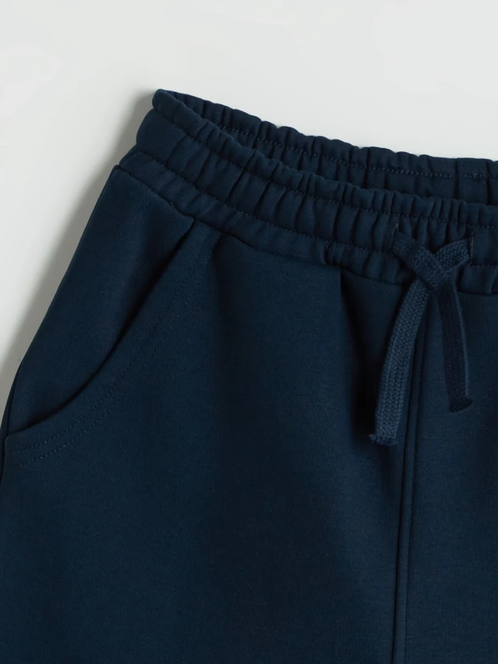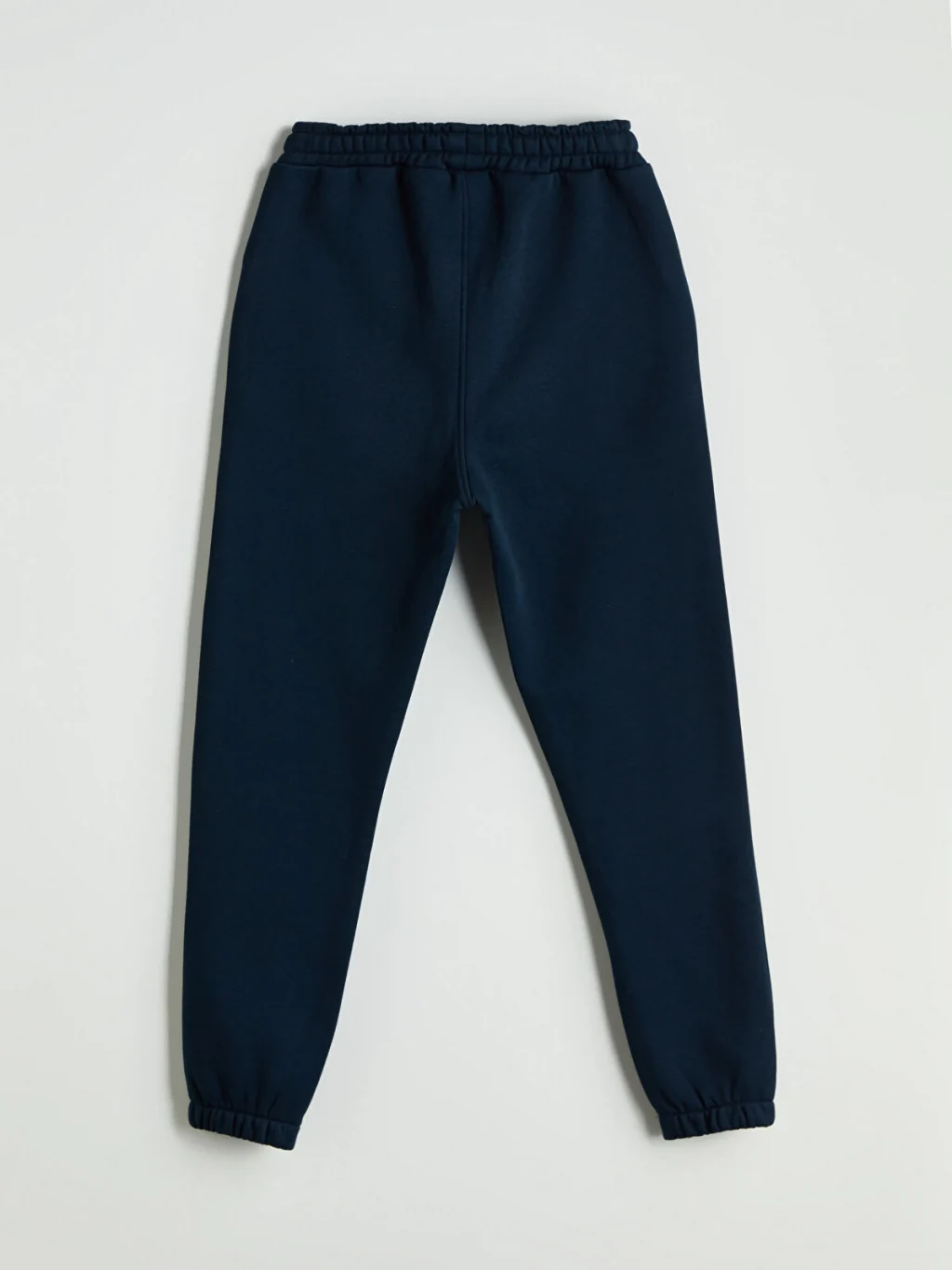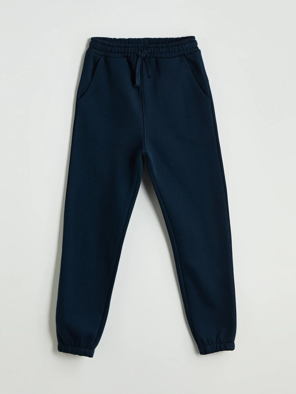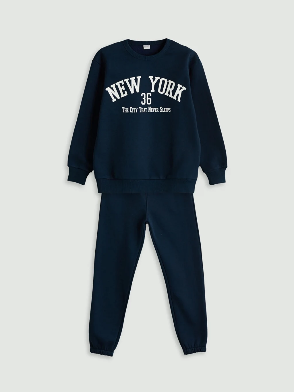 3 iplik şardonlu kumaştan üretilmiş, paça ve manşetlerde ribanalı eşofman takımı.