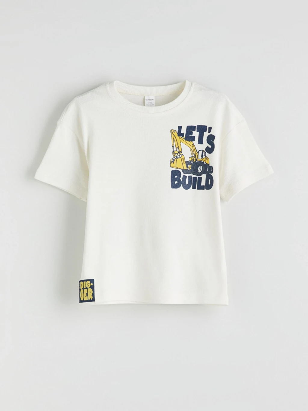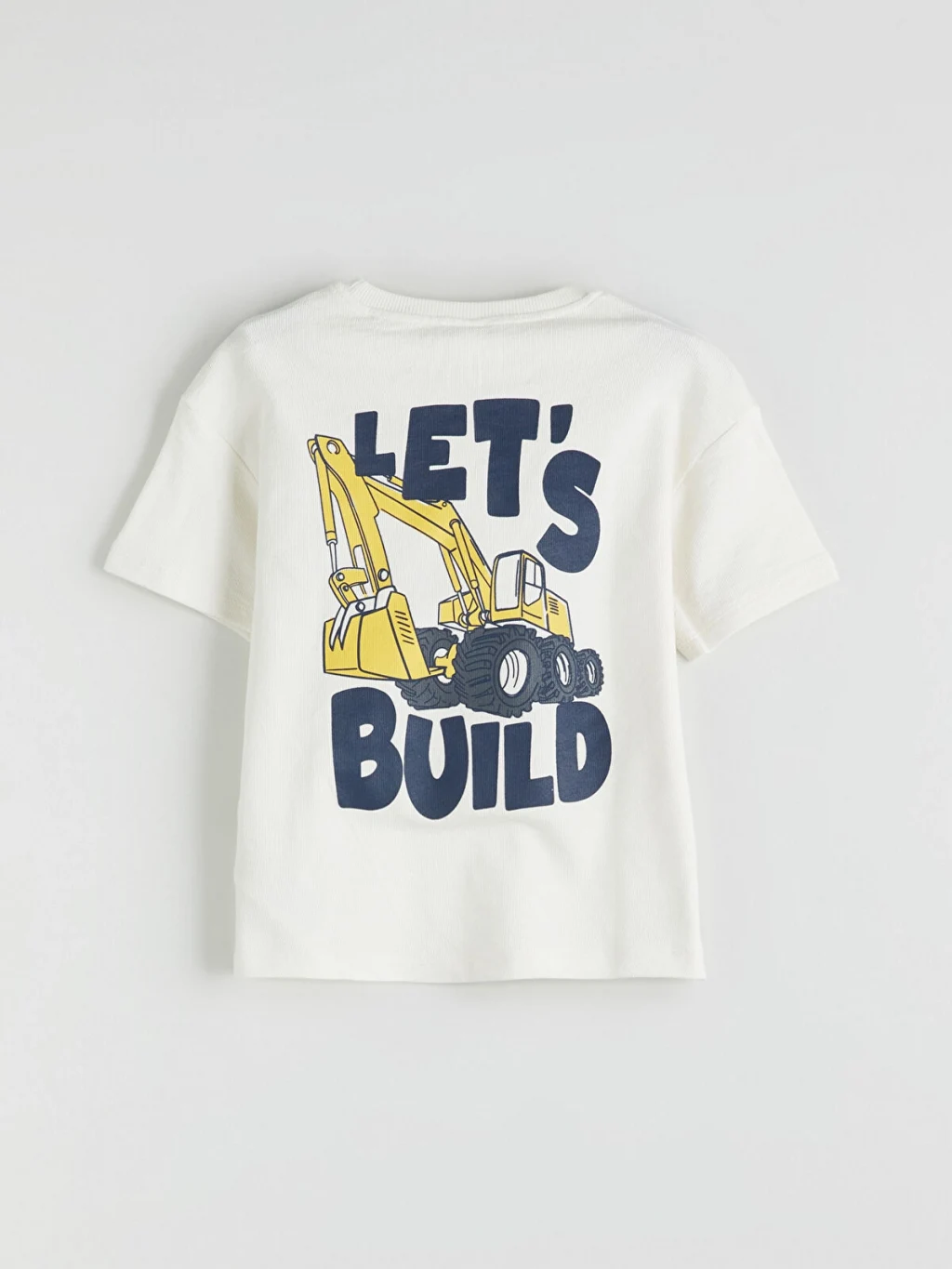 Erkek çocuk tişört, %100 pamuklu penye kumaştan üretilmiştir. Bisiklet yaka, kısa kollu ve bol kalıplı modelin sırtı baskılıdır.