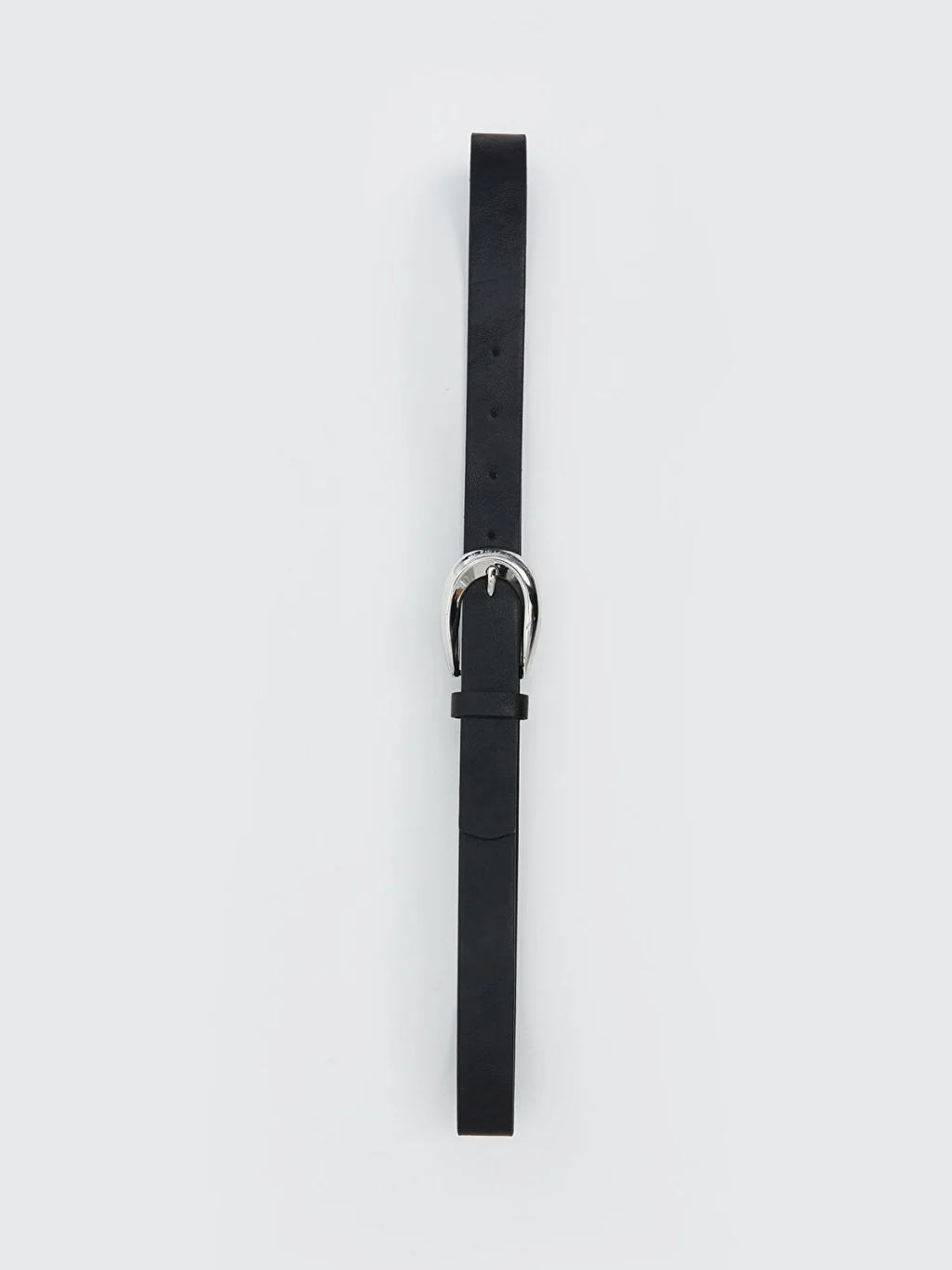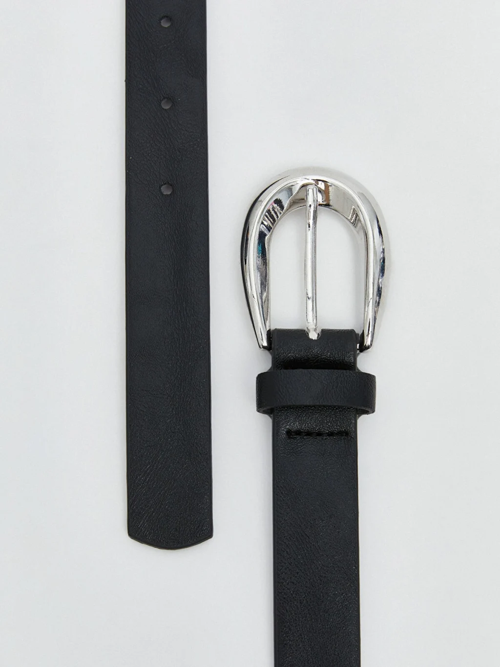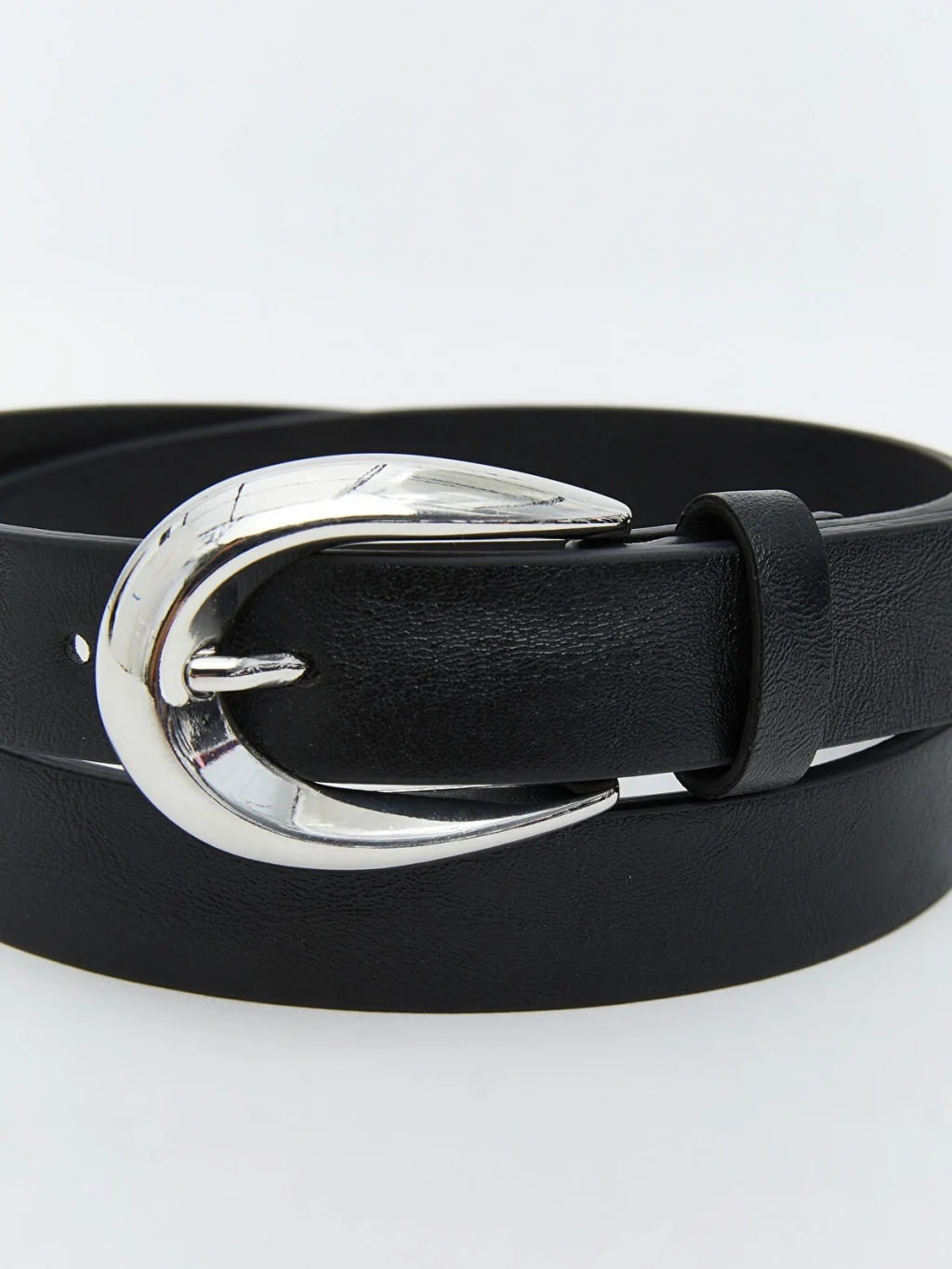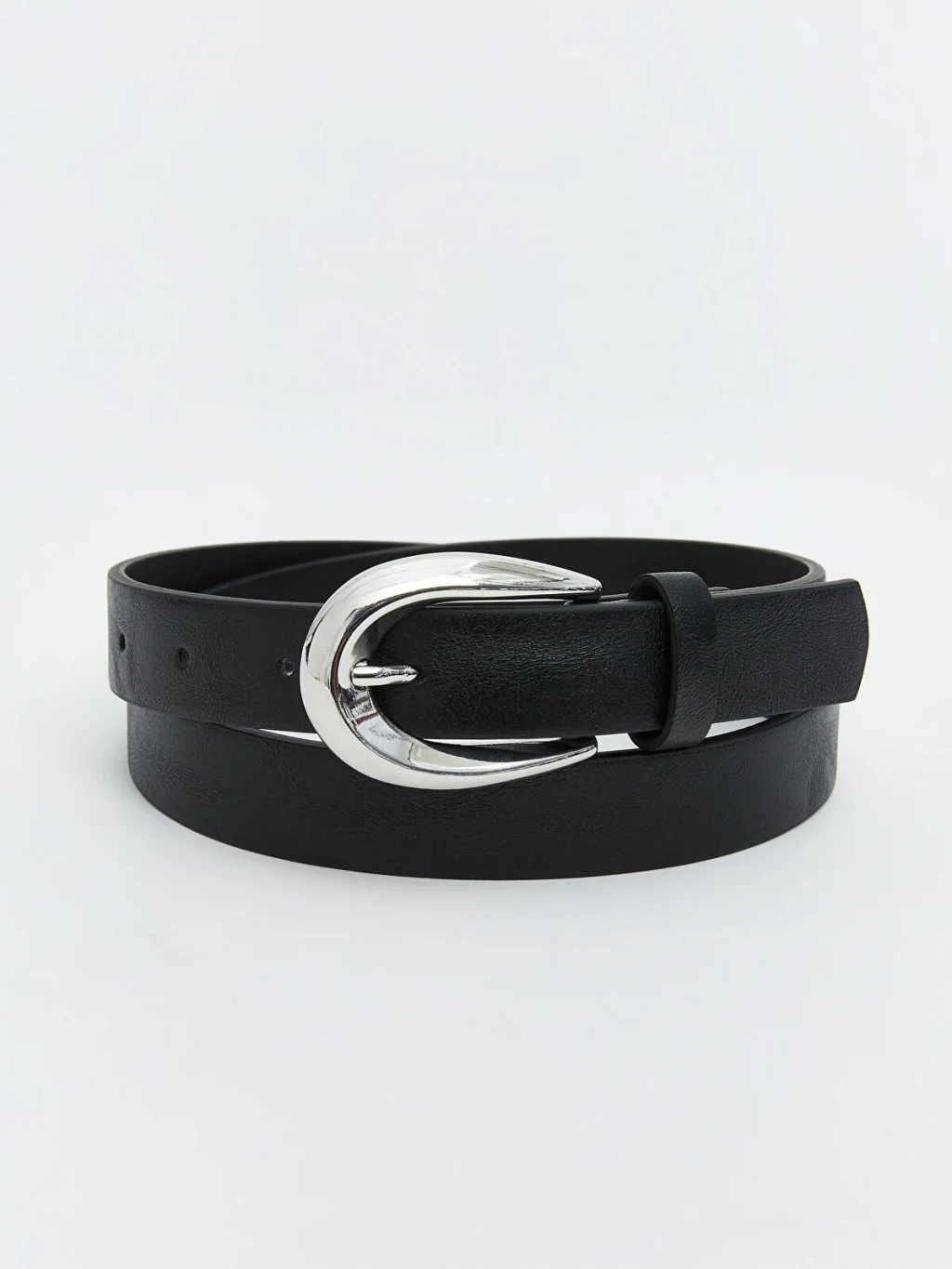 Asimetrik şekilli metal tokası bulunan kadın kemer, ayarlanabilir tasarıma sahiptir ve tek dilli toka kapamalıdır.