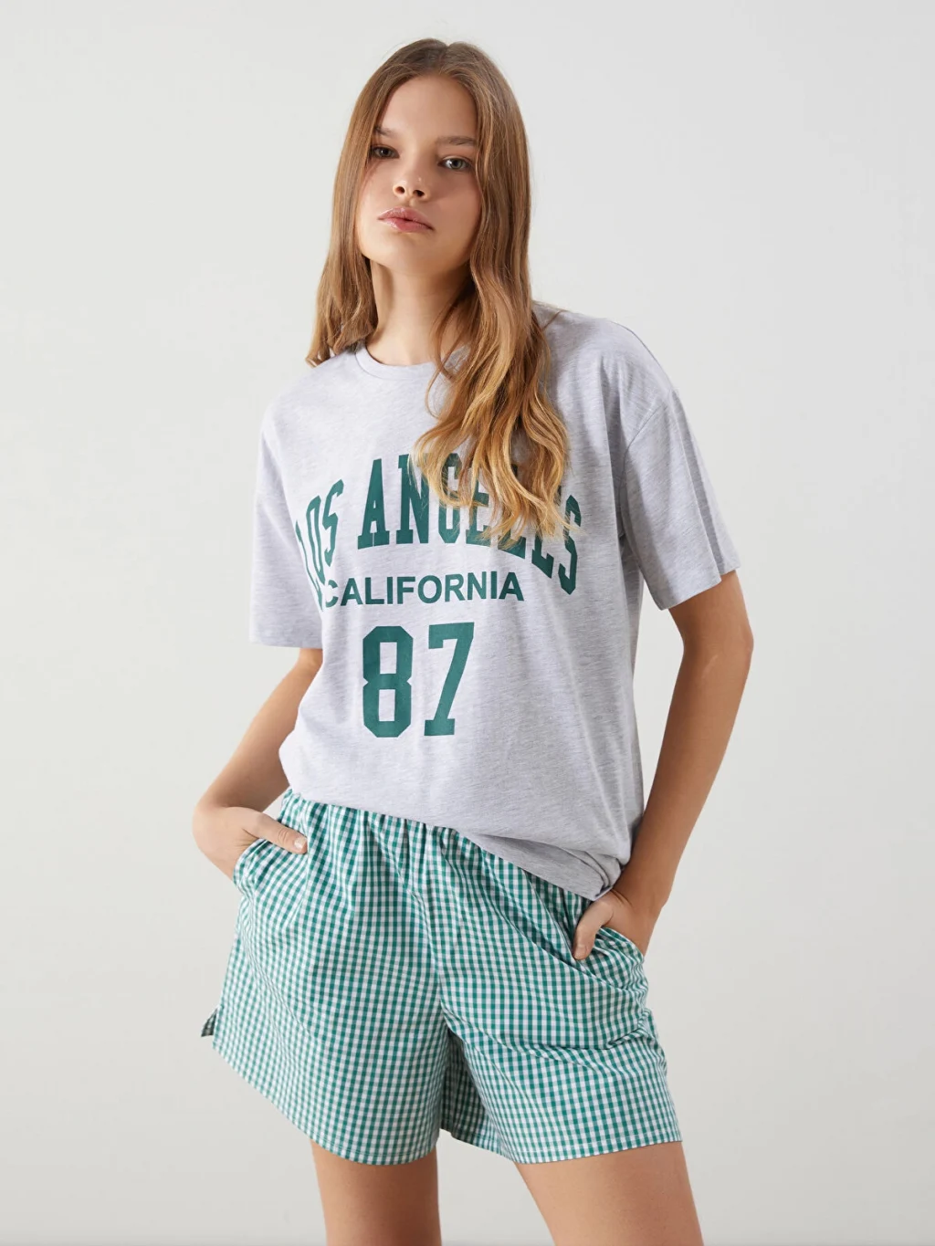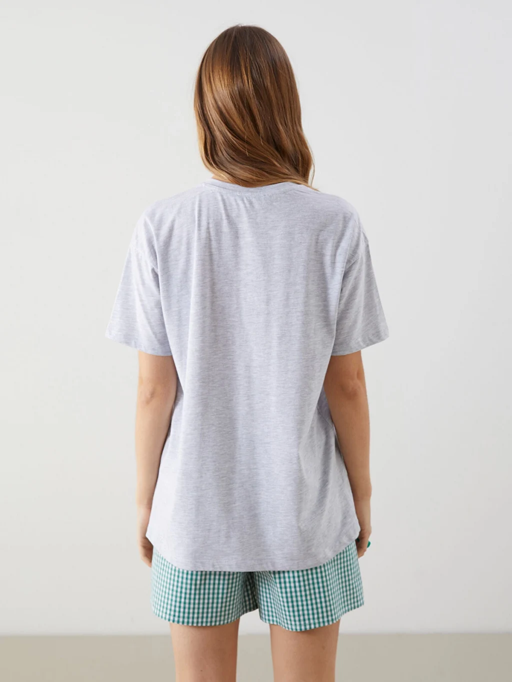 Bisiklet yaka baskılı kısa kollu tişört süprem kumaştan üretilmiştir. Hafif ve nefes alabilen yapısı ile yaz aylarında serinlik sunar.