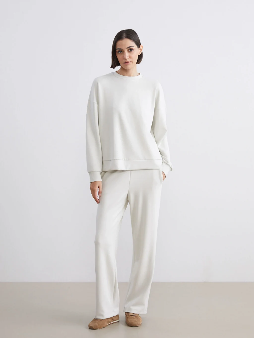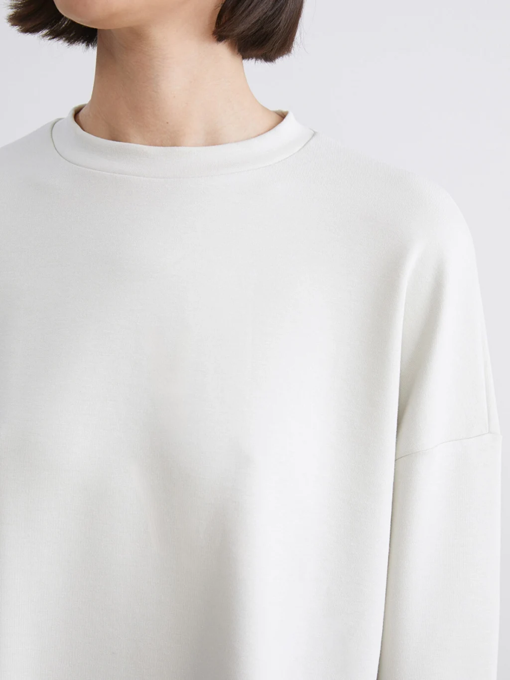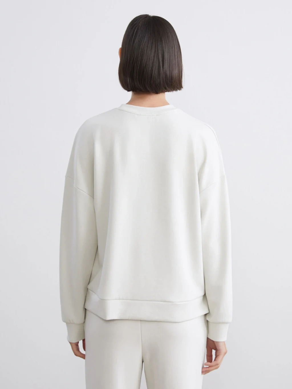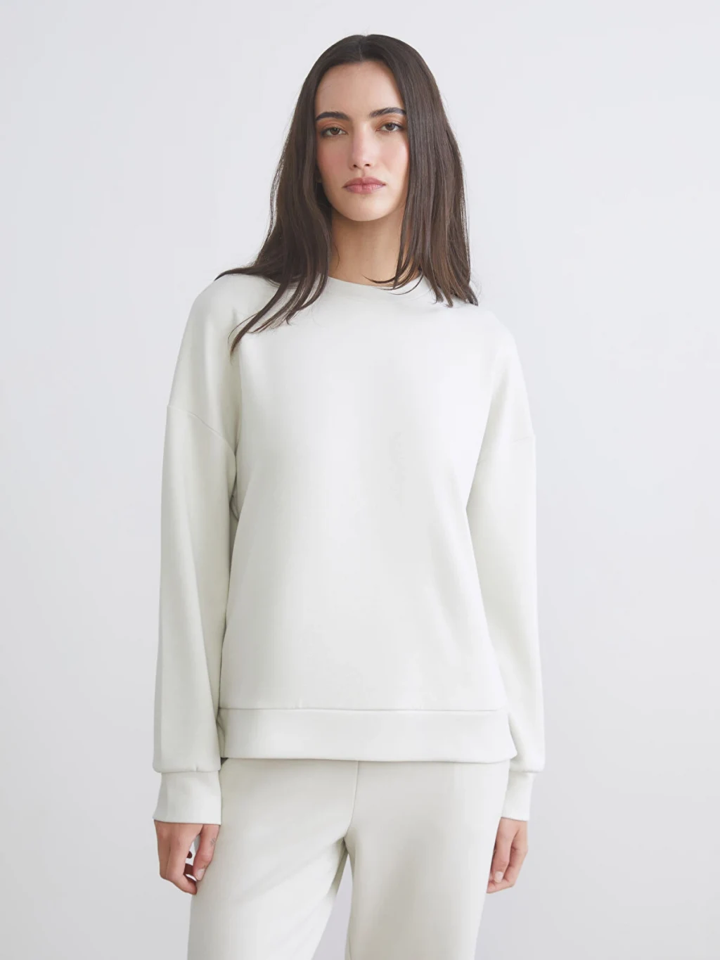 Bisiklet yaka oversize kadın sweatshirt, interlok kumaştan üretilmiştir. Bilekleri ve alt kısmı ribanalıdır.