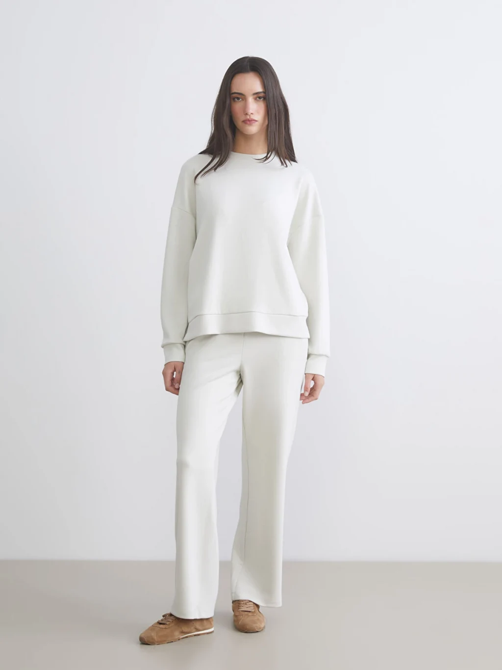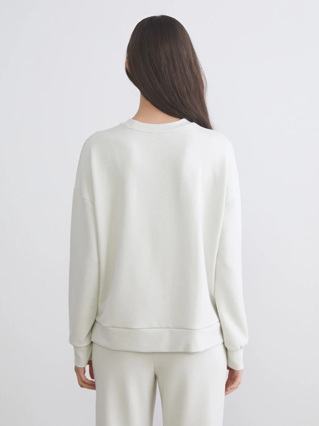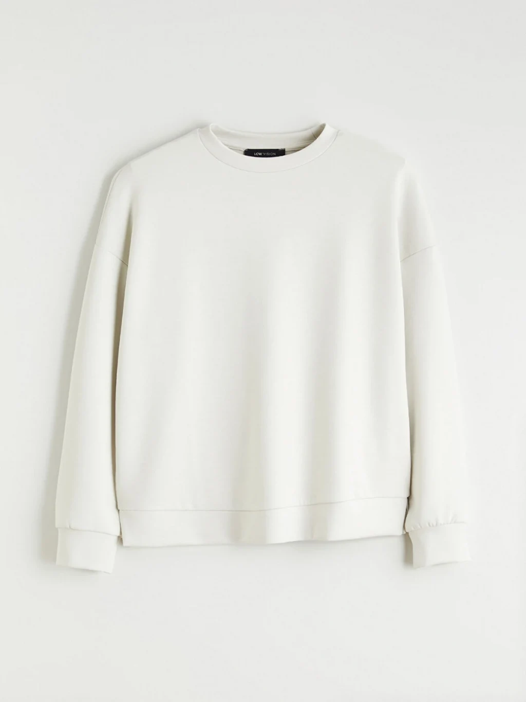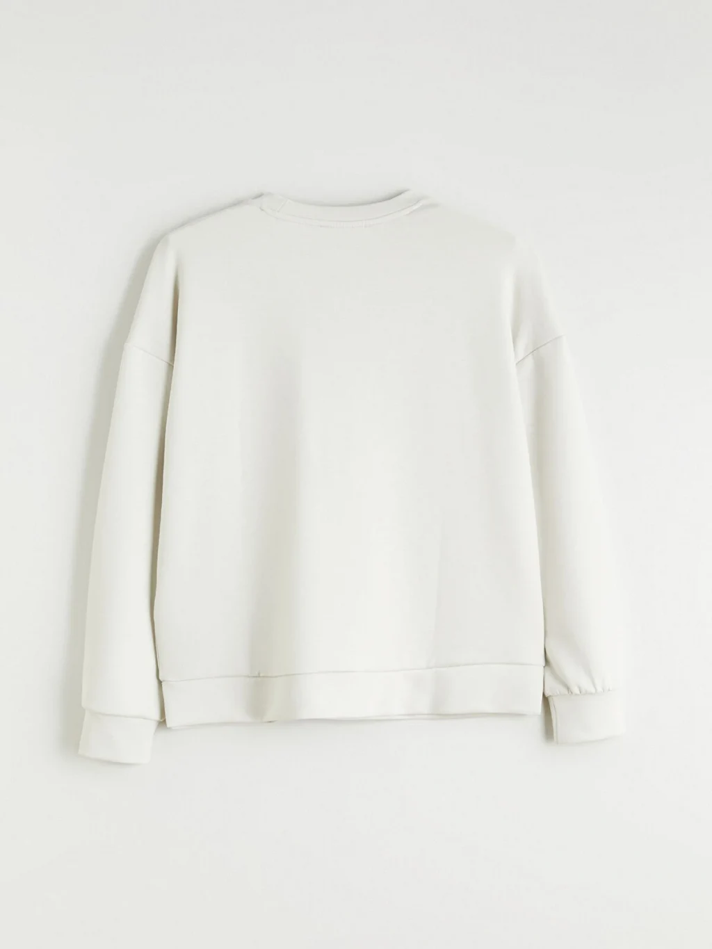 Bisiklet yaka oversize kadın sweatshirt, interlok kumaştan üretilmiştir. Bilekleri ve alt kısmı ribanalıdır.
