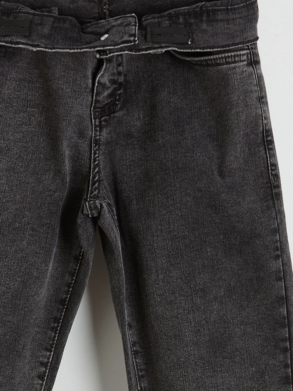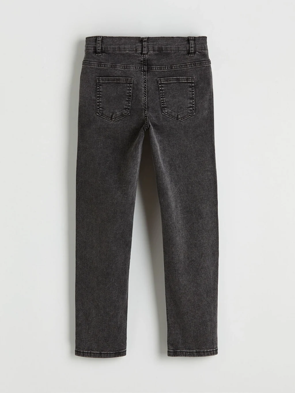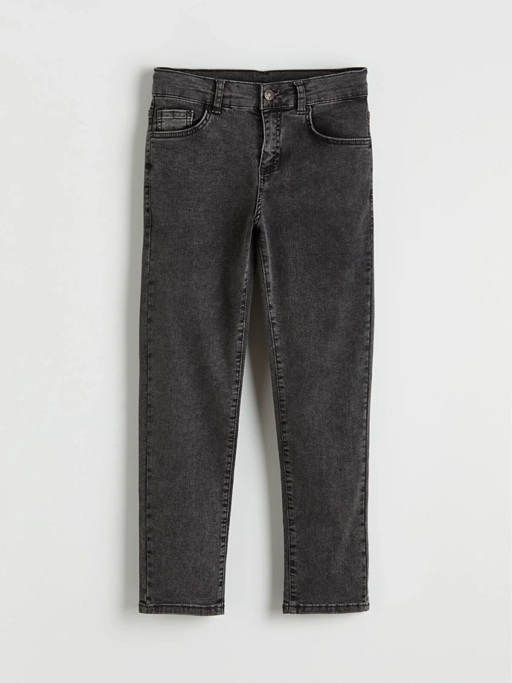 Dar kalıp kesimli erkek çocuk jean pantolon, denim kumaştan üretilmiştir. Beş cepli tasarıma sahip olup fermuar ve düğme kapamalıdır.