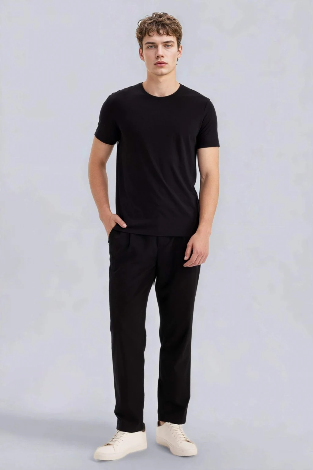 Slim Fit Dar Kesim Bisiklet Yaka Basic Düz Kısa Kollu Tişört, modern bir görünüm için ideal bir seçimdir. Dar kesimi ve sade tasarımı, şıklığı ve rahatlığı bir arada sunar, her türlü kombinle uyum sağlar.