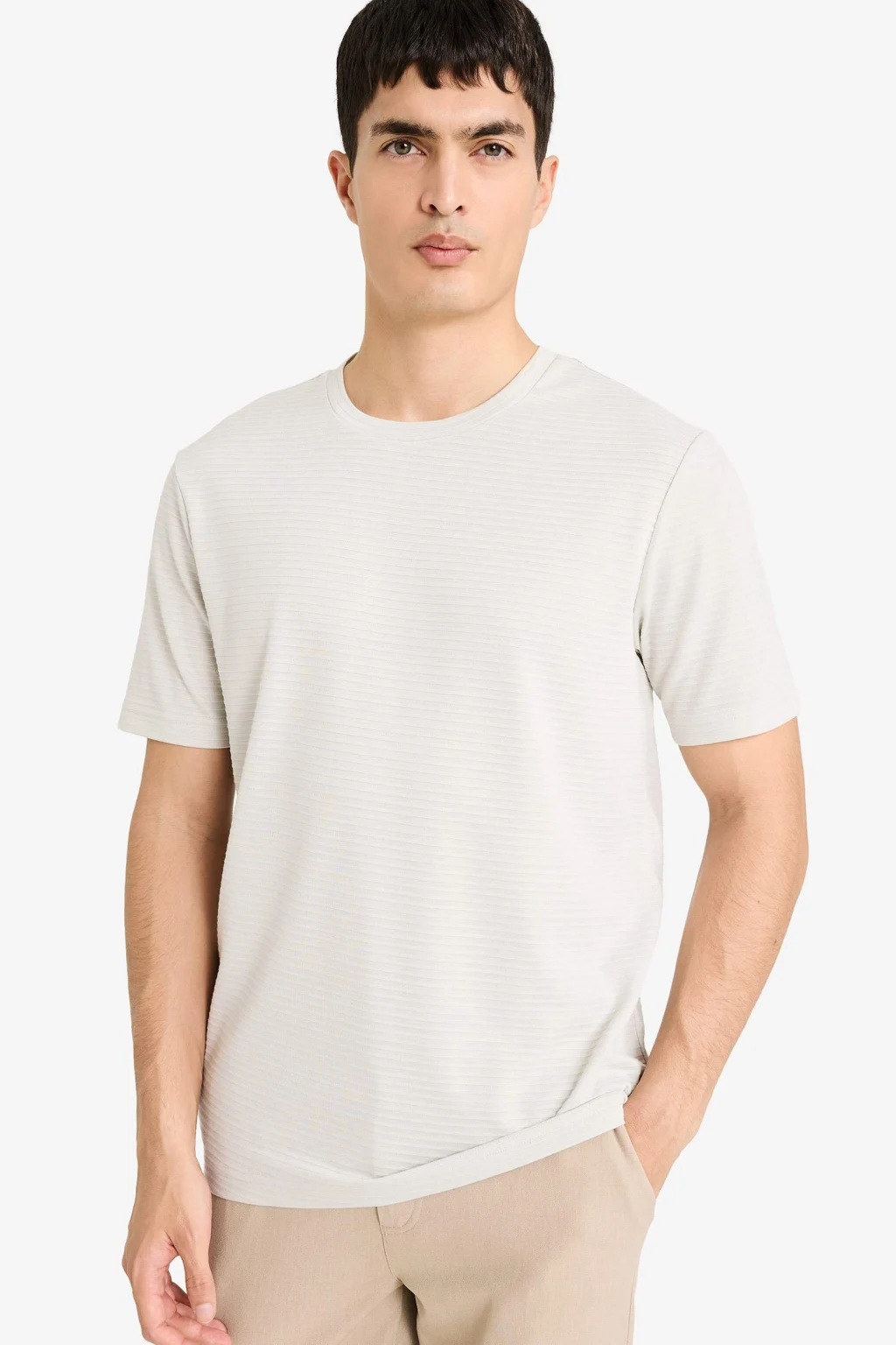 Vücut hatlarını modern ve fit bir şekilde saran Slim Fit kesimi, maskülen silüetinizi ön plana çıkarırken dinamik bir duruş sergiler. Zamansız bisiklet yaka tasarımı, yüksek kaliteli ve nefes alabilen pamuklu dokusuyla birleşerek gün boyu süren bir ferahlık sunar. Esnek yapısı sayesinde hareket özgürlüğünüzü kısıtlamazken, yumuşak tuşesi cildinizde pürüzsüz bir his bırakır. Hem tek başına hem de ceket veya gömlek içlerinde kusursuz bir katman oluşturarak stilinizi tamamlar.