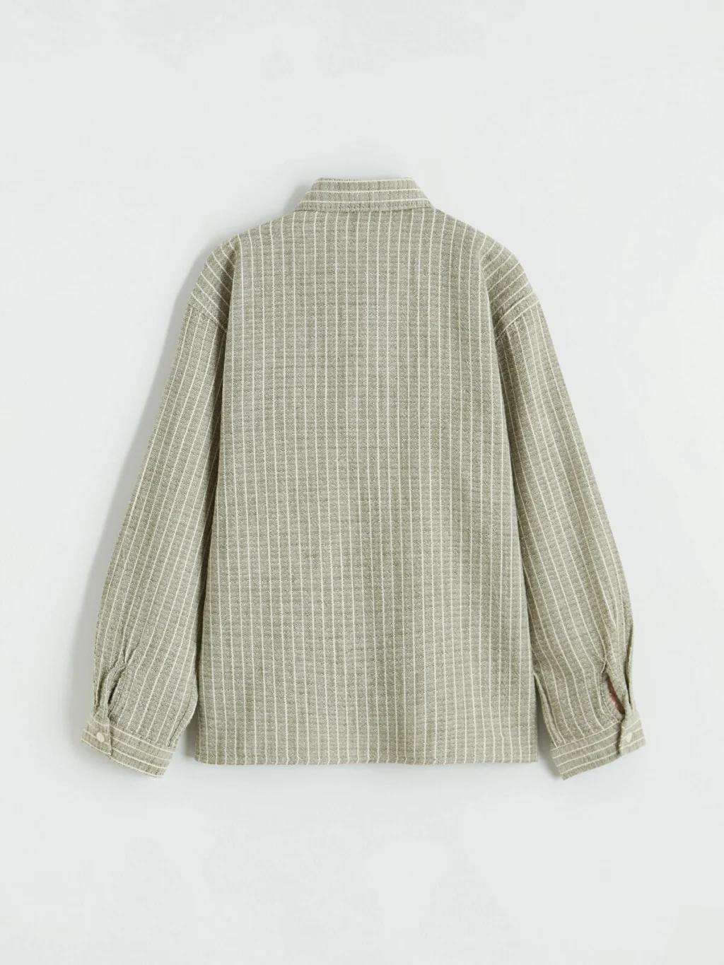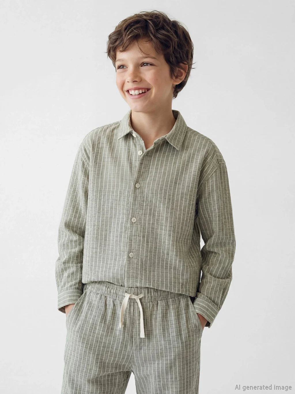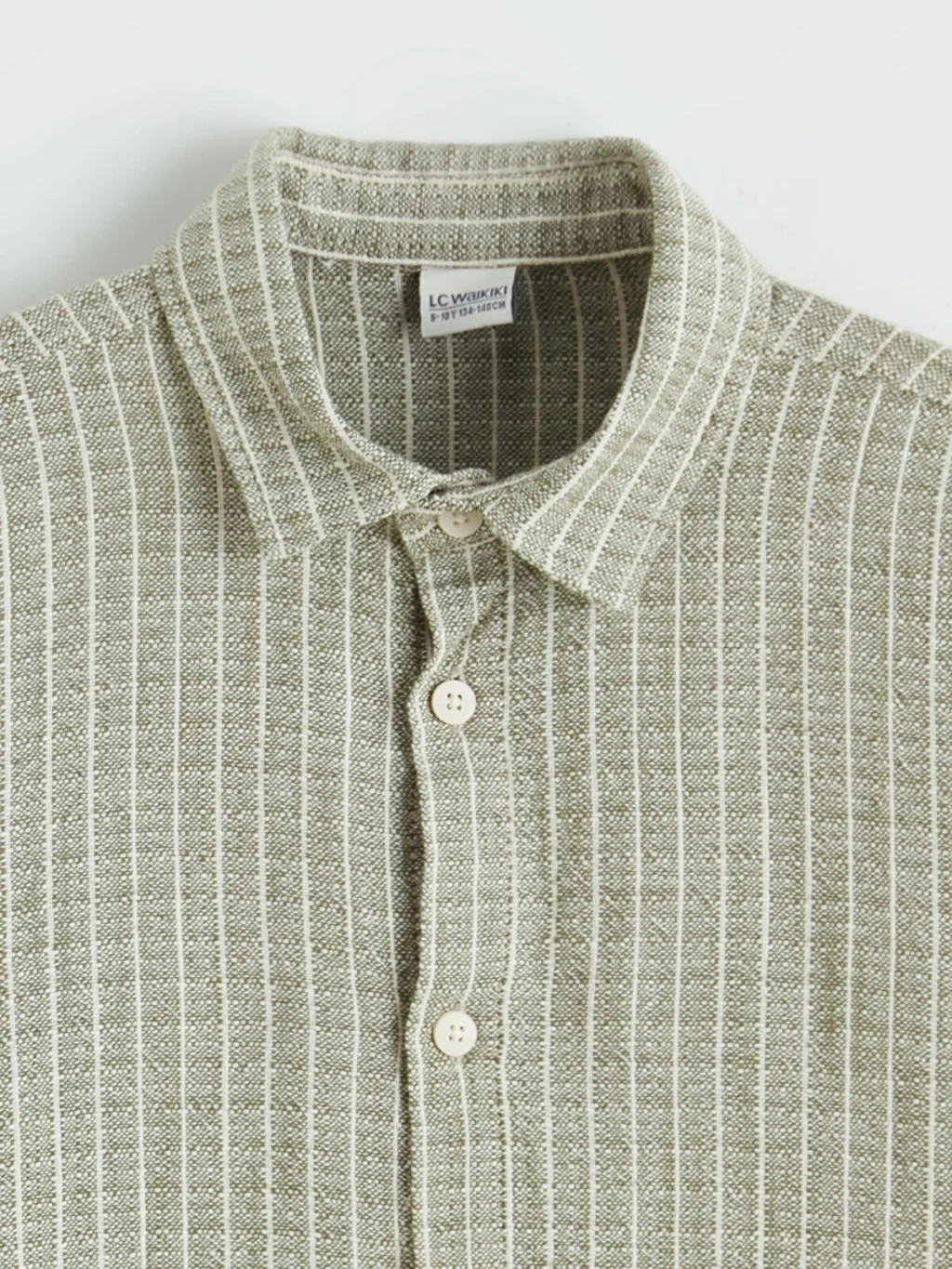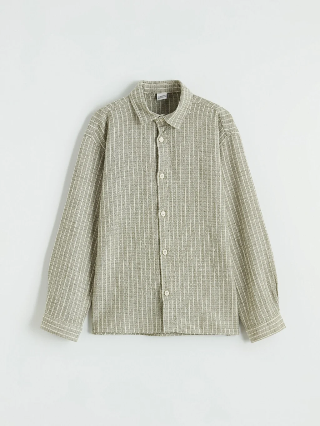 Uzun kollu ve çizgili desenli erkek çocuk gömlek, %100 pamuklu poplin kumaştan üretilmiştir ve önden düğme kapamalıdır.