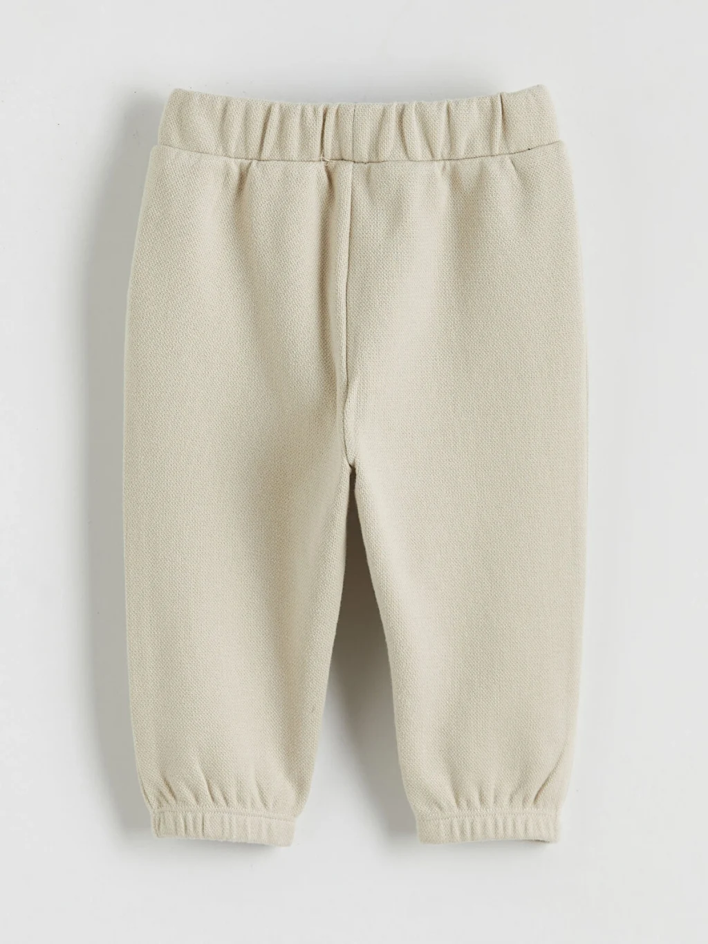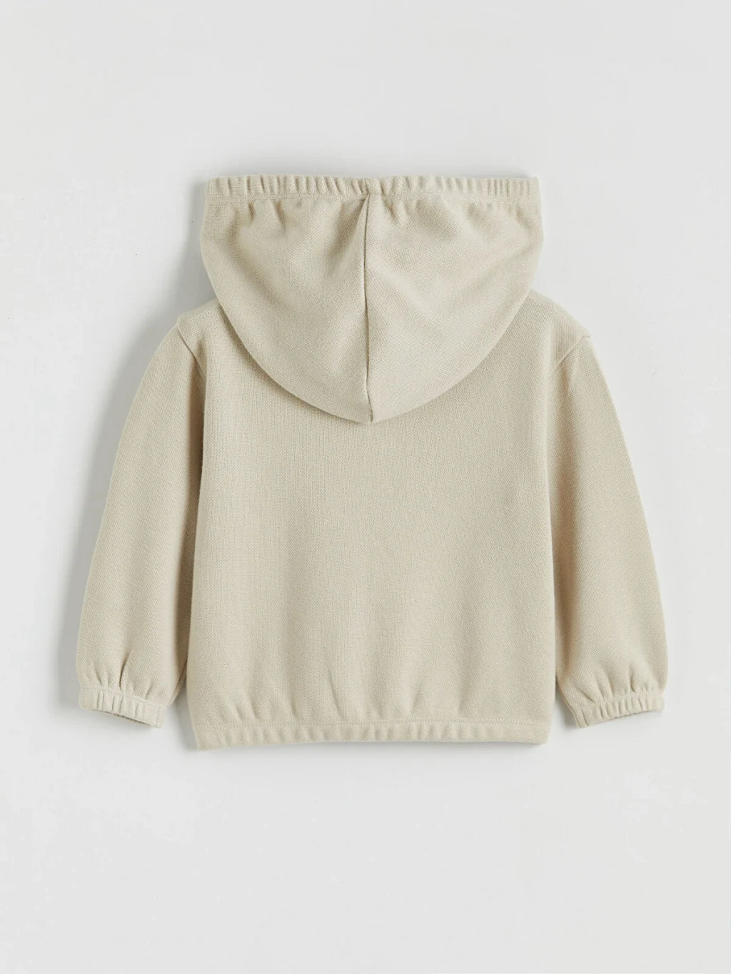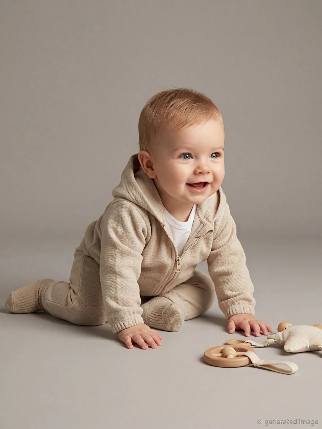 Erkek bebek eşofman takımı; kapüşonlu, fermuarlı, kol ve paça uçları lastikli sweatshirt ve eşofman altından oluşur.