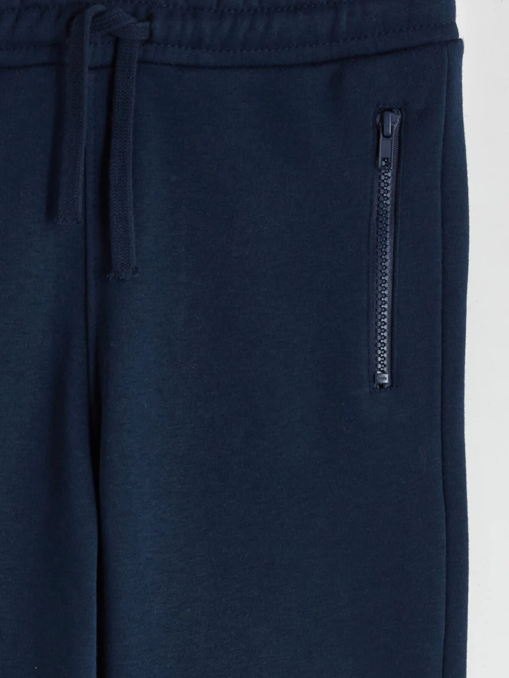 Beli lastikli ve ayarlanabilir ipli erkek çocuk eşofman altı, kalın 3 iplik şardonlu kumaştan üretilmiştir. Fermuarlı yan ceplere ve ribanalı paçalara sahiptir.