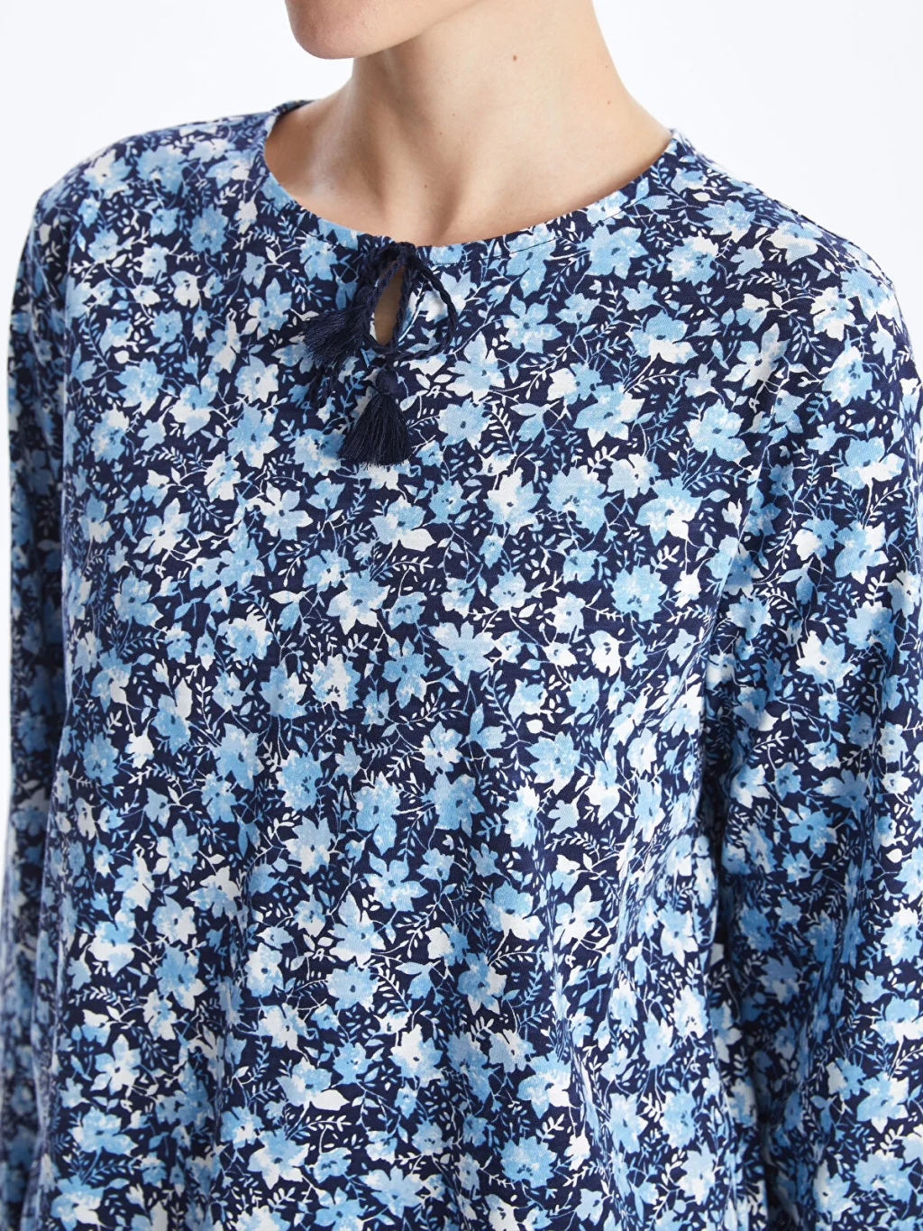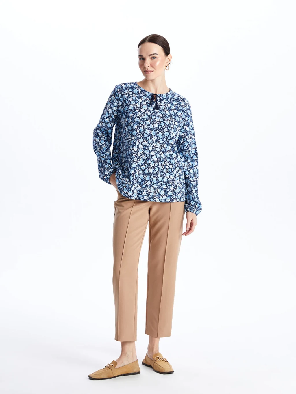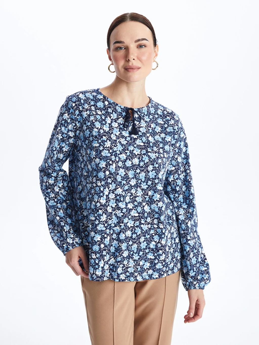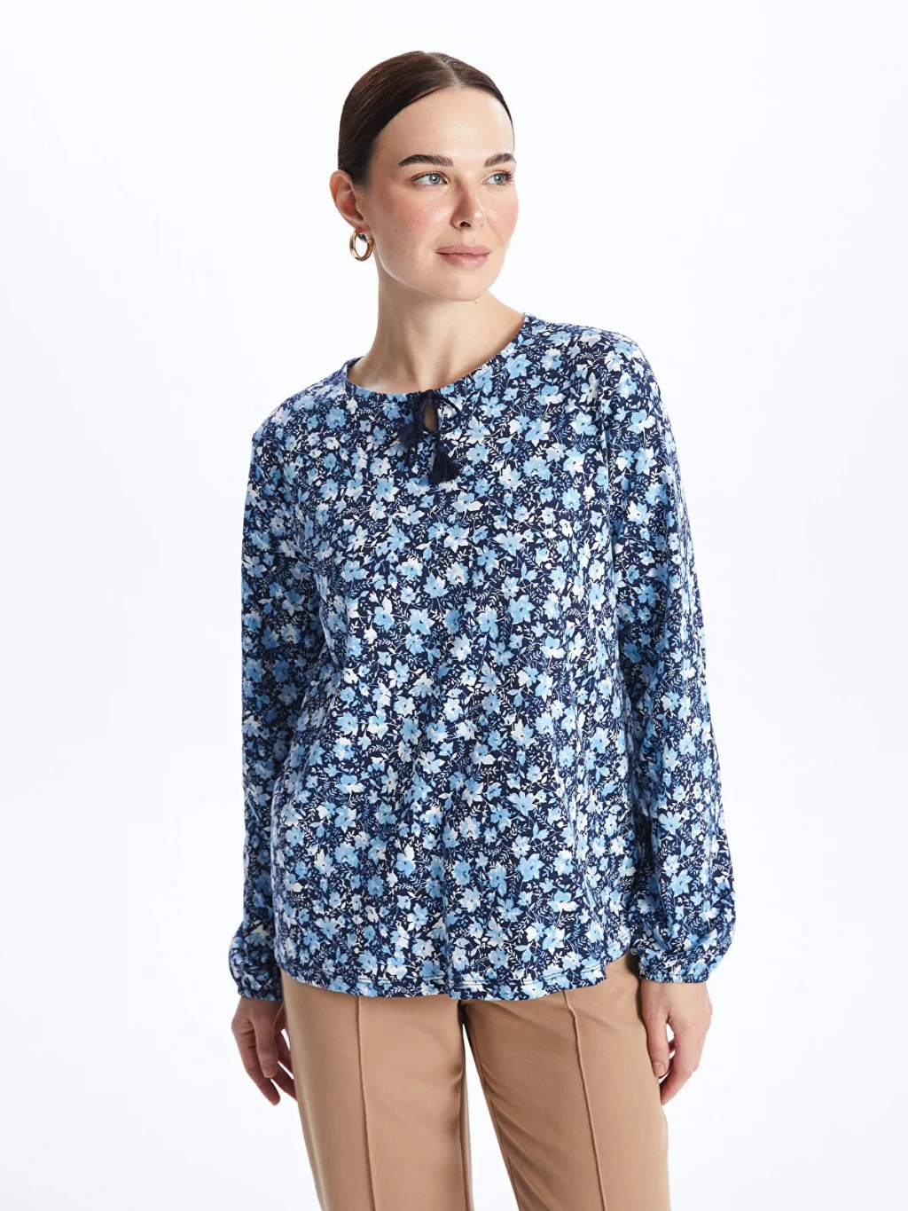 Yakası bağlama detaylı bluz, süprem kumaştan üretildiği için yumuşak bir dokuya sahiptir. Bilekleri lastikli olan tasarımı şık bir görünüm sunar. Desenli detayları ise bluza canlılık ve hareket katar.