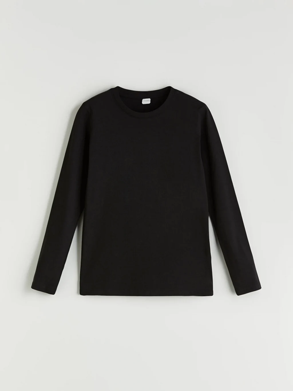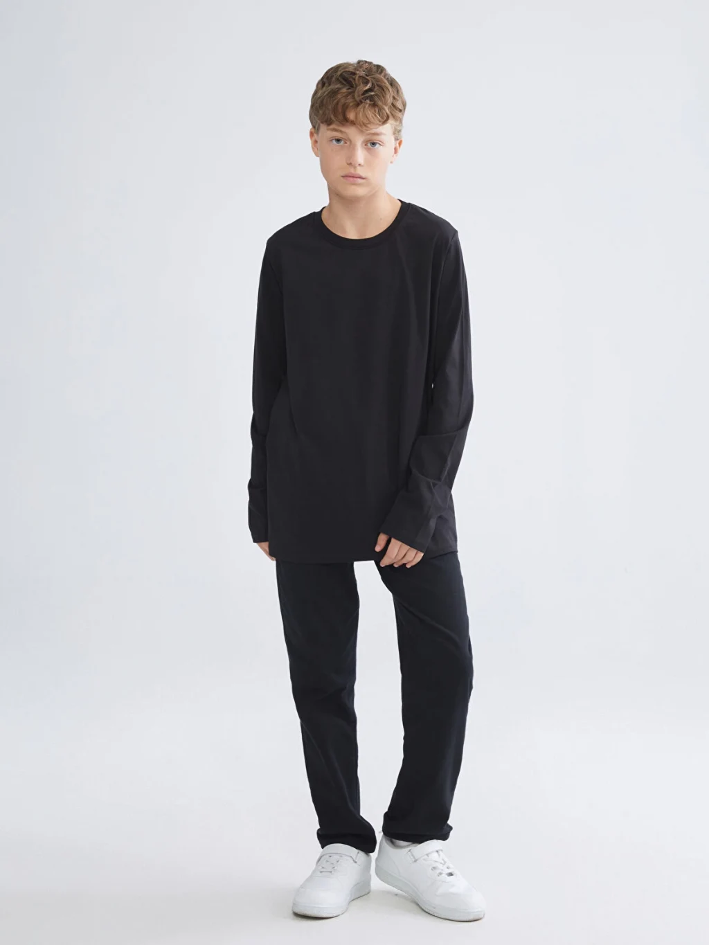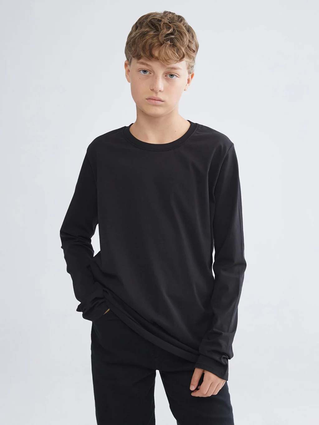 Standart kalıp, bisiklet yaka ve uzun kollu erkek çocuk tişört, %100 pamuklu penye kumaştan üretilmiştir.