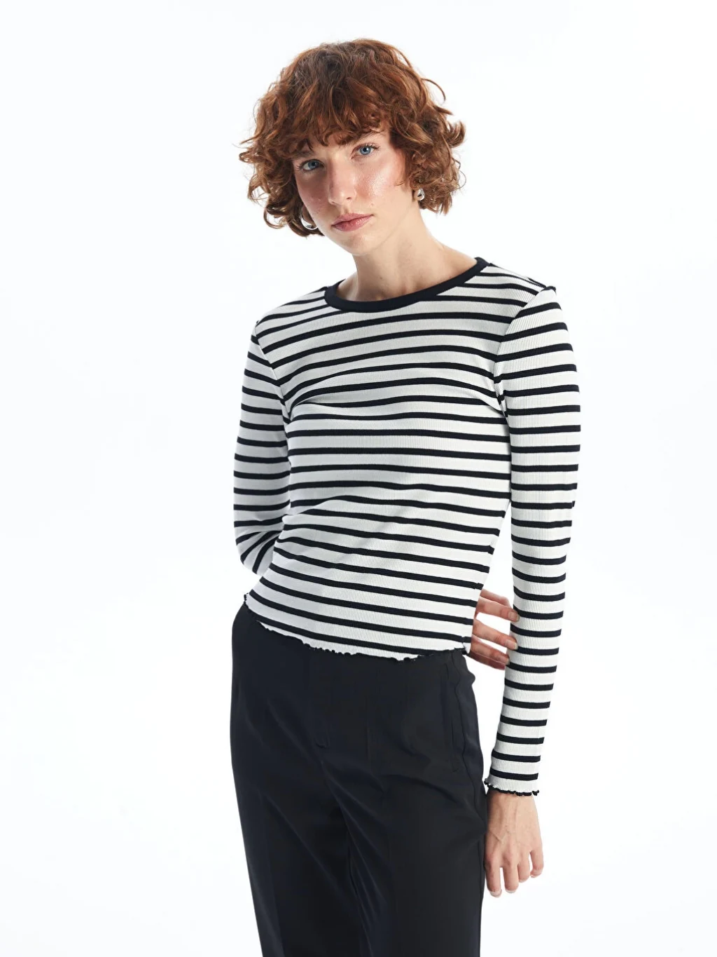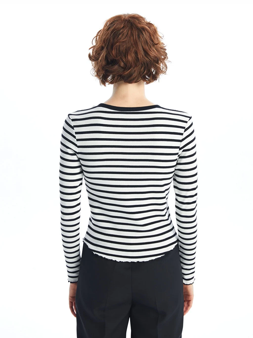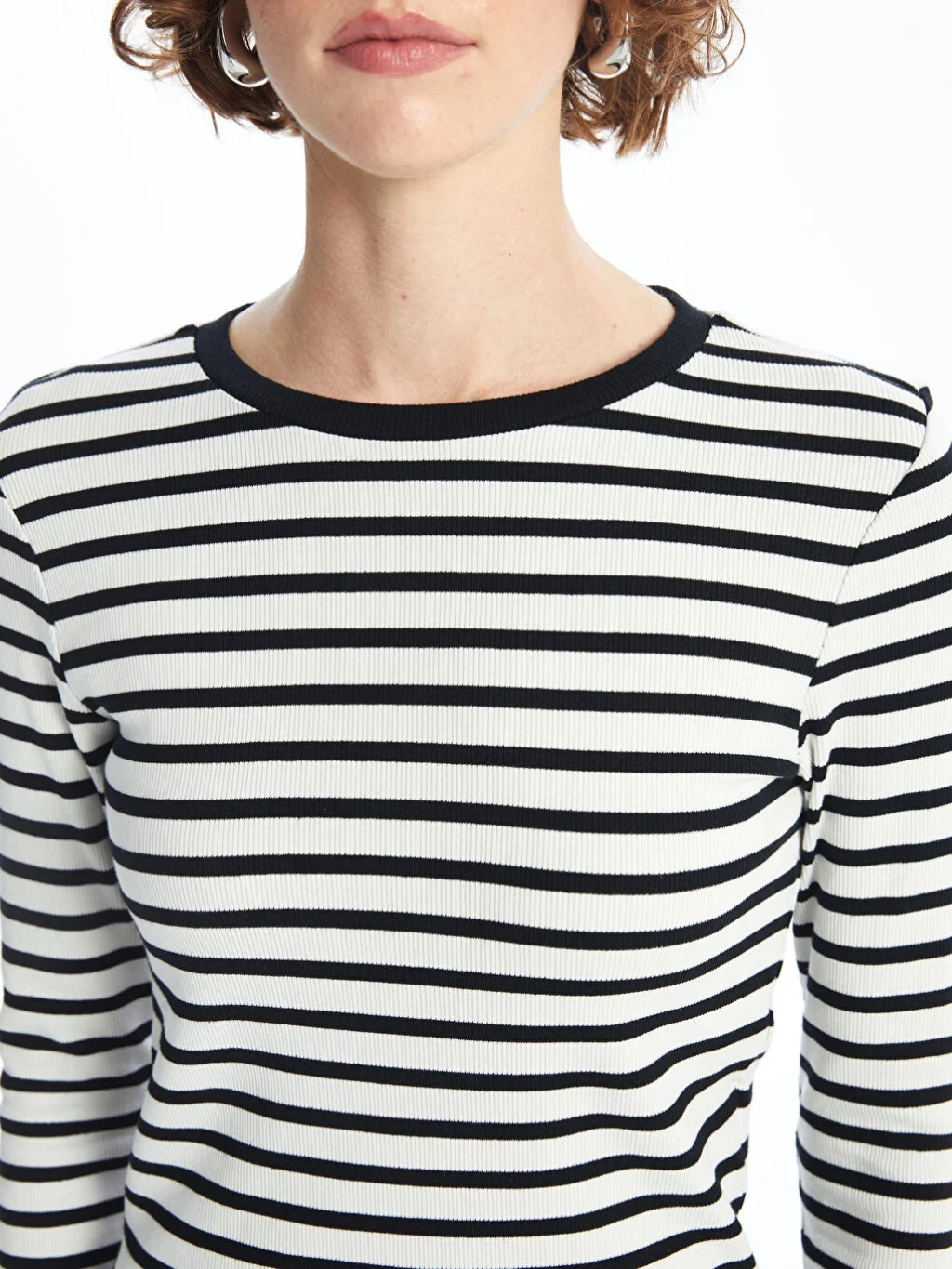 - Bisiklet yaka uzun kollu çizgili tişört, kaşkorse kumaştan üretilmiştir. Bu sayede vücuda tam oturarak mükemmel uyumlu bir görünüm sunar.