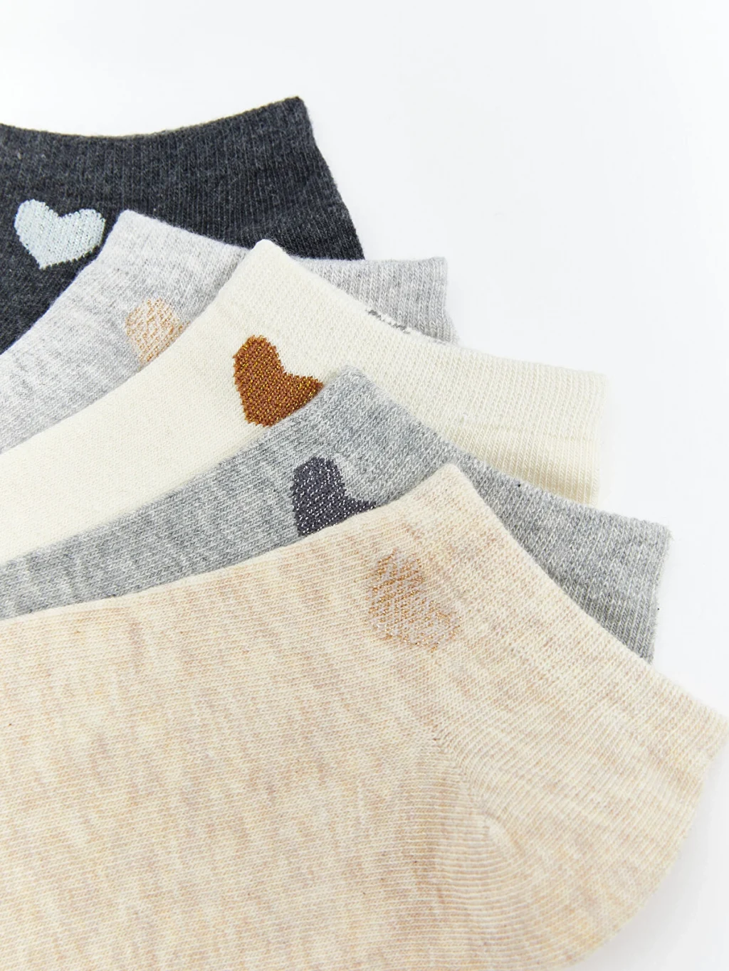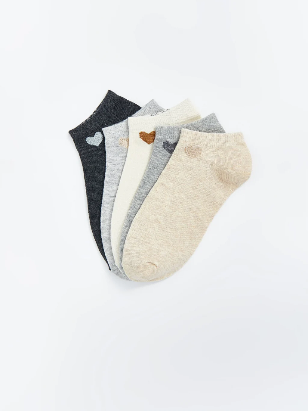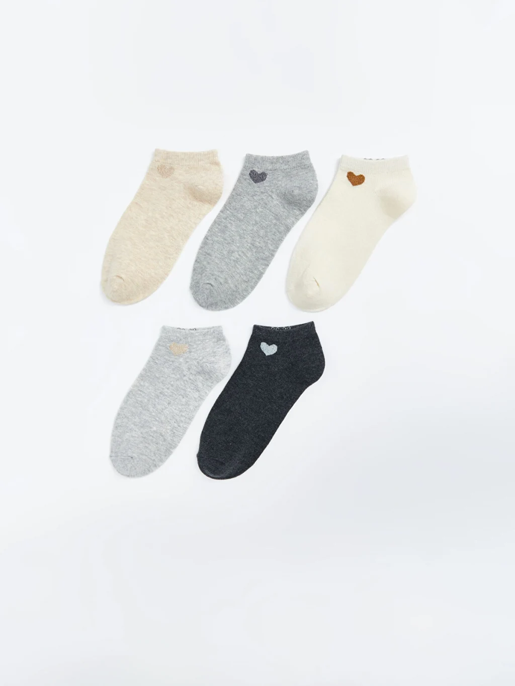 Pamuk karışımlı elyaftan üretilen patik çoraplar, yumuşak ve konforlu bir dokuya sahiptir. Kalp desenli 5 çift patik çoraptan oluşmaktadır.