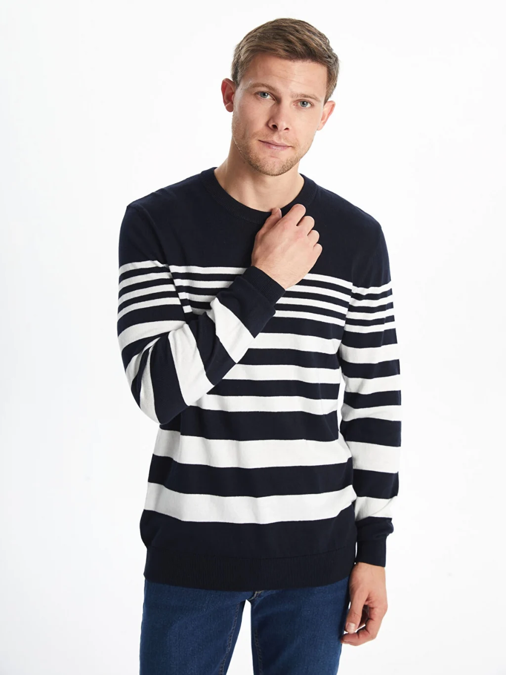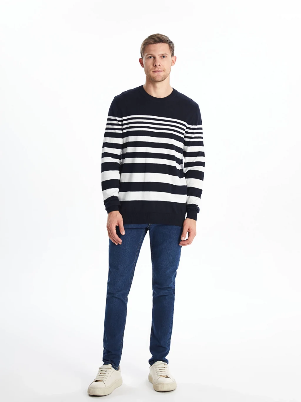 Triko kumaştan üretilen bu uzun kollu kazak, çizgili deseniyle modern bir görünüm sunuyor. Hem rahat hem de şık bir seçenek olan bu kazak, soğuk günlerde sizi sıcak tutacak.