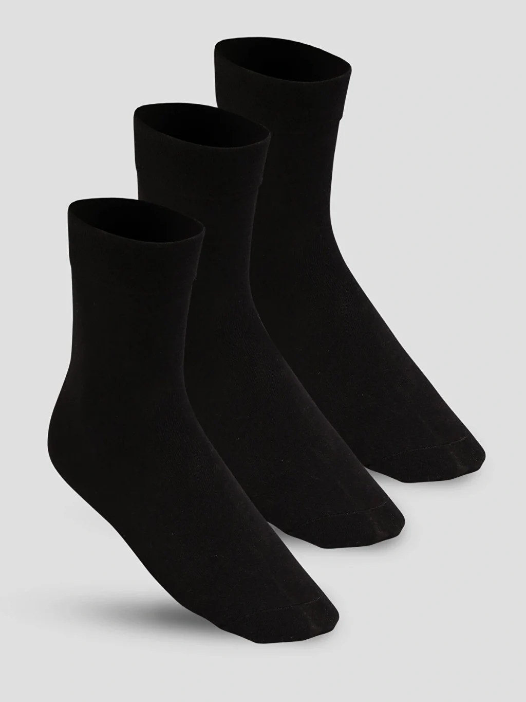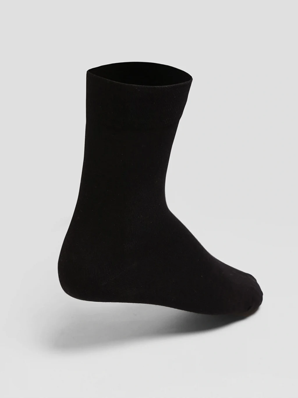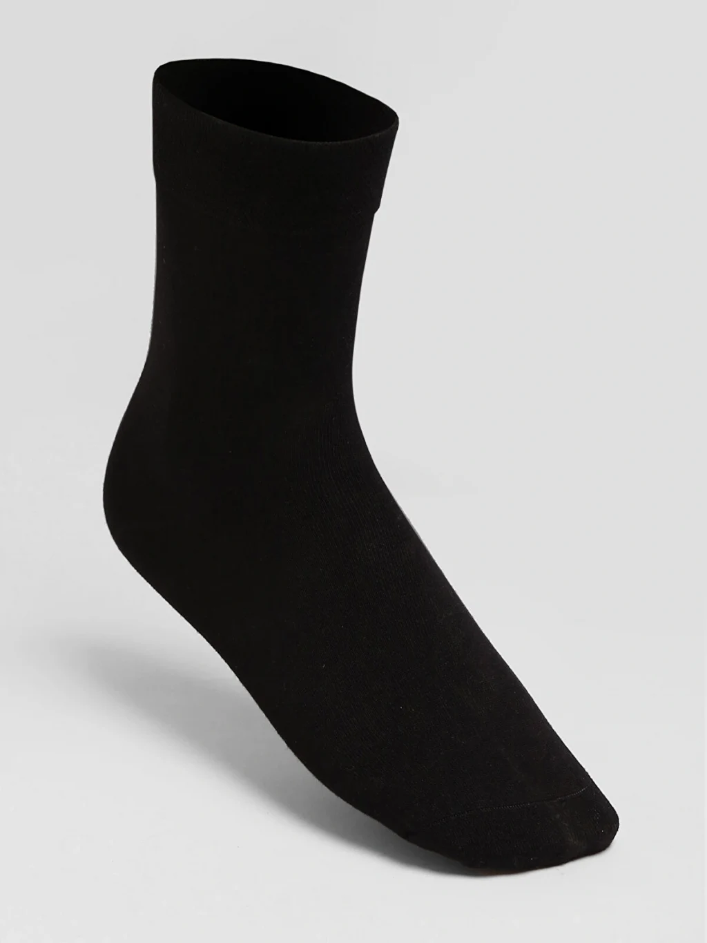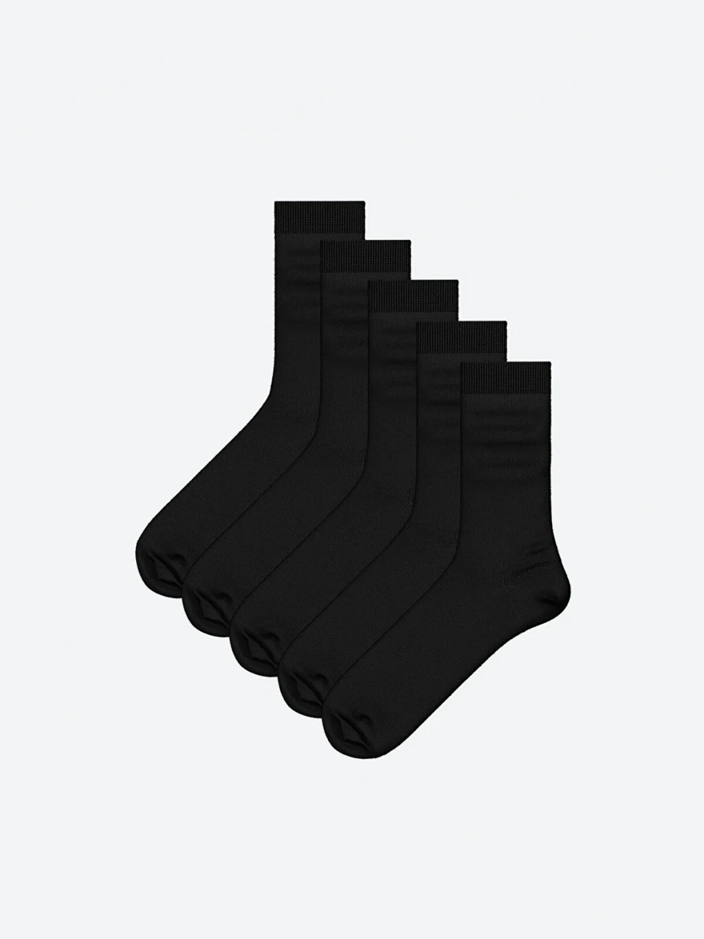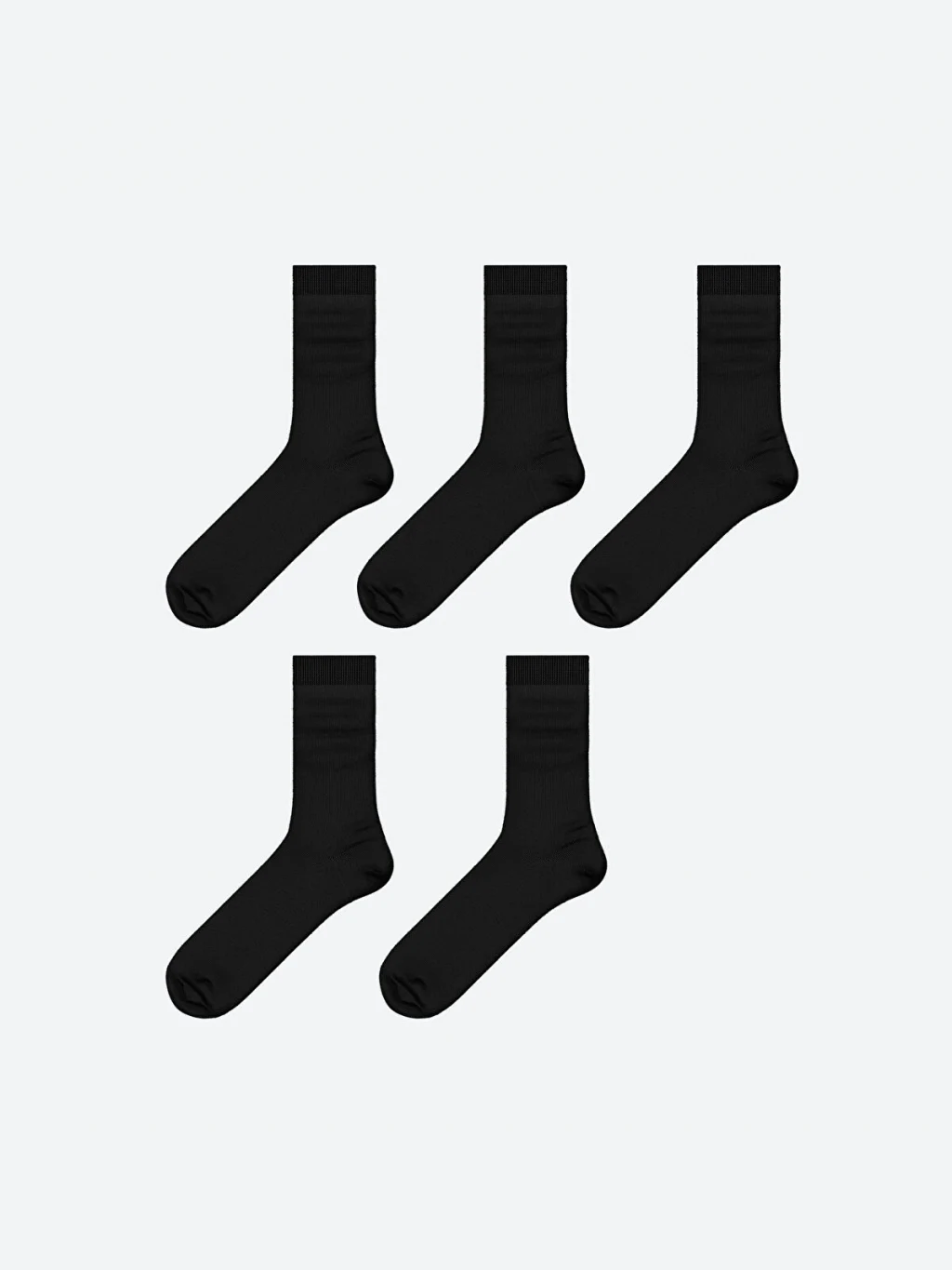 Düz desene sahip erkek soket çorap seti beş çiftten oluşur ve bilek kısmı ribana detaylıdır.