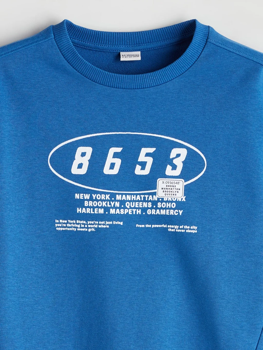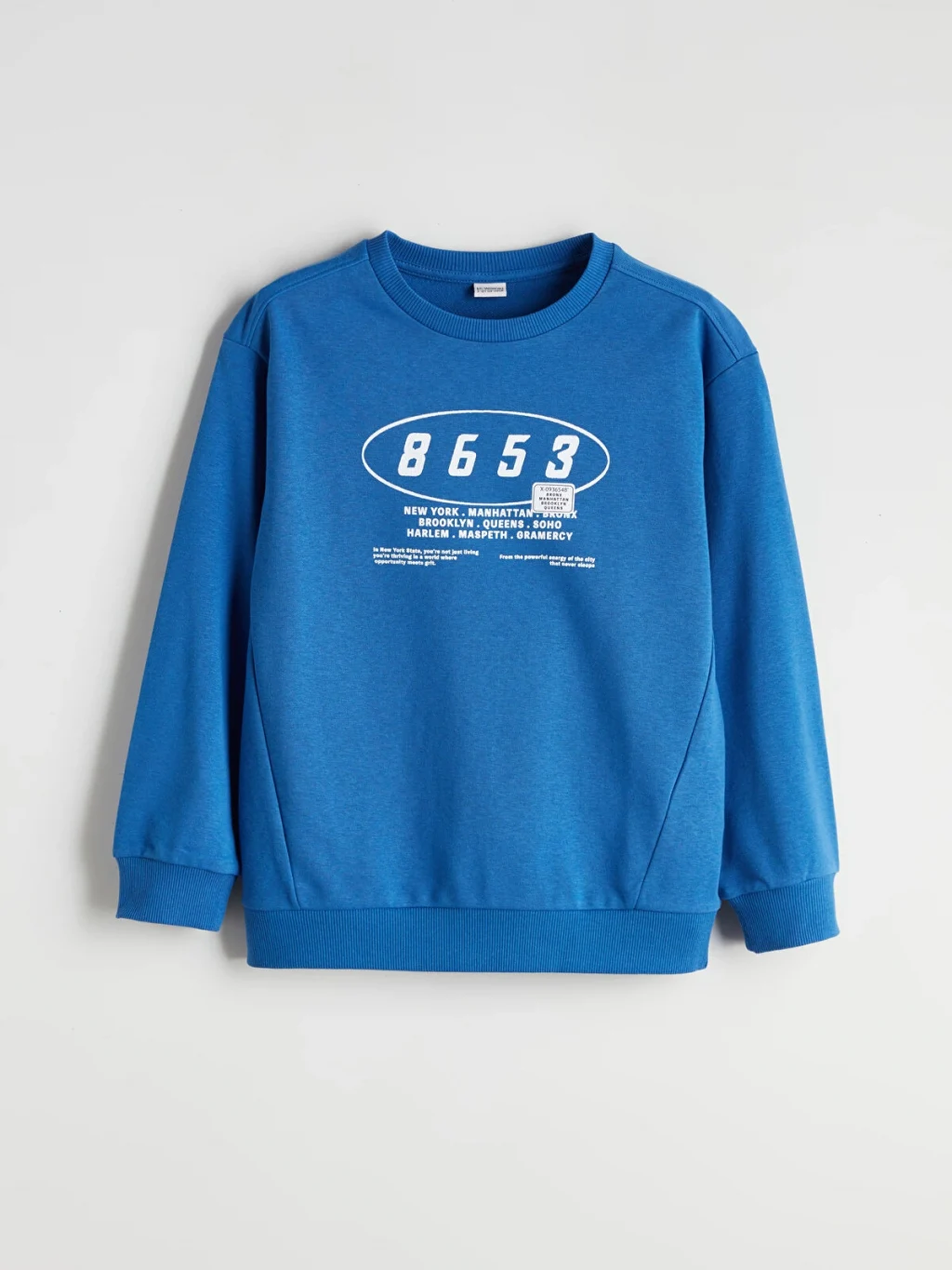 Bisiklet yaka, uzun kollu erkek çocuk sweatshirt, 3 iplik kumaştan üretilmiştir.Kol ve etek ucu ribanalıdır.