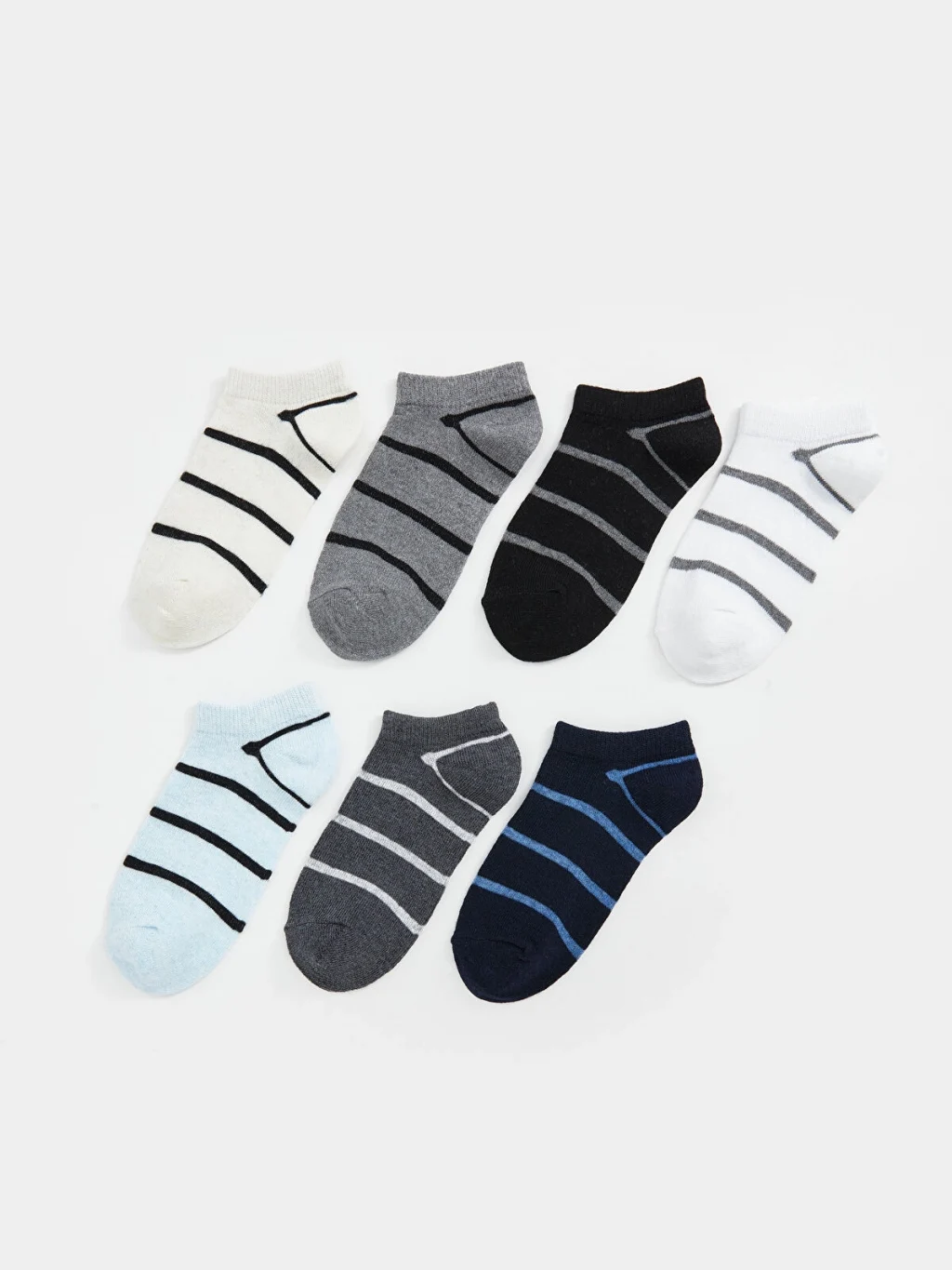 Erkek çocuk için üretilmiş, yedi çiftten oluşan çoklu paket, çizgili desene sahip patik çoraplardan oluşur.