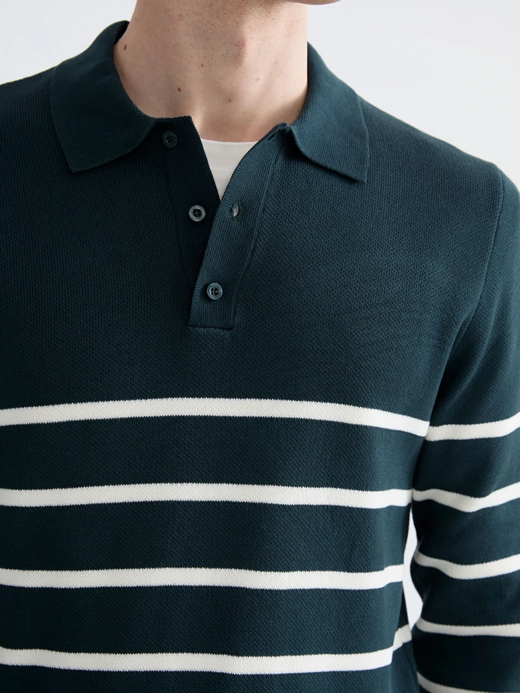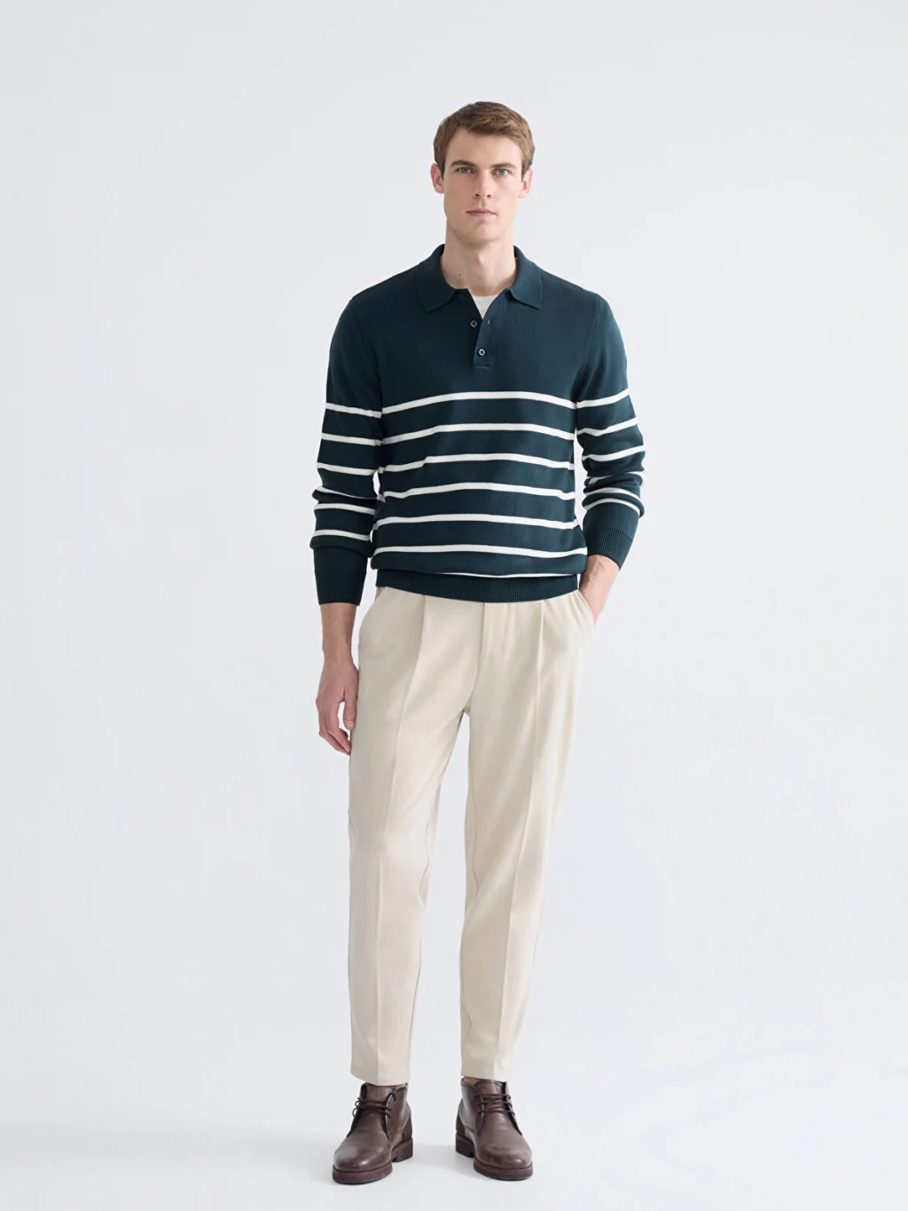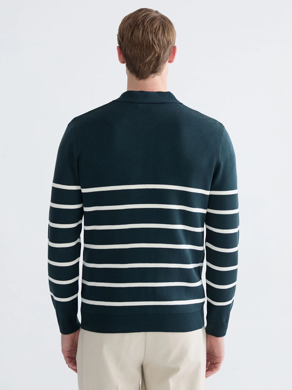 SOUTHBLUE Yeşil Polo Yaka Çizgili Erkek Triko Kazak