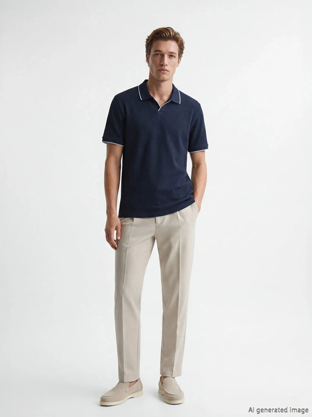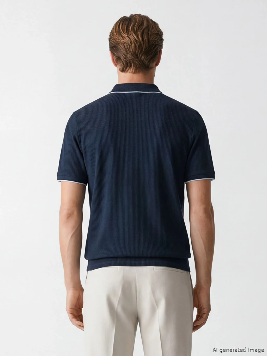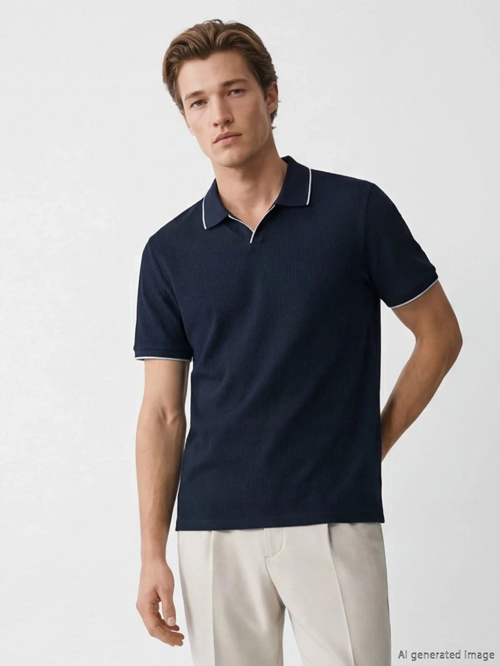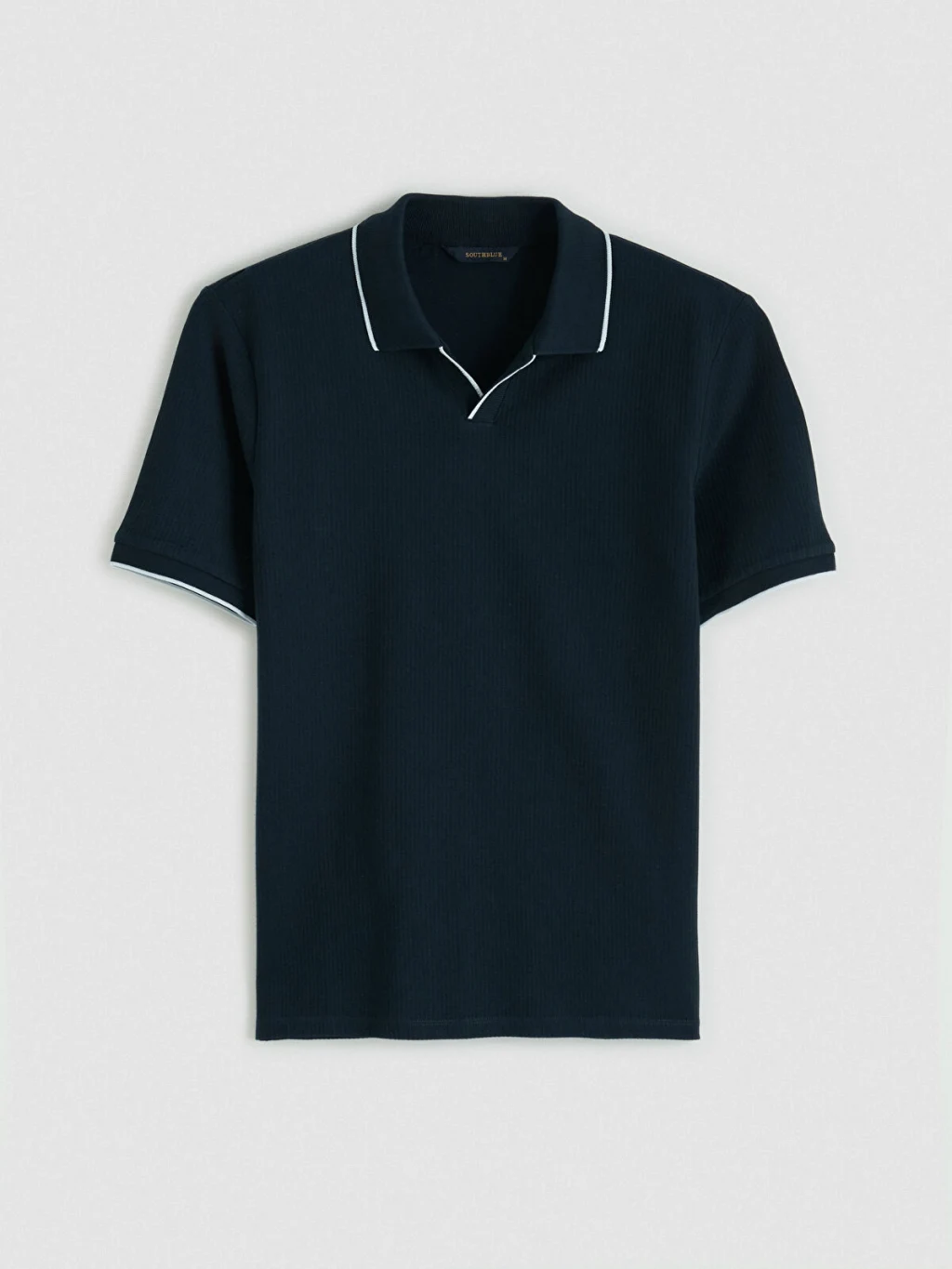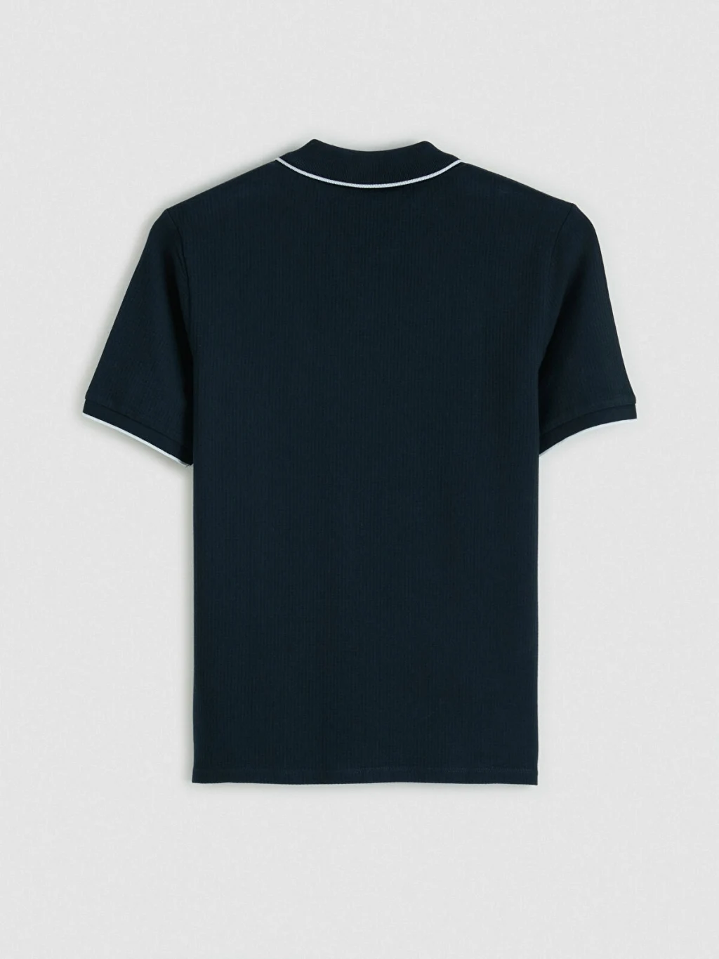 Polo yakalı ve kısa kollu erkek tişört, strüktürlü kumaştan üretilmiştir. Standart kalıba sahiptir.