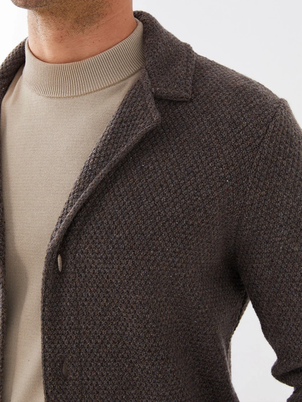 Ceket yaka tasarımı ve triko kumaşın konforunu bir araya getiren bu hırka, şıklığı ve sıcaklığı bir arada sunar. Kendinden desenli dokusuyla dikkat çeken bu hırka, göz alıcı bir görünüm oluştururken giyim konforunu da garanti eder.