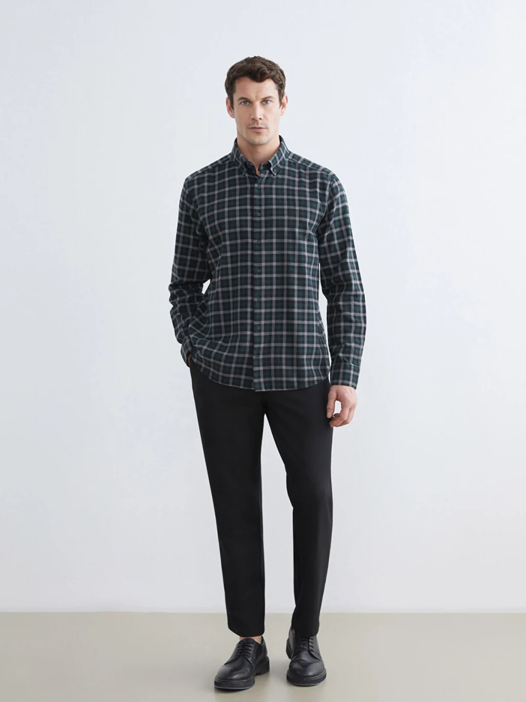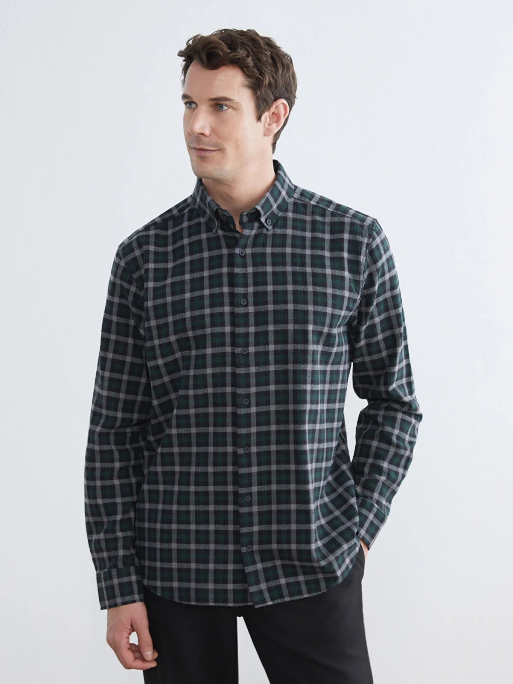 Kareli desenli erkek gömlek, yüksek pamuk içerikli flanel kumaştan üretilmiştir. Uzun kollu, button-down yakalı ve önden düğme kapamalıdır.