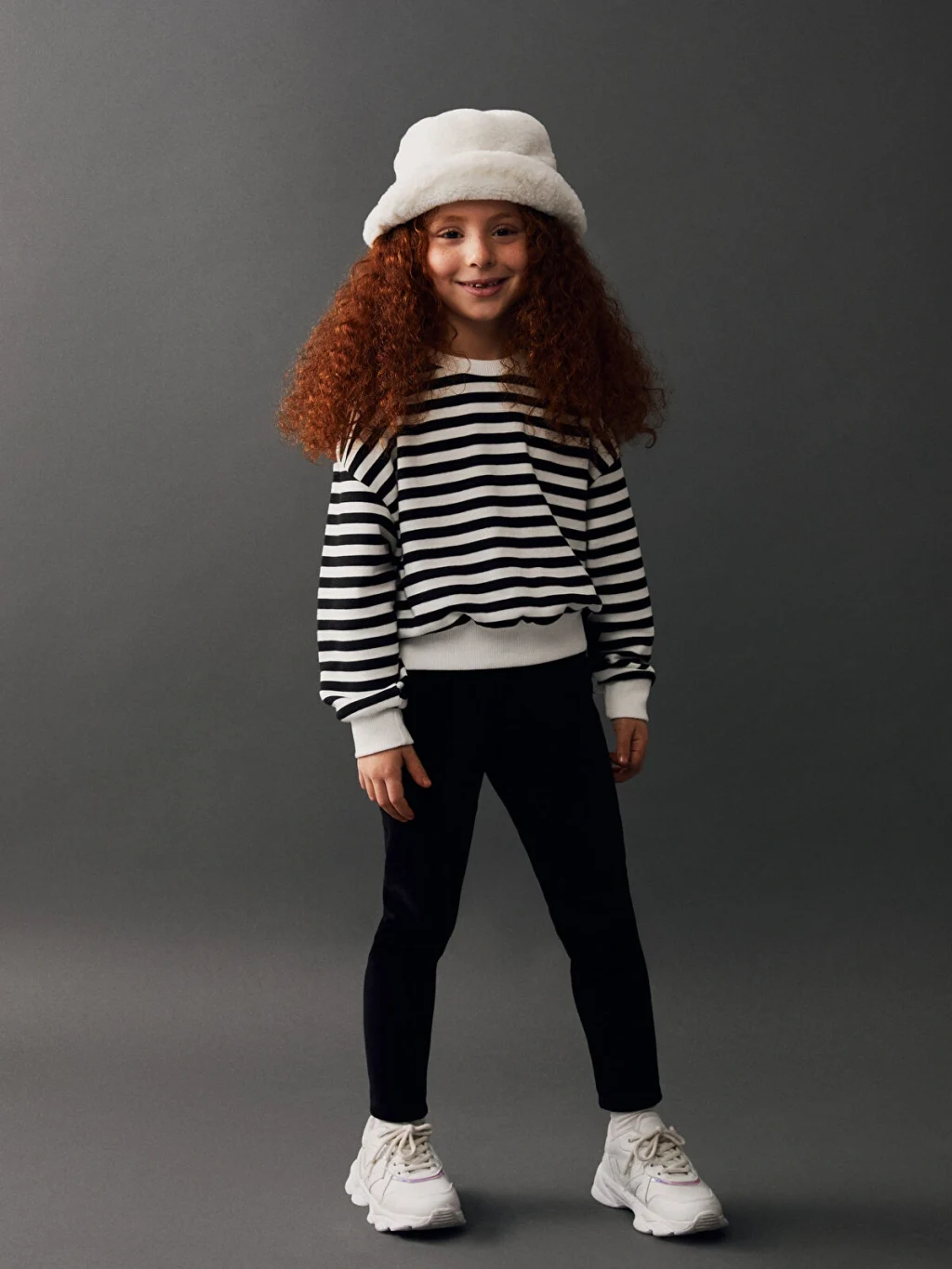 Pamuk karışımlı kadife dokusuyla yumuşak ve konforlu bu kız çocuk tayt, beli lastikli tasarımıyla mükemmel bir uyum sağlar. Hem rahatlık, hem de şıklık için ideal seçim