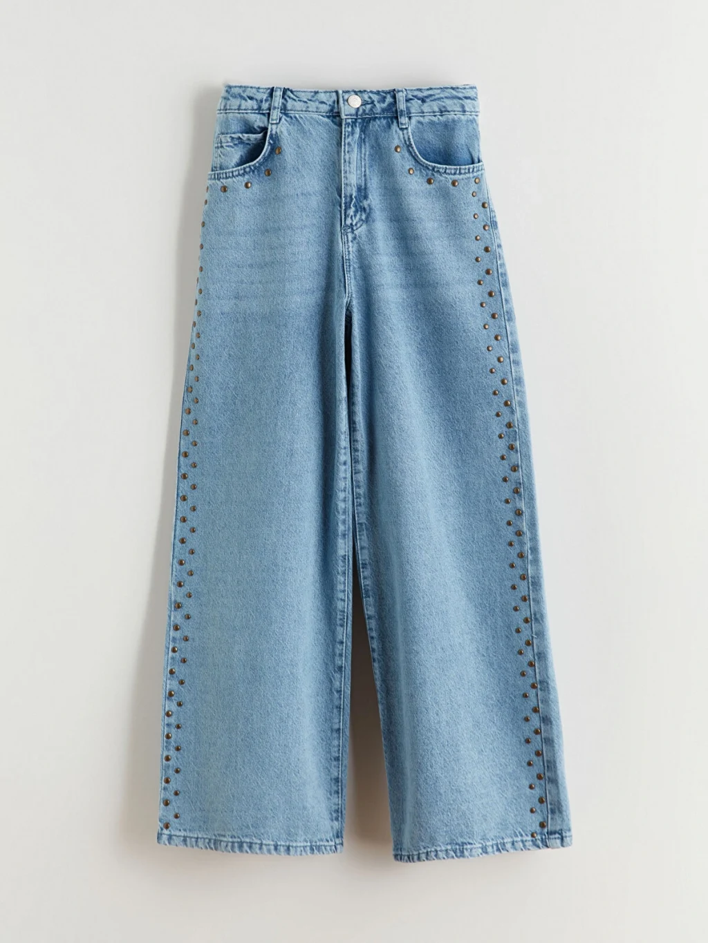 Menşei: Türkiye Ürün Tipi: Jean Pantolon Kalıp: Wideleg Kumaş: Denim Bel Fiti: Beli Lastikli Desen: Taşlı Paça Fiti: Geniş Paça Kalınlık: Orta Kalınlık