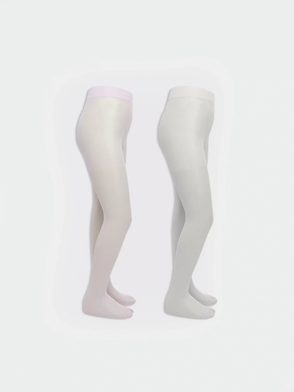 Kız çocuk 2'li külotlu çorap seti, düzdür ve elastik bel bandına sahiptir.