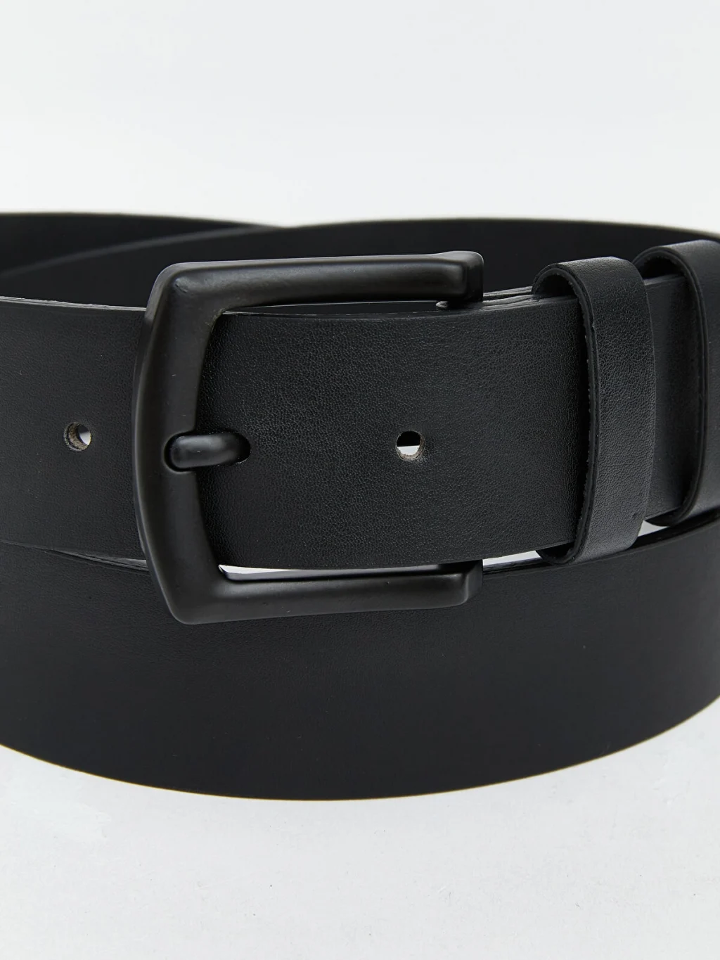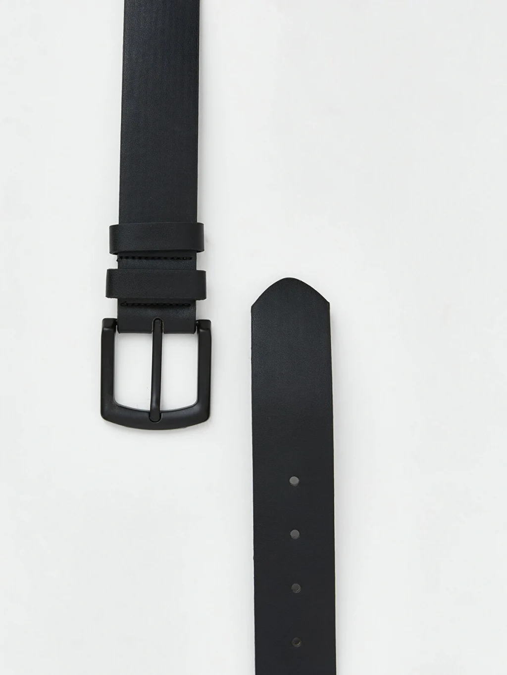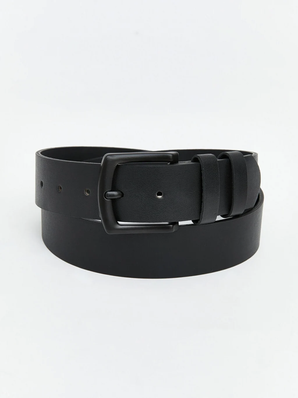 Çift yönlü erkek kemer deri görünümlü yüzeye sahiptir, metal toka detaylıdır. Ayarlanabilir yapısıyla farklı bedenlere uyum sağlar.