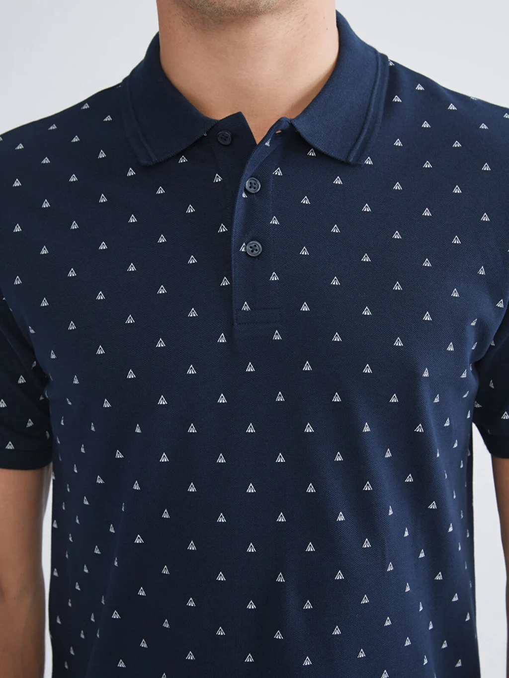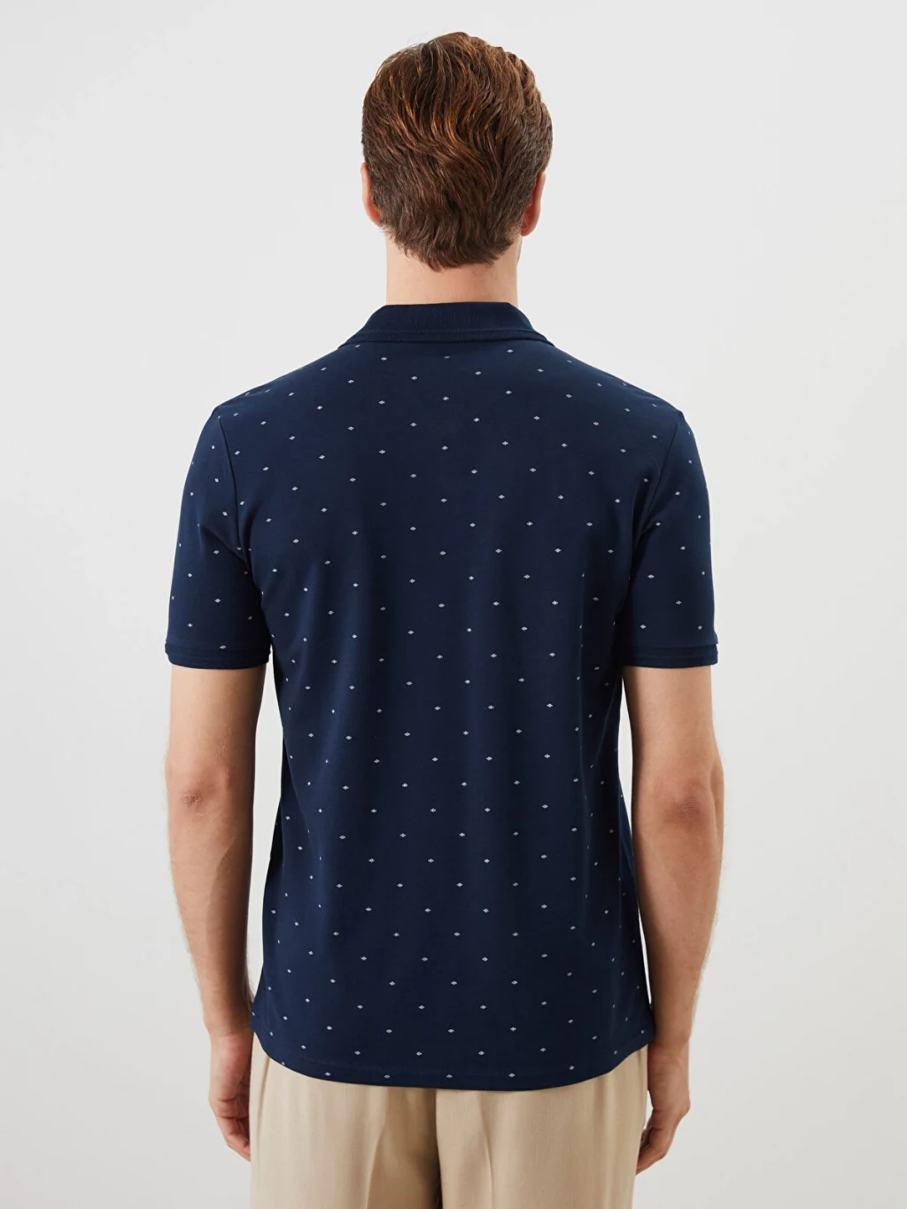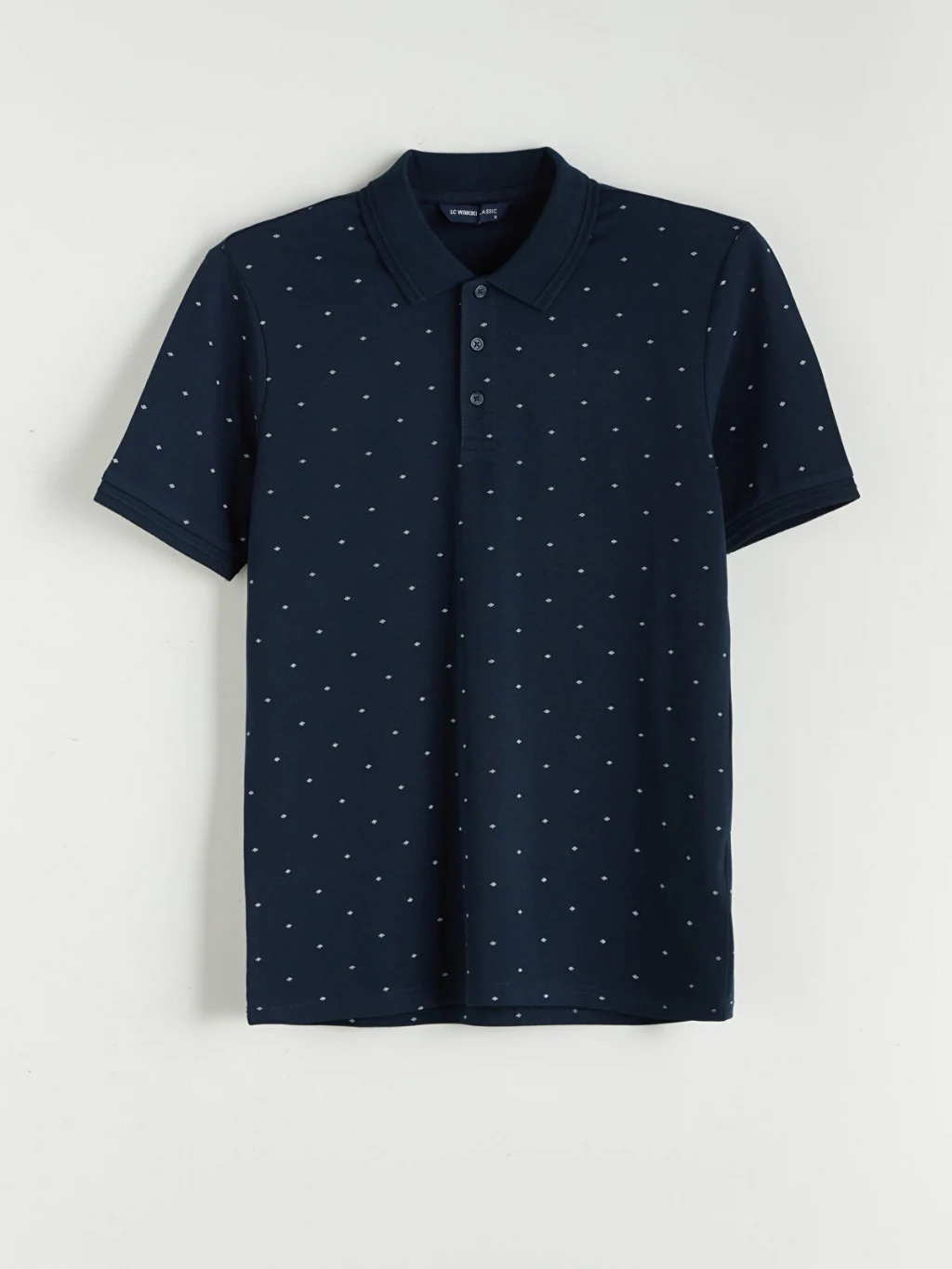 Polo yaka tasarıma sahiptir. Desenli pike kumaştan üretilmiş olup kısa kolludur.